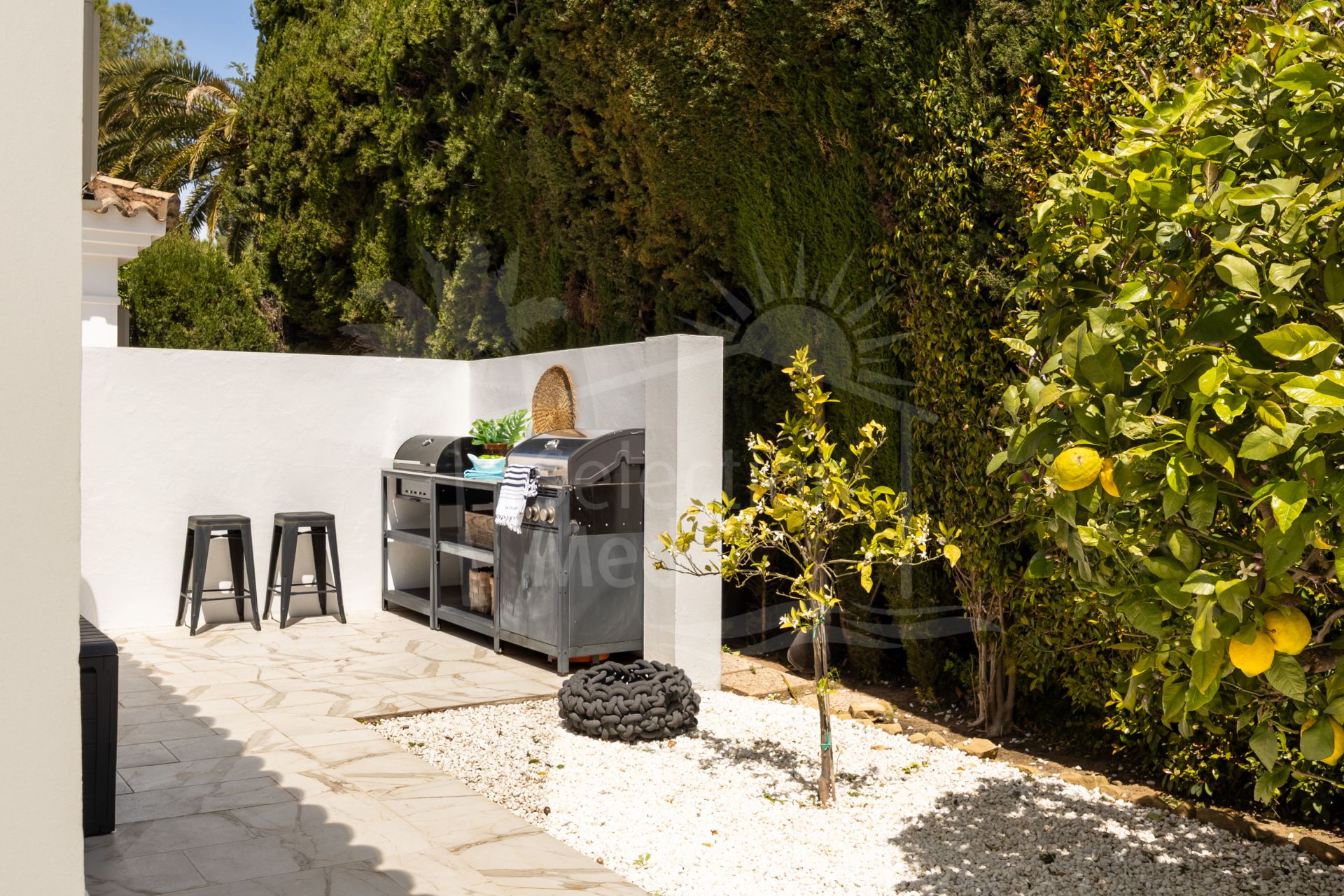 La vivienda se completa con un encantador patio delantero, perfecto para disfrutar de tardes a la sombra, junto con un jardín consolidado y árboles frutales que refuerzan la sensación de privacidad y carácter. Idealmente ubicada cerca del hotel SO Sotogrande, el Colegio Internacional de Sotogrande y varios campos de golf de renombre, Casa Serena es un refugio sofisticado y relajado en una de las zonas más exclusivas de la región.