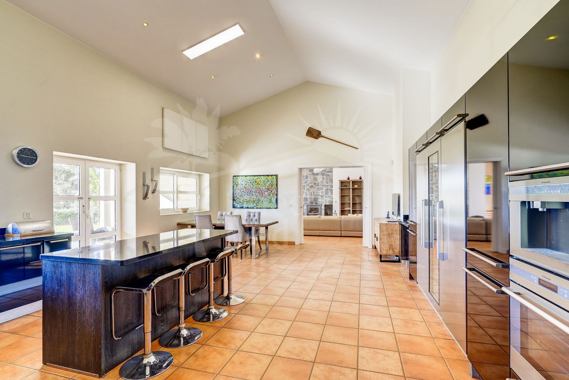 Cocina moderna de gran tamaño con acceso directo a una encantadora terraza con zona de barbacoa, ideal para comidas al aire libre y entretenimiento.