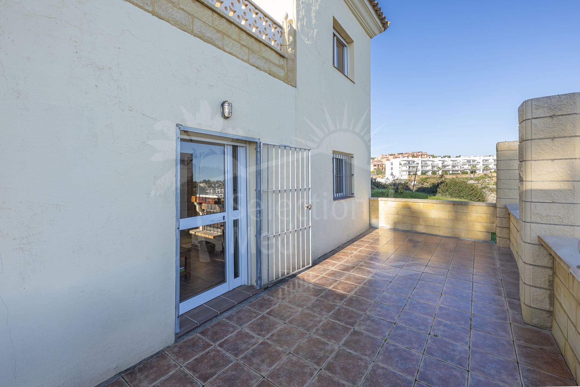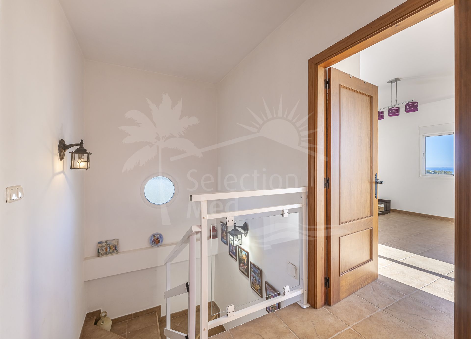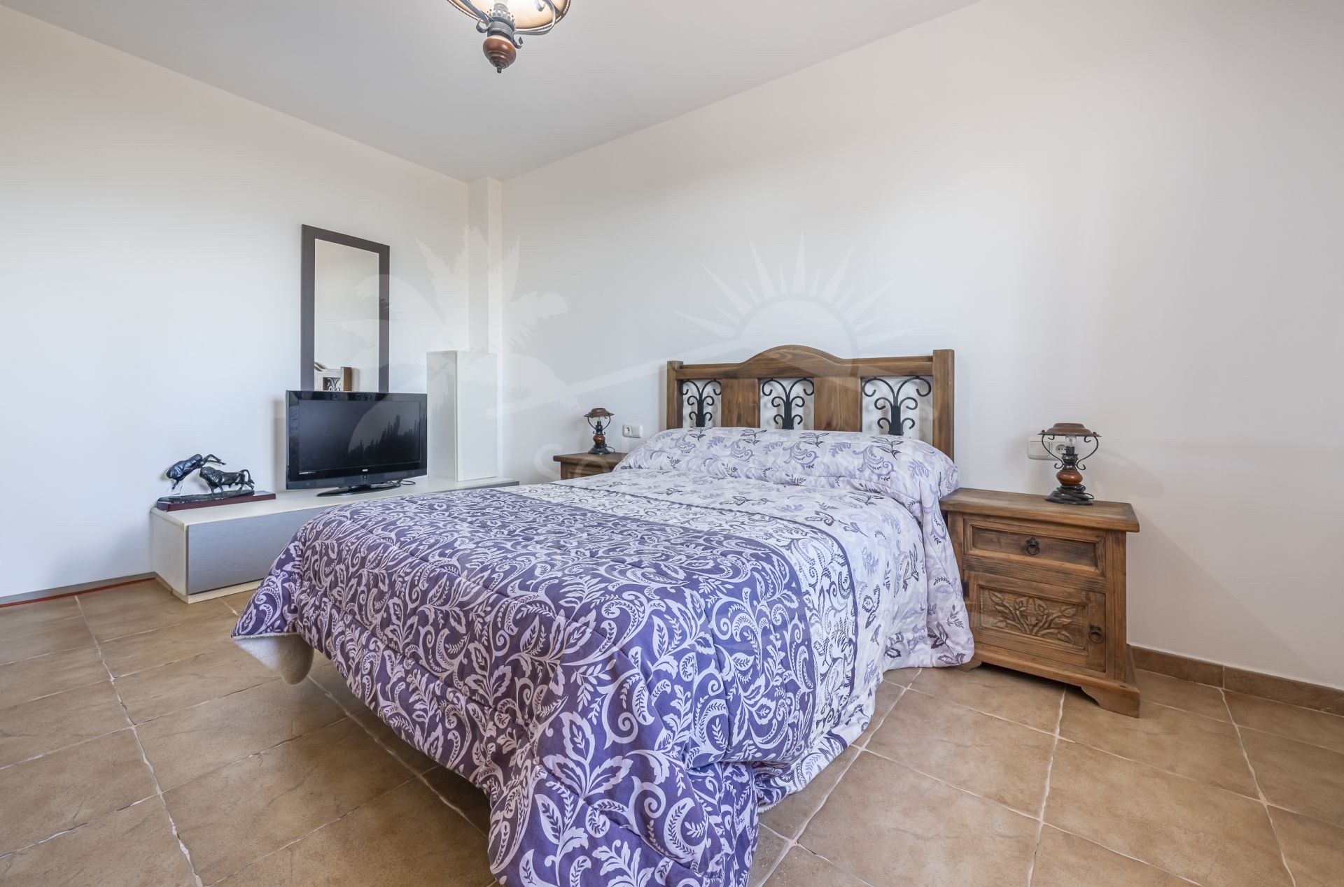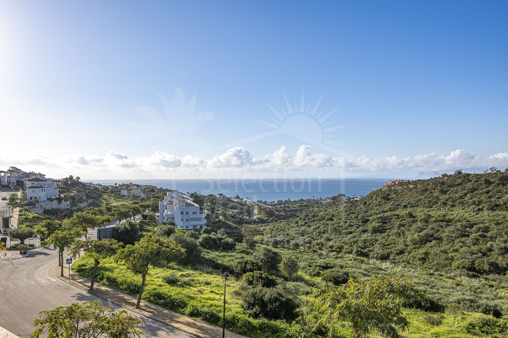 La planta superior alberga dos dormitorios de generosas dimensiones y una estancia adicional con gran versatilidad, que puede transformarse fácilmente en un segundo baño, despacho o dormitorio adicional. Desde ambos dormitorios se accede a un balcón que ofrece impresionantes vistas panorámicas al mar, la montaña, Gibraltar e incluso la costa africana, un privilegio visual difícil de encontrar.