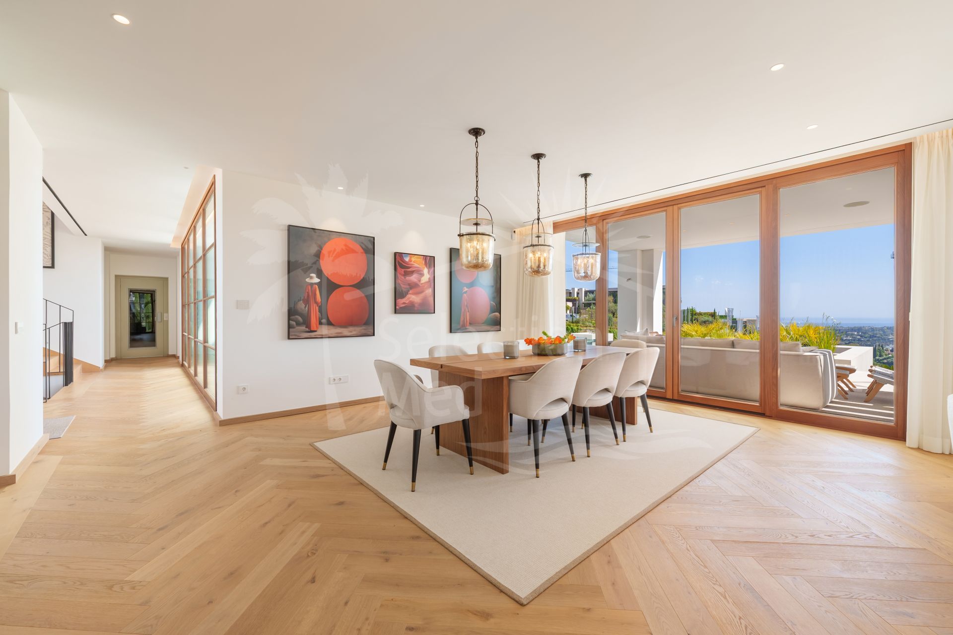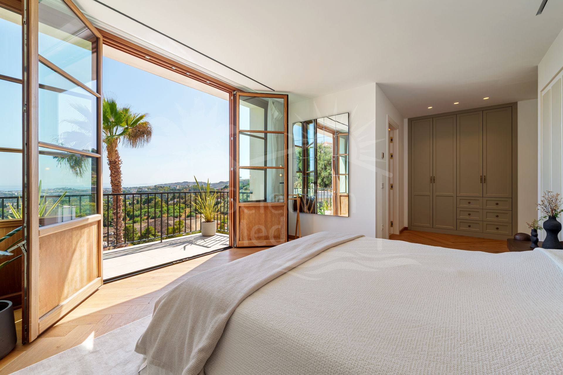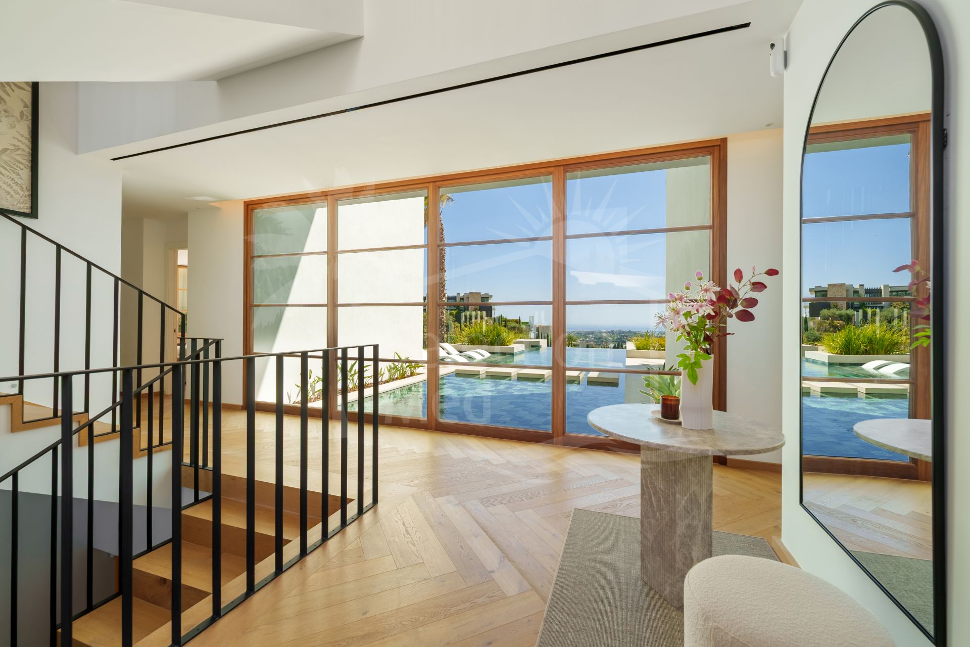Villa Cina disfruta de una posición privilegiada, ofreciendo vistas panorámicas de 360º al mar, las montañas y los campos de golf. A pesar de su entorno tranquilo, la villa cuenta con fácil acceso a tiendas de diseño, playas de arena, campos de golf de campeonato y los vibrantes núcleos urbanos de Marbella y Puerto Banús, a solo unos minutos en coche.Esta elegante villa de 5 dormitorios ha sido diseñada de manera individual y cuenta con baños en suite, amplias y luminosas zonas de estar con chimenea, y una cocina de última generación. La suite principal dispone de una terraza orientada al sur, mientras que los cuatro dormitorios de invitados también cuentan con baños en suite. Otros aspectos destacados incluyen una bodega, sala de entretenimiento, gimnasio, sala de masajes, tres aseos para invitados, lavandería con cuatro máquinas y, ahora, un ascensor privado que aporta comodidad y accesibilidad a la vida diaria.
