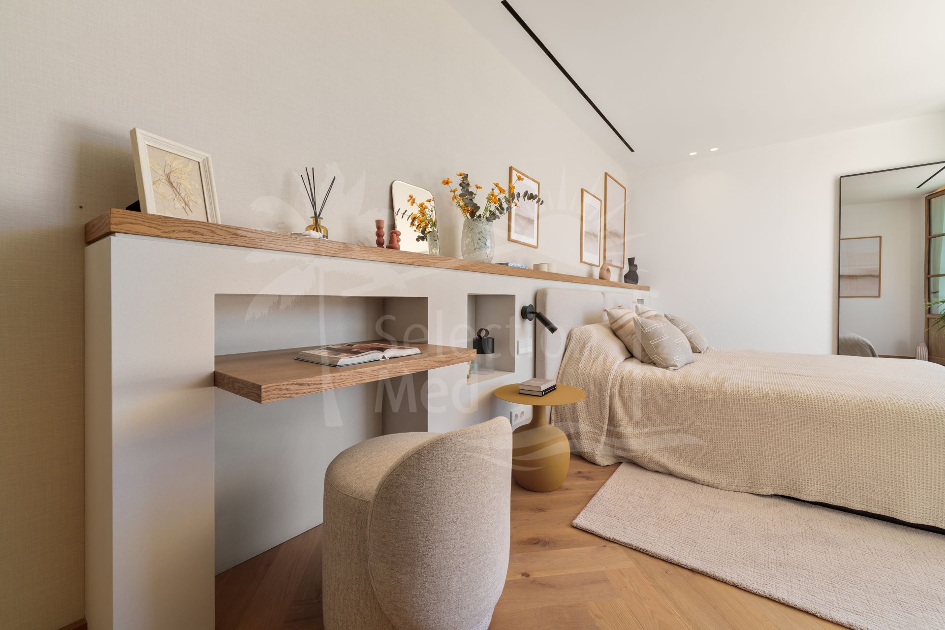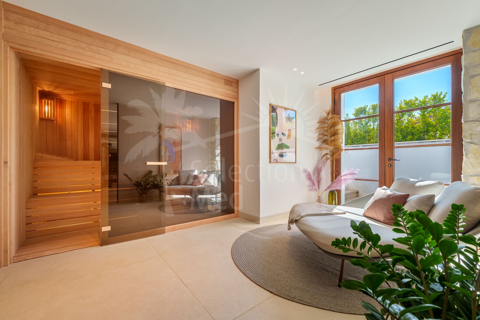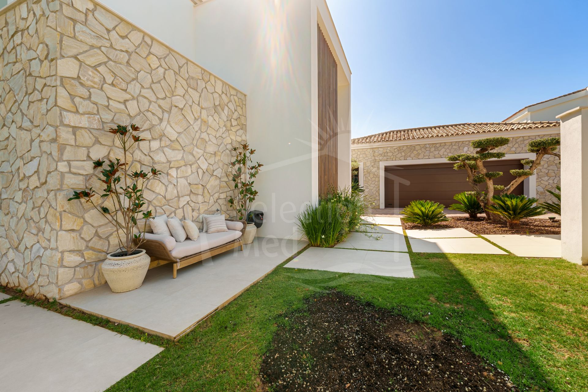 La piscina privada de agua salada se complementa con una terraza orientada al sur, una zona de salón, una cocina exterior totalmente equipada con barbacoa, y una elegante zona chill-out, perfecta para disfrutar del estilo de vida mediterráneo.