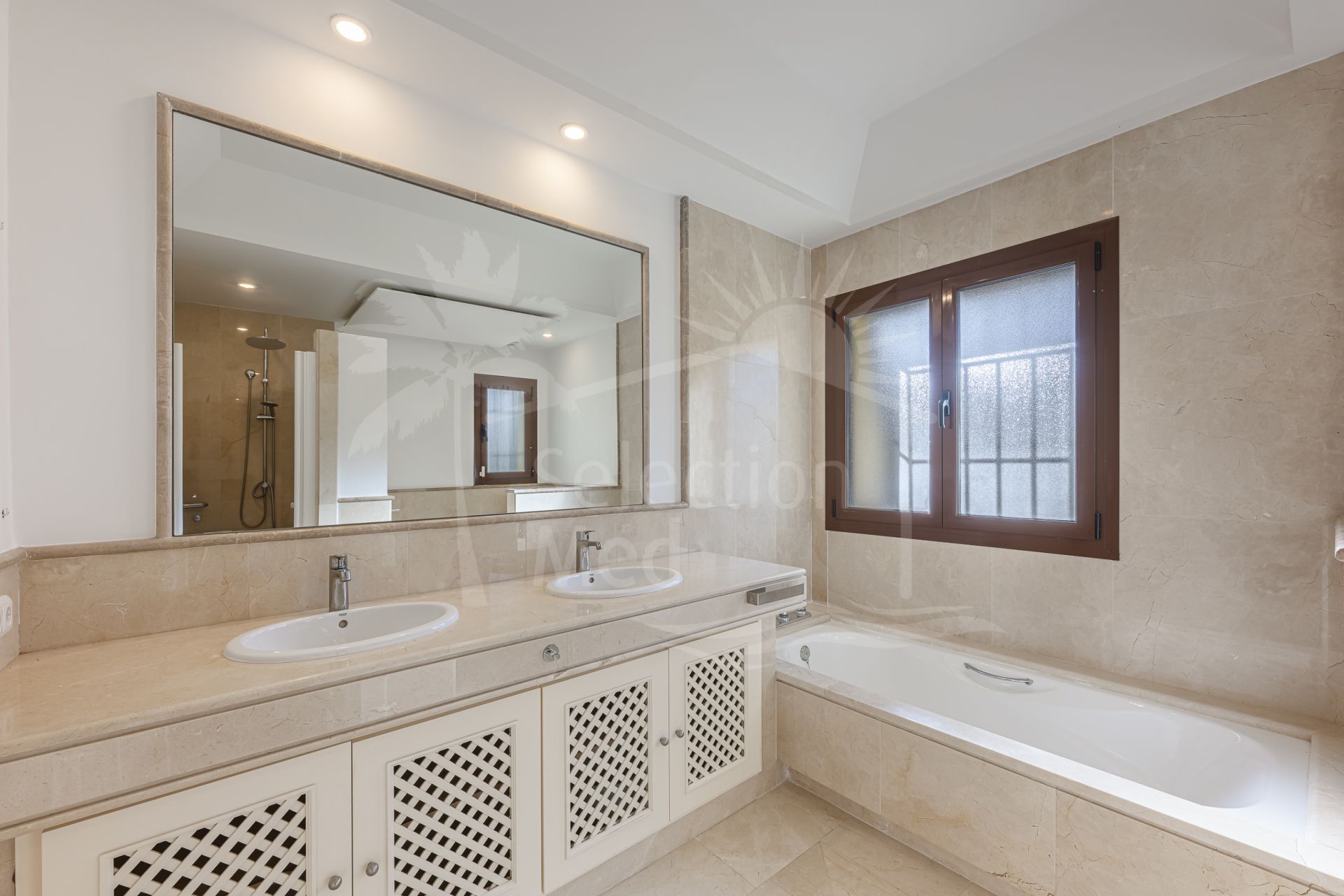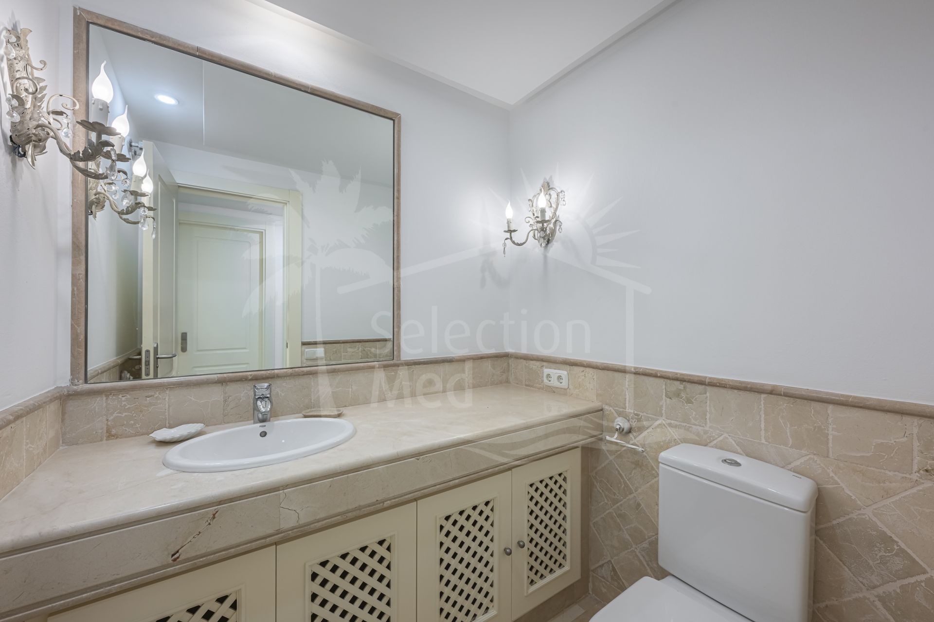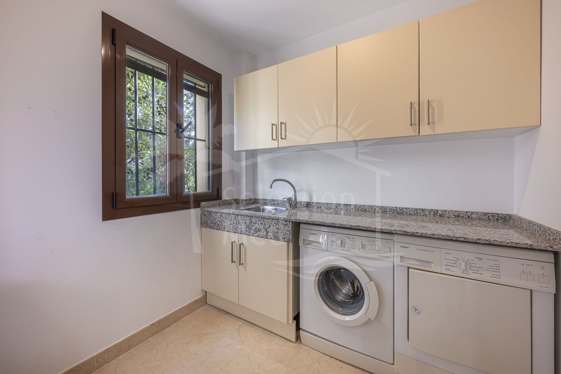 Situado junto al Real Club Valderrama, considerado de forma constante como uno de los mejores campos de golf de Europa, el apartamento cuenta con un amplio dormitorio principal con baño en suite, además de un segundo dormitorio también en suite, ideal para familiares o invitados. La cocina moderna y totalmente equipada está diseñada para el confort diario y para recibir visitas.