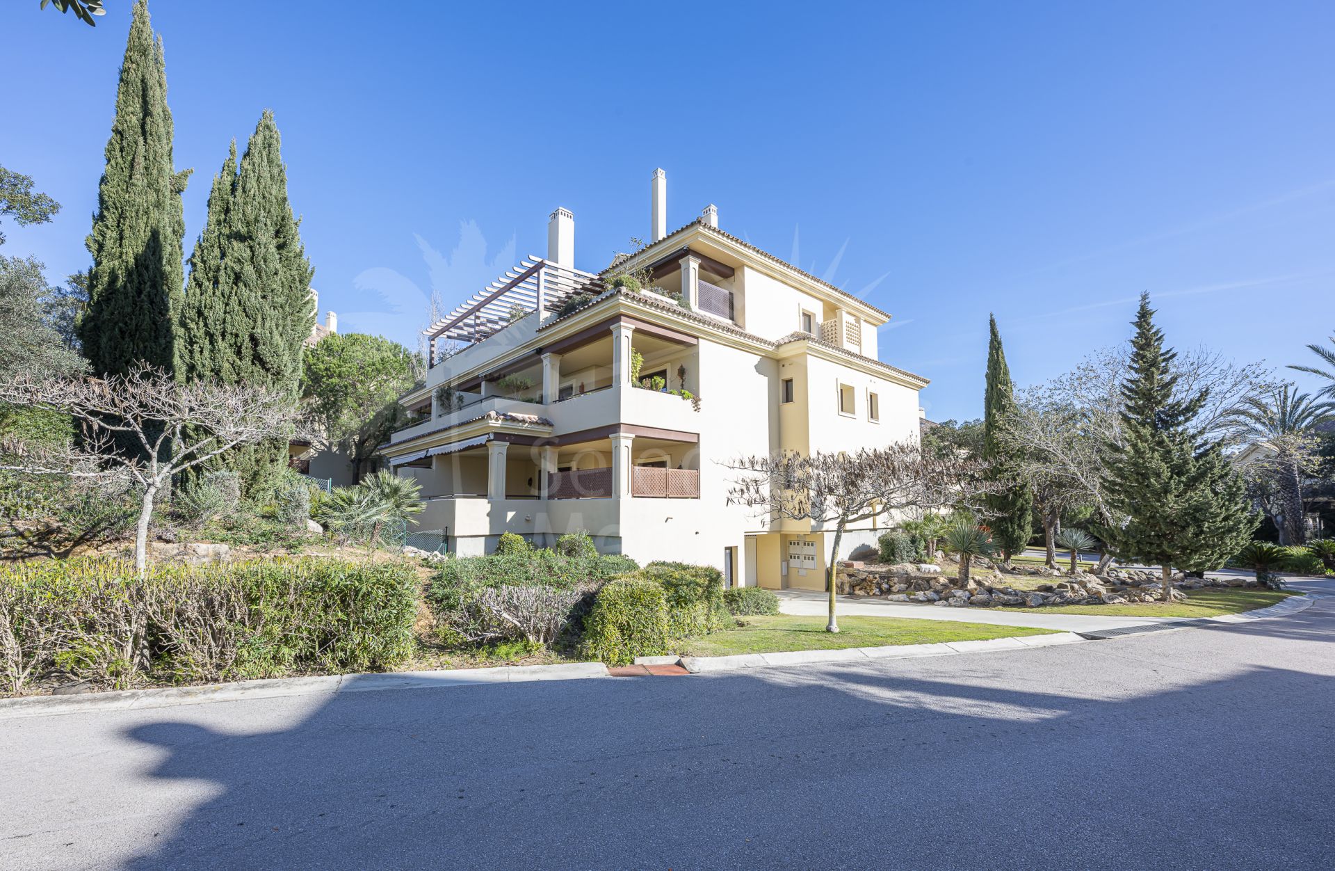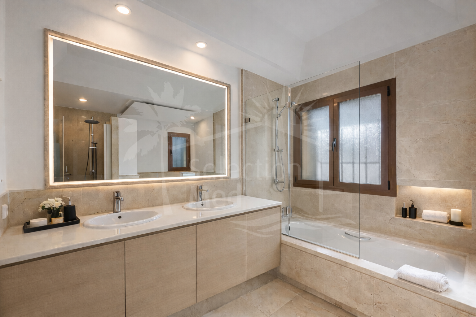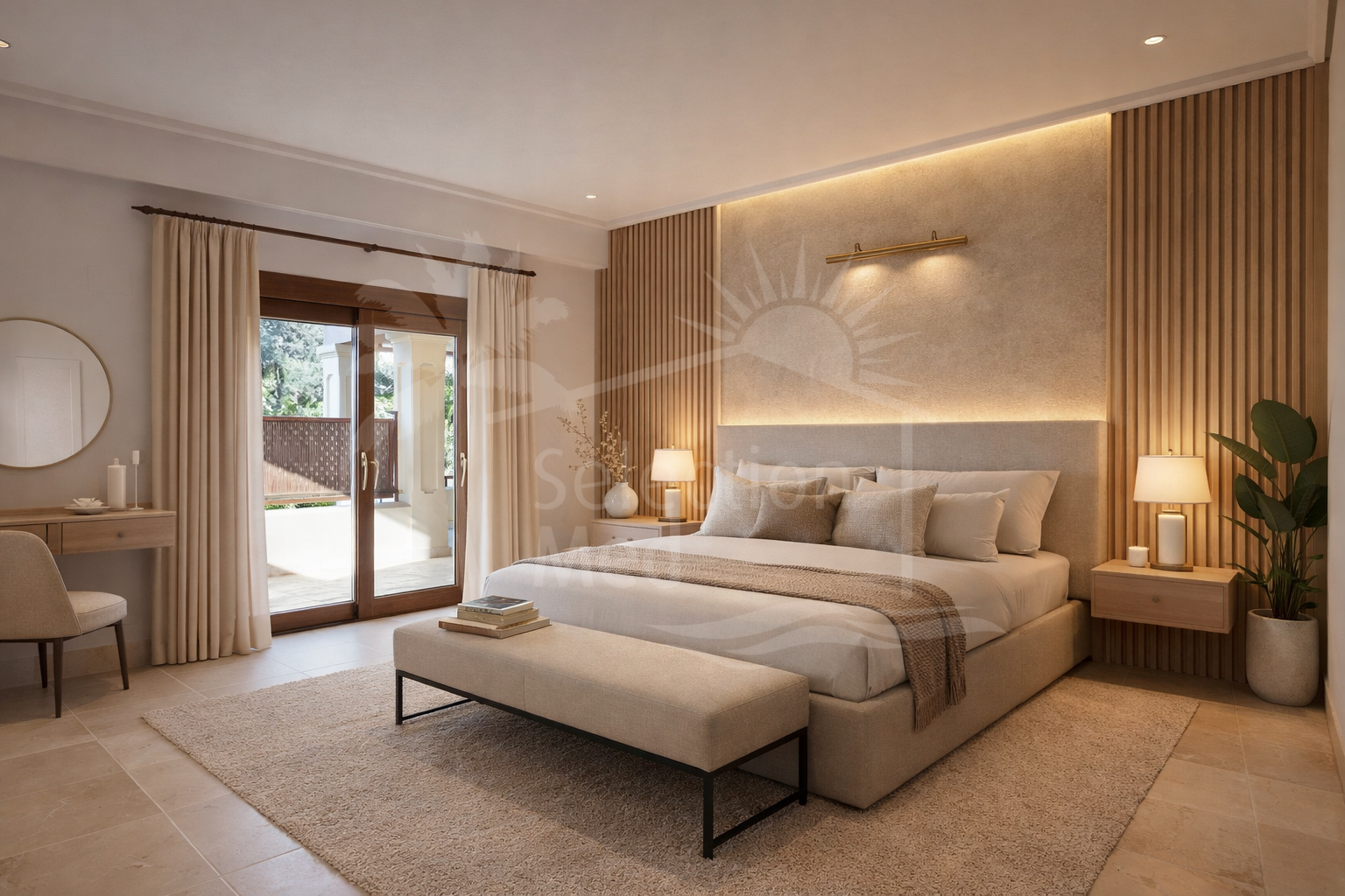 Situado junto al Real Club Valderrama, considerado de forma constante como uno de los mejores campos de golf de Europa, el apartamento cuenta con un amplio dormitorio principal con baño en suite, además de un segundo dormitorio también en suite, ideal para familiares o invitados. La cocina moderna y totalmente equipada está diseñada para el confort diario y para recibir visitas.