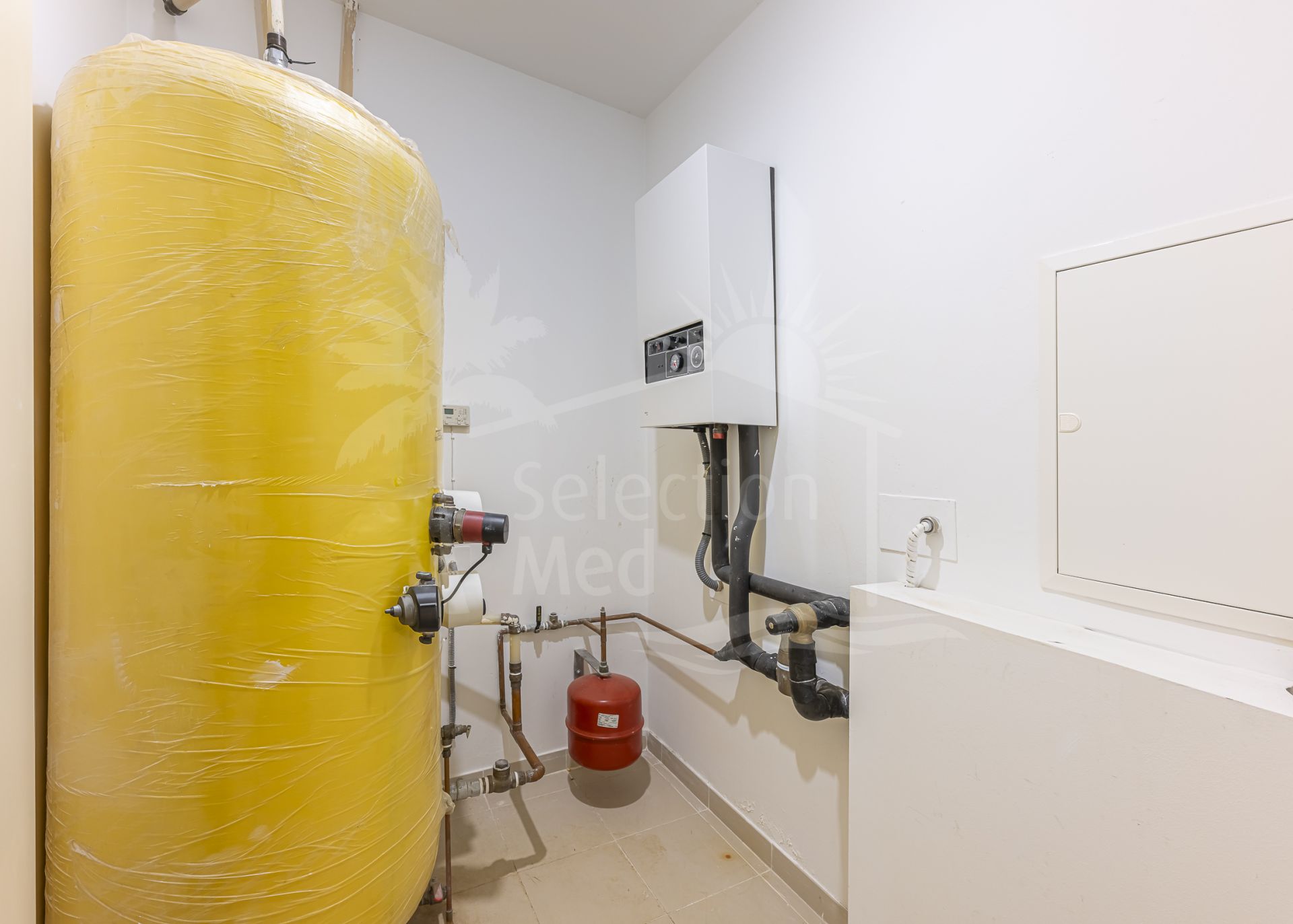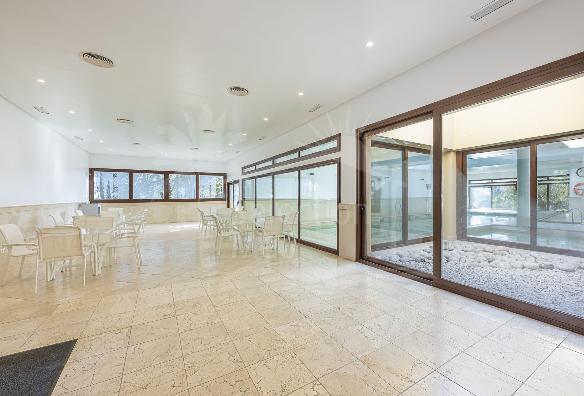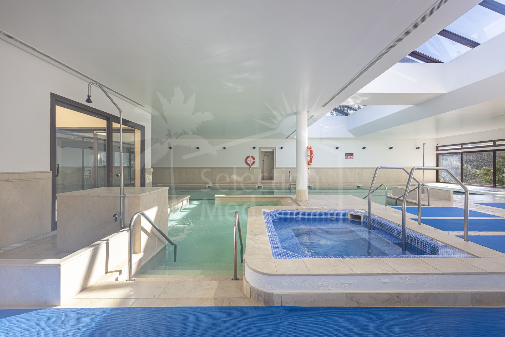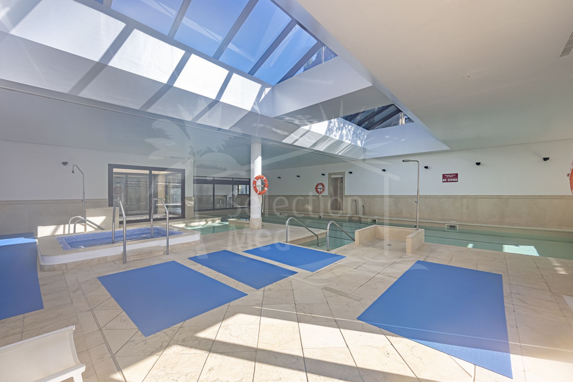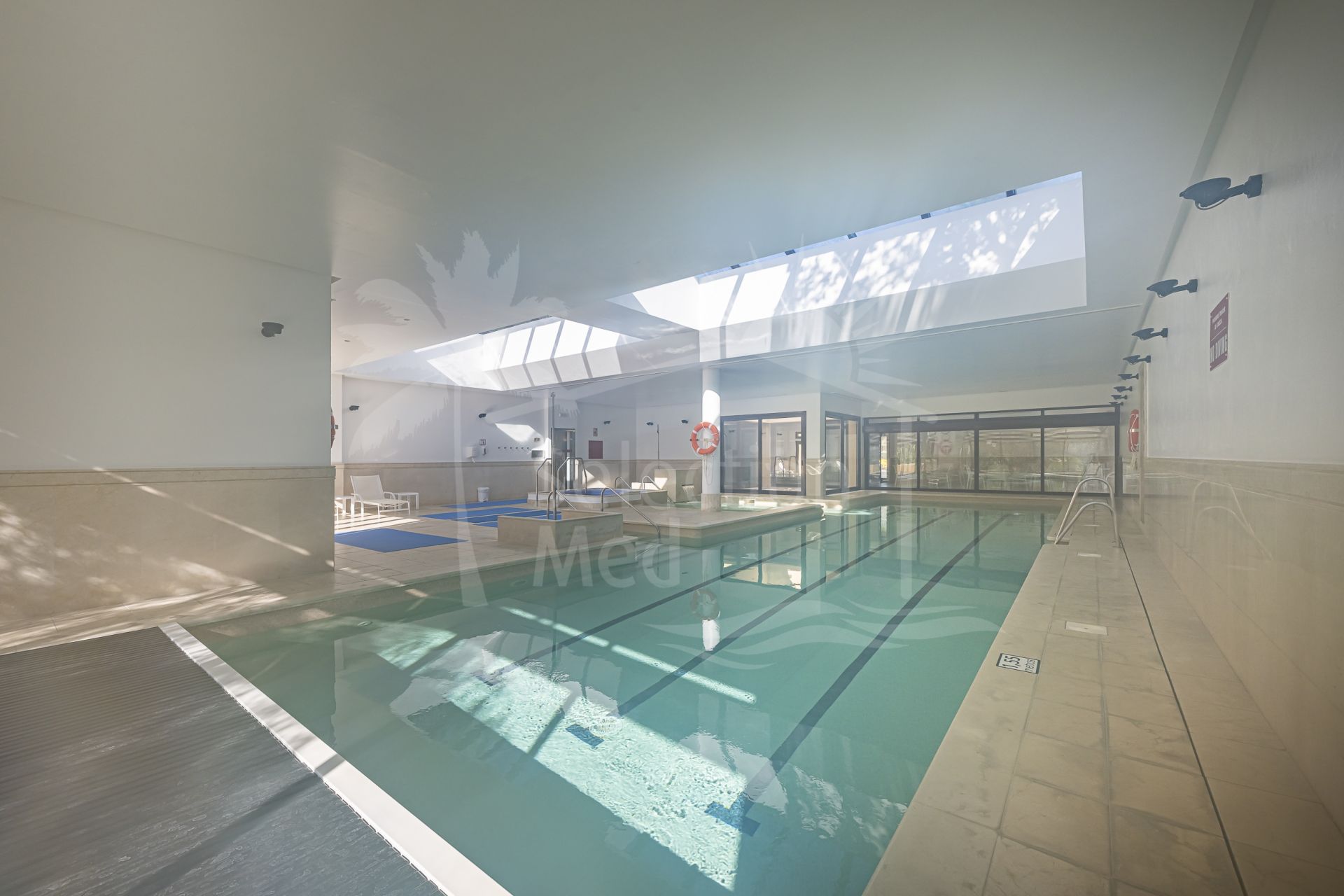 Los residentes disfrutan de servicio de conserjería 24 horas, piscina interior climatizada, gimnasio, sauna y baño turco, además de tres piscinas exteriores, todo ello rodeado de jardines cuidados que crean un entorno tranquilo y exclusivo, tipo resort.