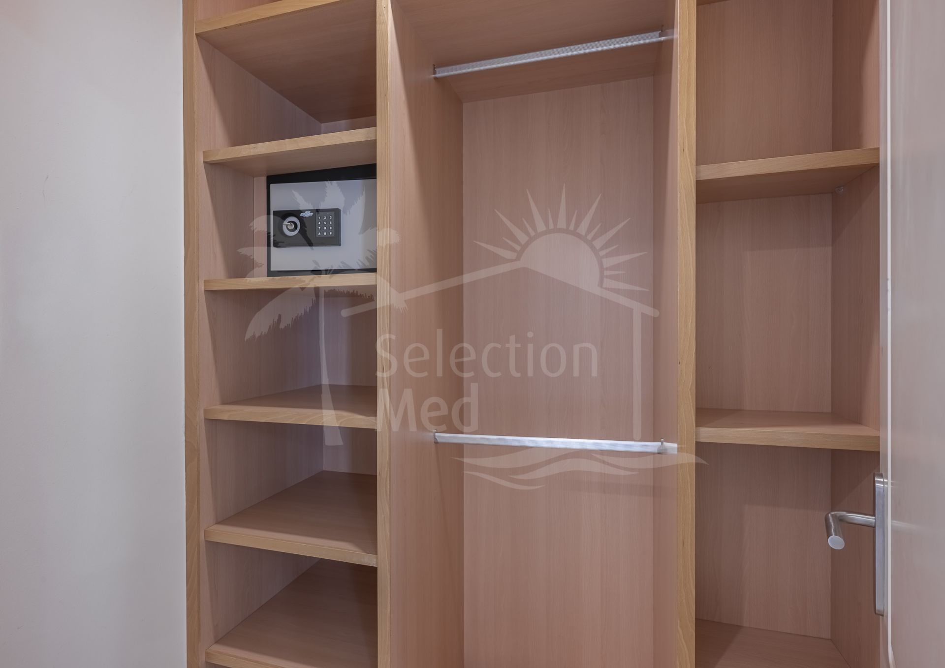 Entre sus características adicionales destacan un amplio trastero privado, ideal para palos de golf, bicicletas o equipamiento de playa, así como plaza de garaje subterránea con ascensor directo al apartamento.