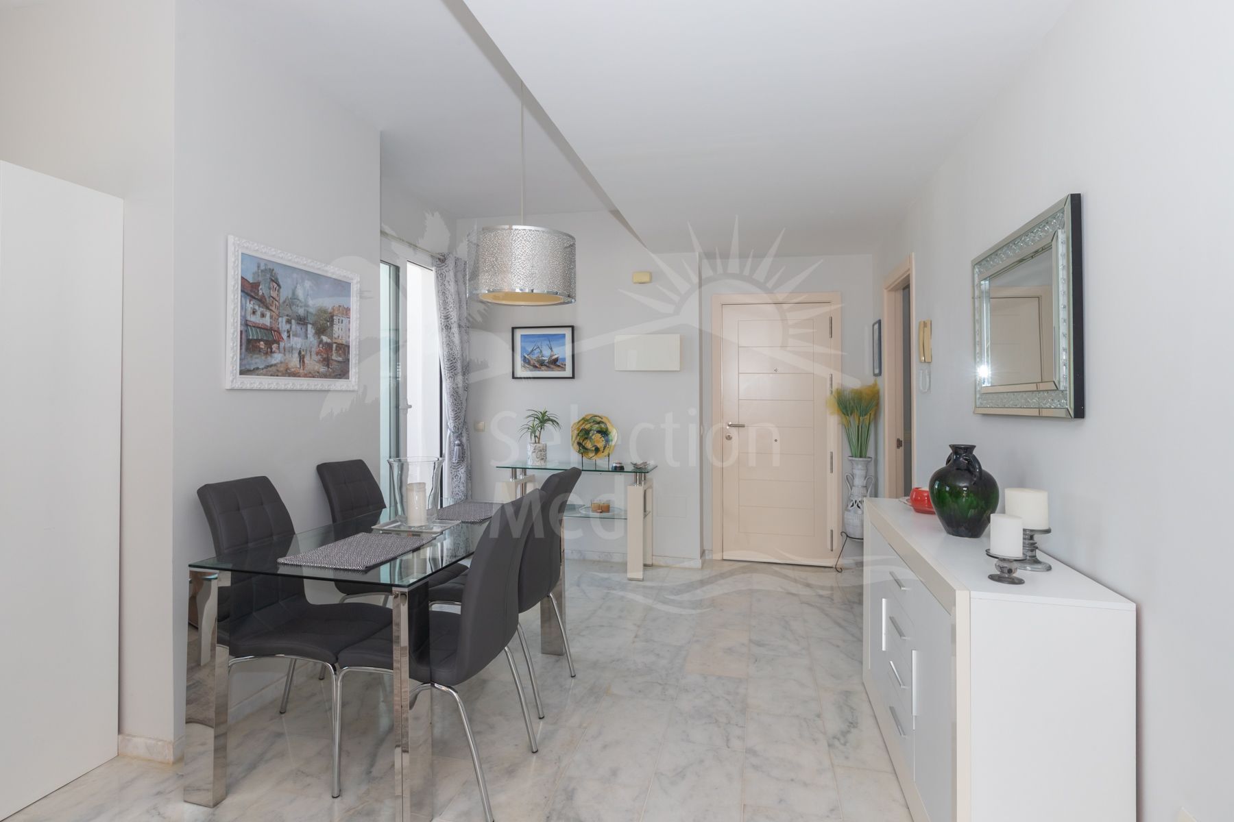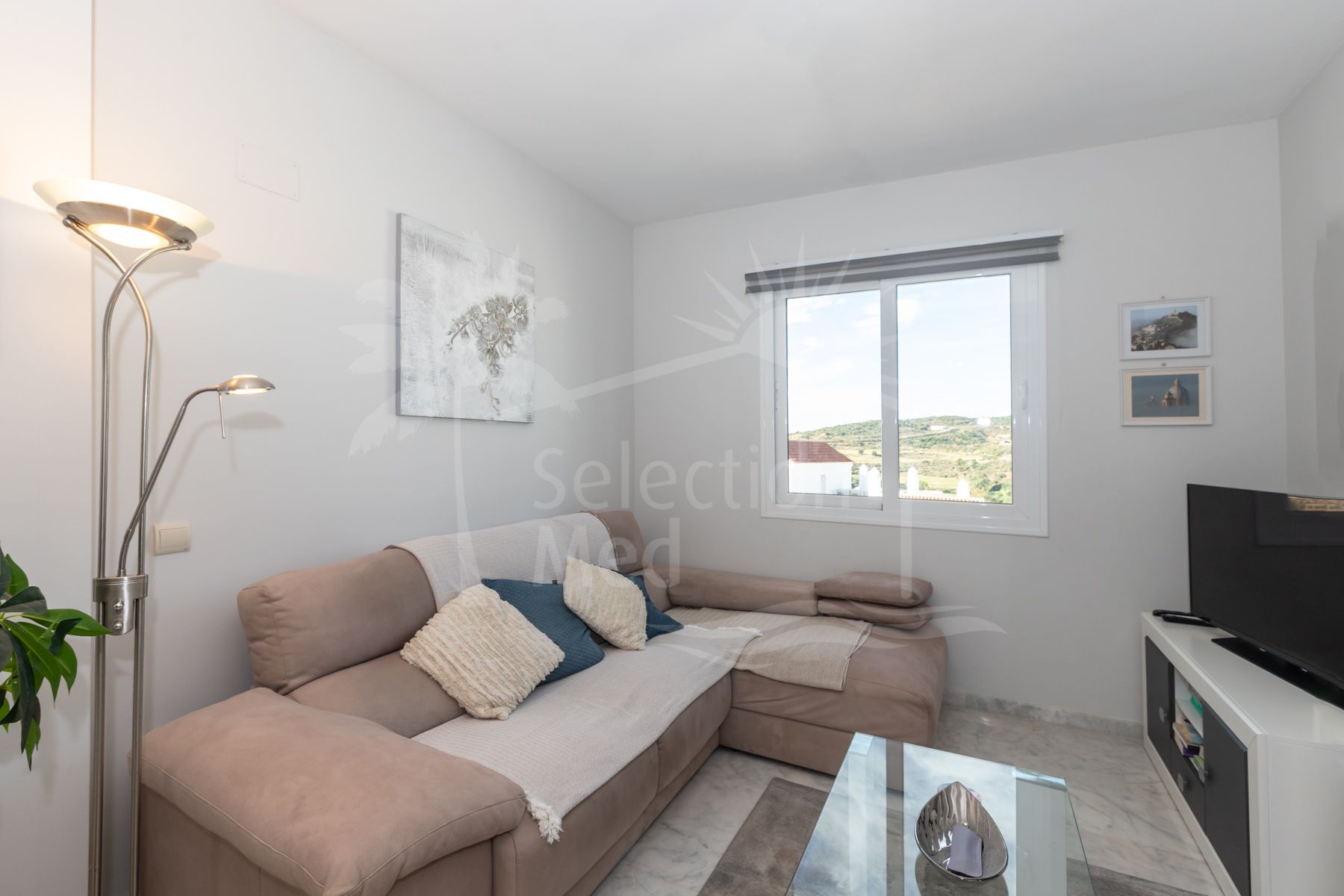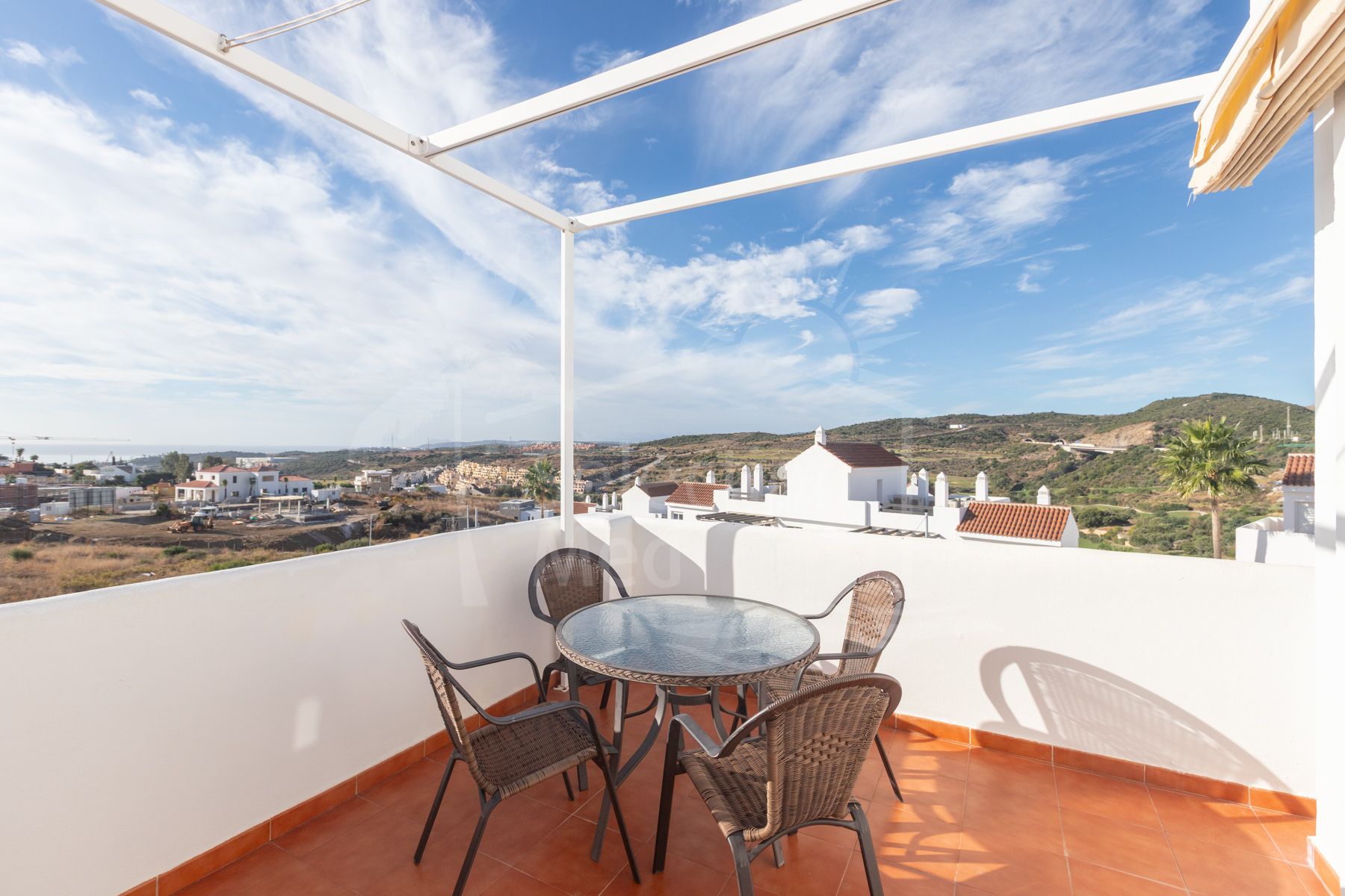 La propiedad, con 76 m² interiores, destaca por su excelente distribución y su amplitud. Dispone de dos dormitorios y dos baños completos, además de una cocina independiente y un salón comedor luminoso que conectan directamente con el verdadero protagonista de esta vivienda: una impresionante terraza perimetral de 70 m² que rodea todo el ático, ofreciendo vistas panorámicas a Valle Romano, al mar, Gibraltar y a toda la costa africana. Este espacio exterior es perfecto para disfrutar de momentos de relax, comidas al aire libre o simplemente contemplar los atardeceres sobre el Mediterráneo.