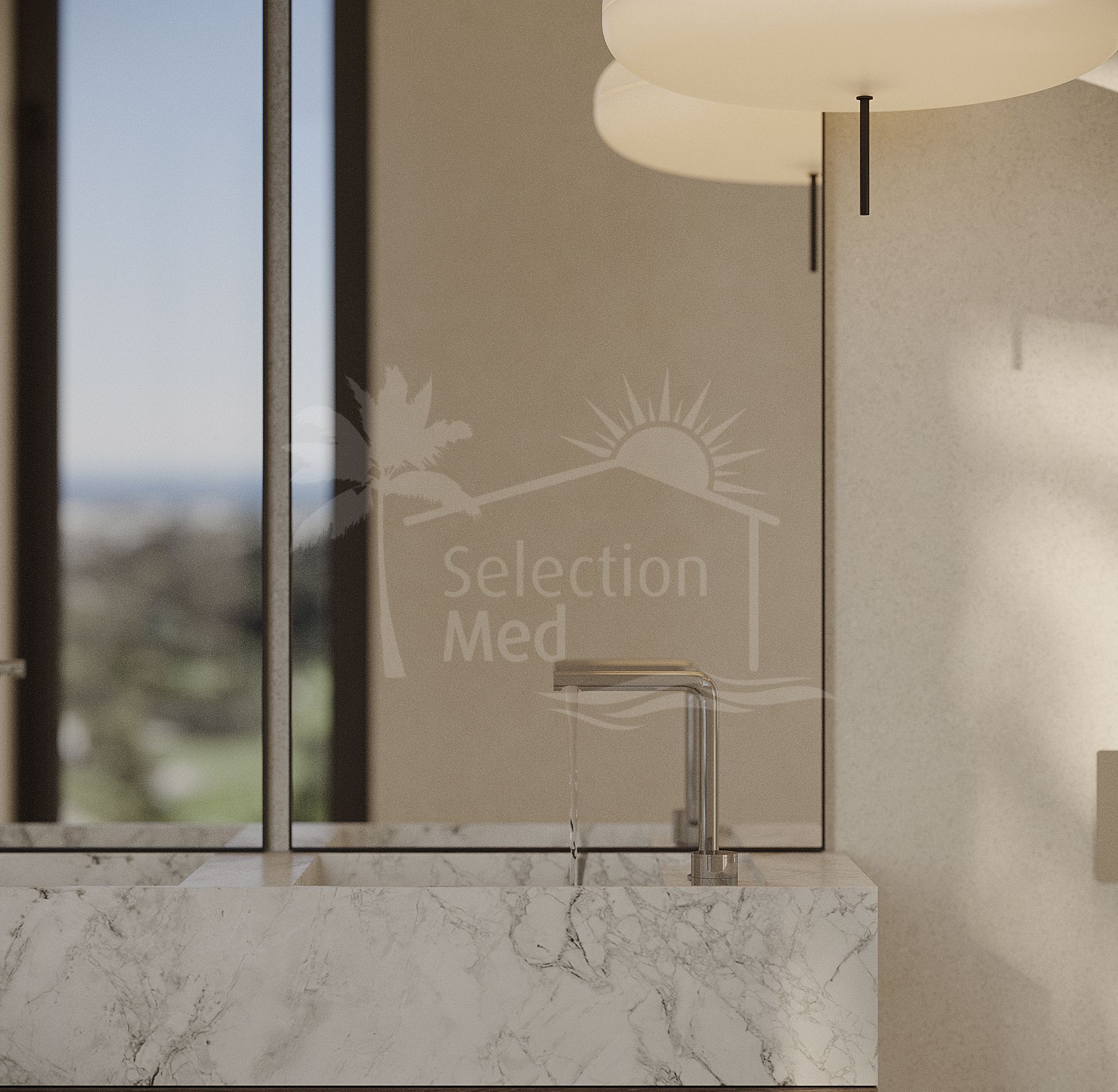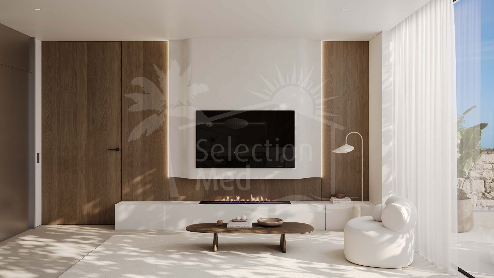Esta obra maestra contemporánea combina arquitectura minimalista con lujoso confort, creando el perfecto santuario mediterráneo. Con ventanas de suelo a techo y interiores de planta abierta, la luz natural inunda el espacio, mejorando el ambiente sereno y la vida interior sin costuras.