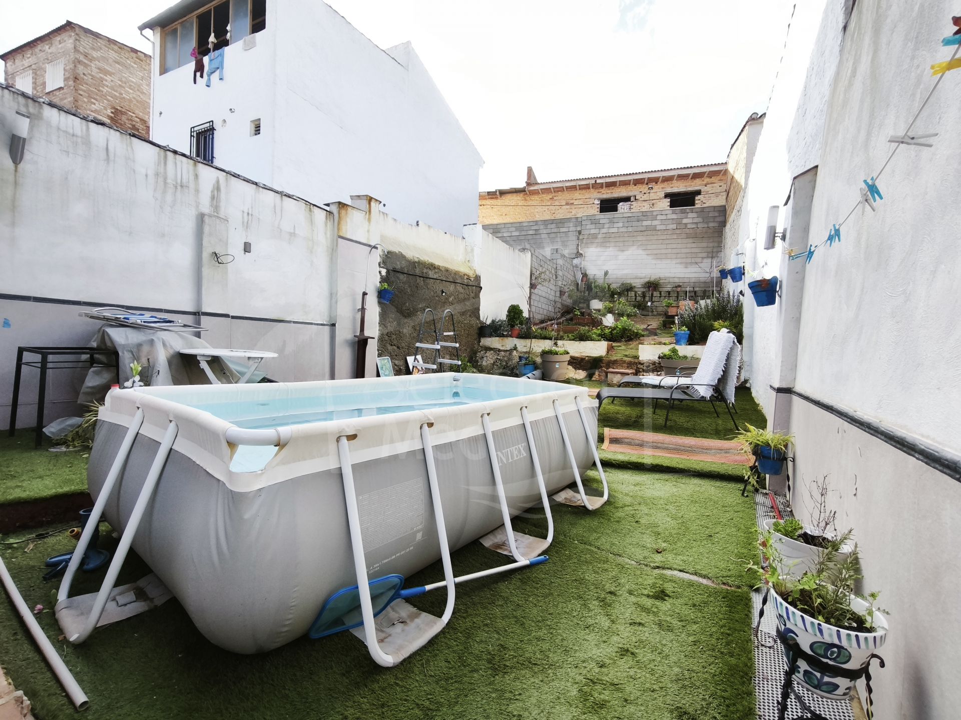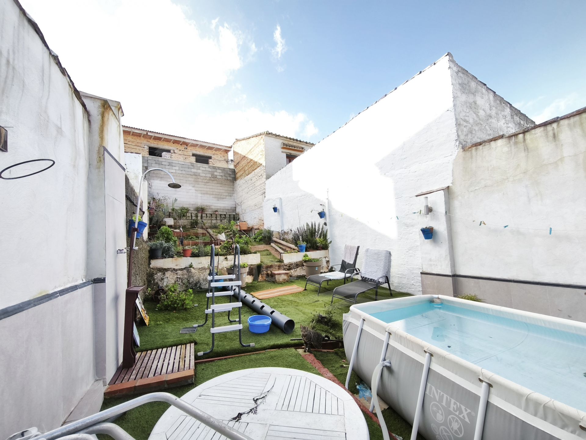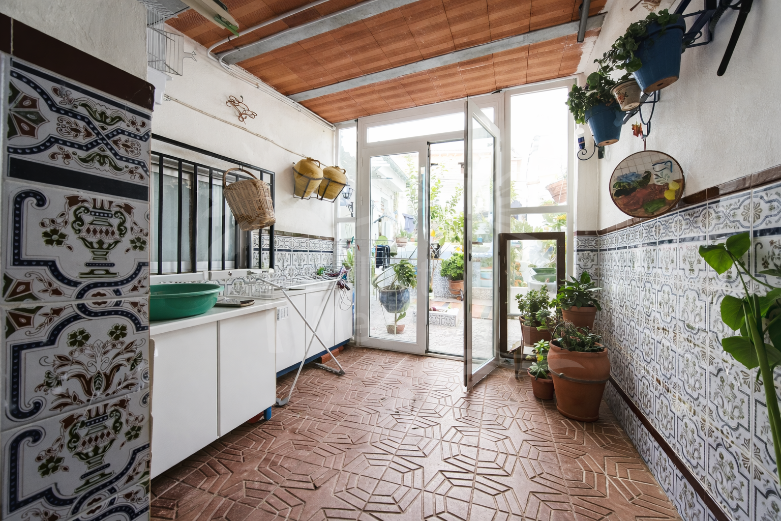 De l'intérieur de la maison, vous accédez au patio extérieur par une terrasse. Vous trouverez ici une deuxième salle de bains située à l'extérieur du bâtiment principal, ainsi qu'une buanderie indépendante pratique, qui sert également d'espace de rangement supplémentaire.