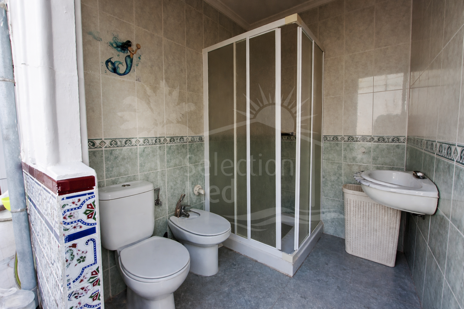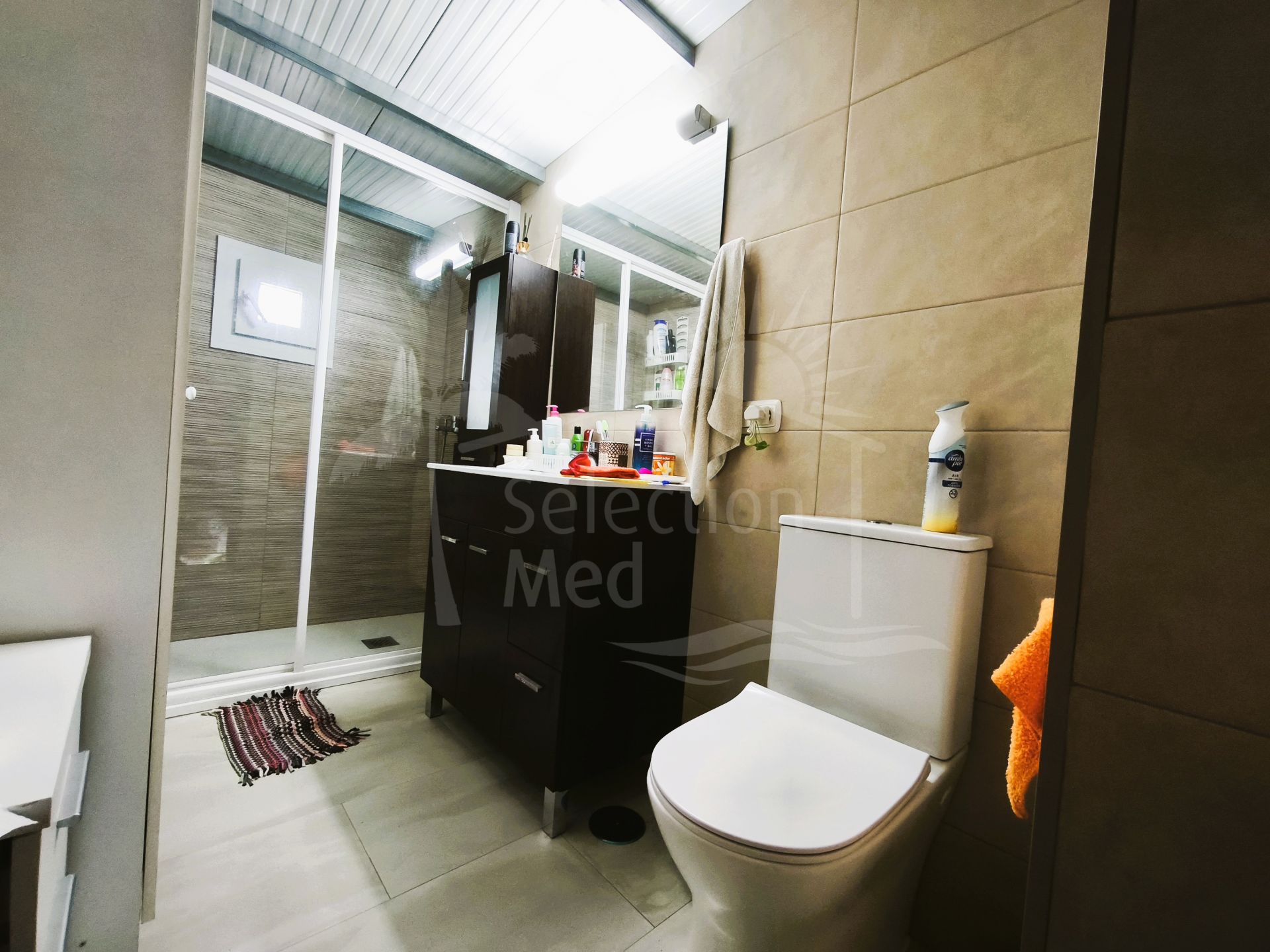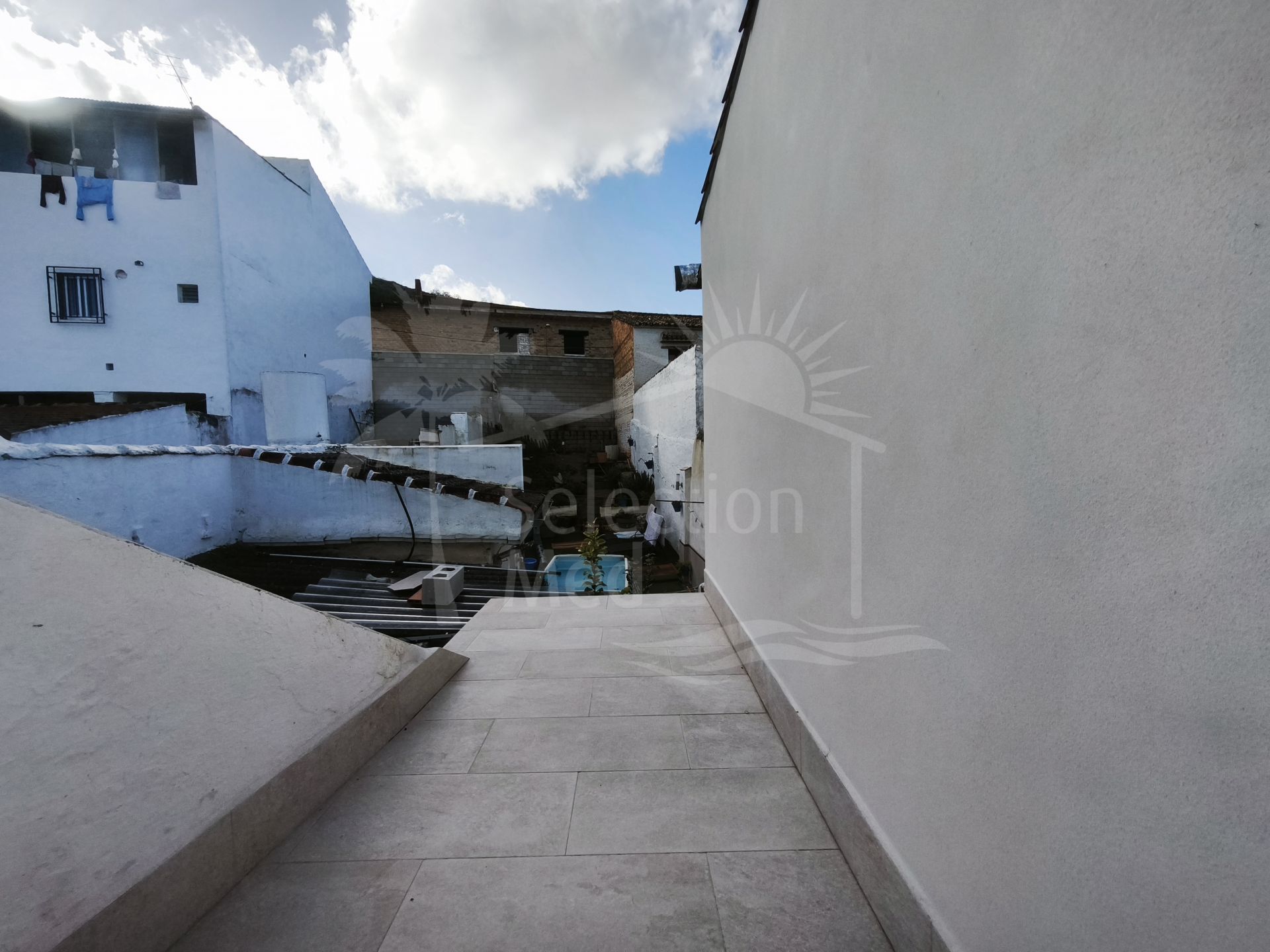 De l'intérieur de la maison, vous accédez au patio extérieur par une terrasse. Vous trouverez ici une deuxième salle de bains située à l'extérieur du bâtiment principal, ainsi qu'une buanderie indépendante pratique, qui sert également d'espace de rangement supplémentaire.
