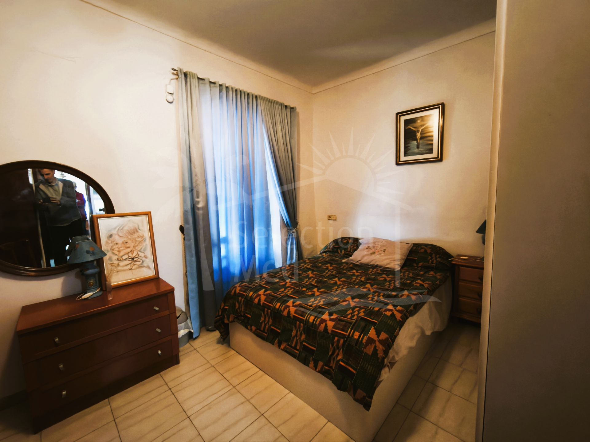 A l'étage, la chambre de maître de taille généreuse dispose d'une salle de bains privative récemment rénovée et d'un accès à une terrasse privée donnant sur le jardin intérieur. Cet étage comprend également une autre chambre très spacieuse avec deux fenêtres face à la rue principale, assurant une excellente lumière naturelle tout au long de la journée.