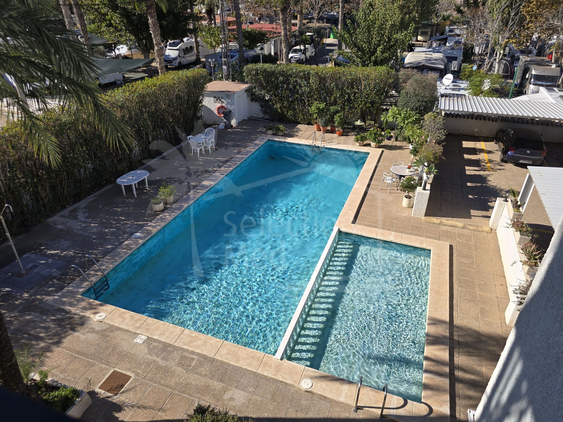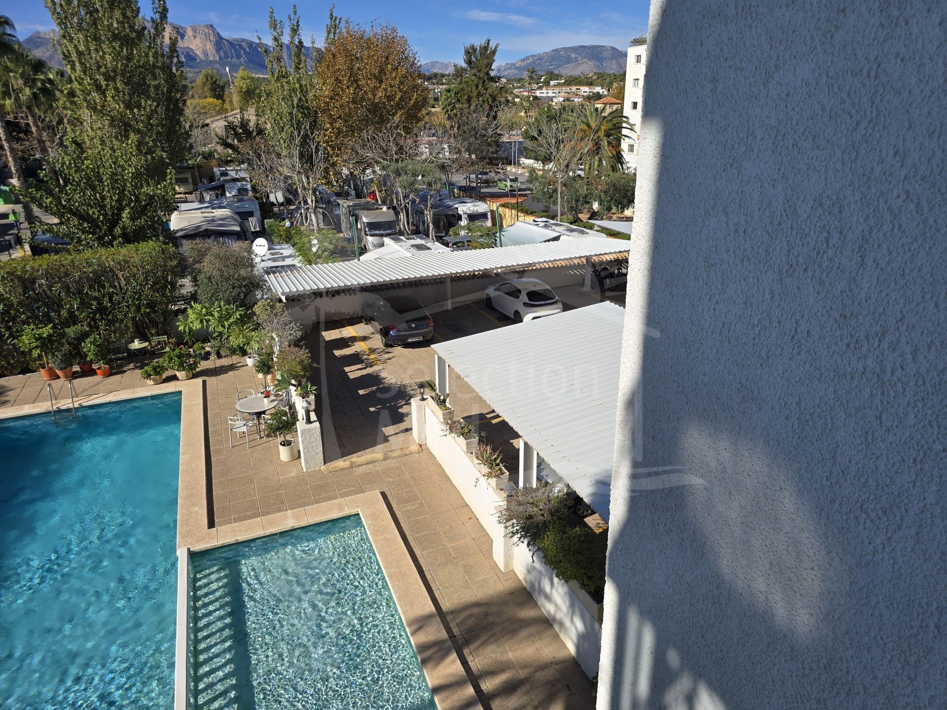 Appartement à vendre à Albir, L'Alfàs del Pi avec 2 chambres, 2 salles de bains, 1 salles de bain en-suite, construit à 1976 et a piscine (communautaire), garage (privé) et jardin (communautaire). Dimensions: 126m² construit, 120m² intérieur et 8m² terrasse.