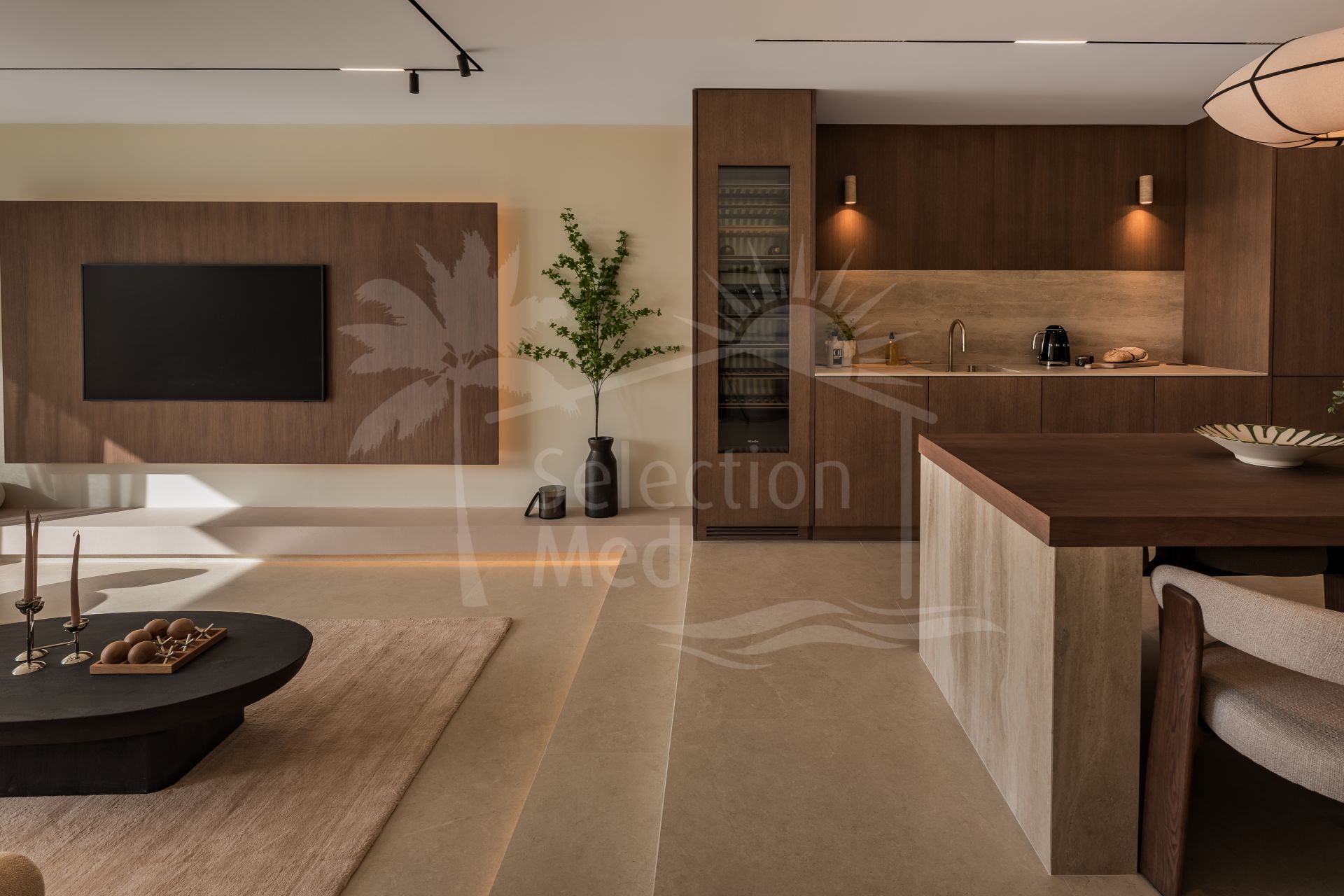 L’intérieur présente un design contemporain et élégant, avec des finitions en bois dans des tons chauds qui apportent sophistication et confort. Les espaces de vie sont spacieux, lumineux et de concept ouvert, se connectant naturellement à de grandes terrasses extérieures, parfaites pour les repas en plein air, la détente et pour profiter du style de vie méditerranéen.