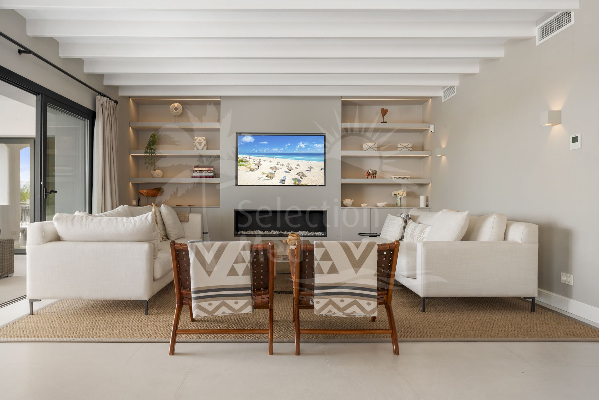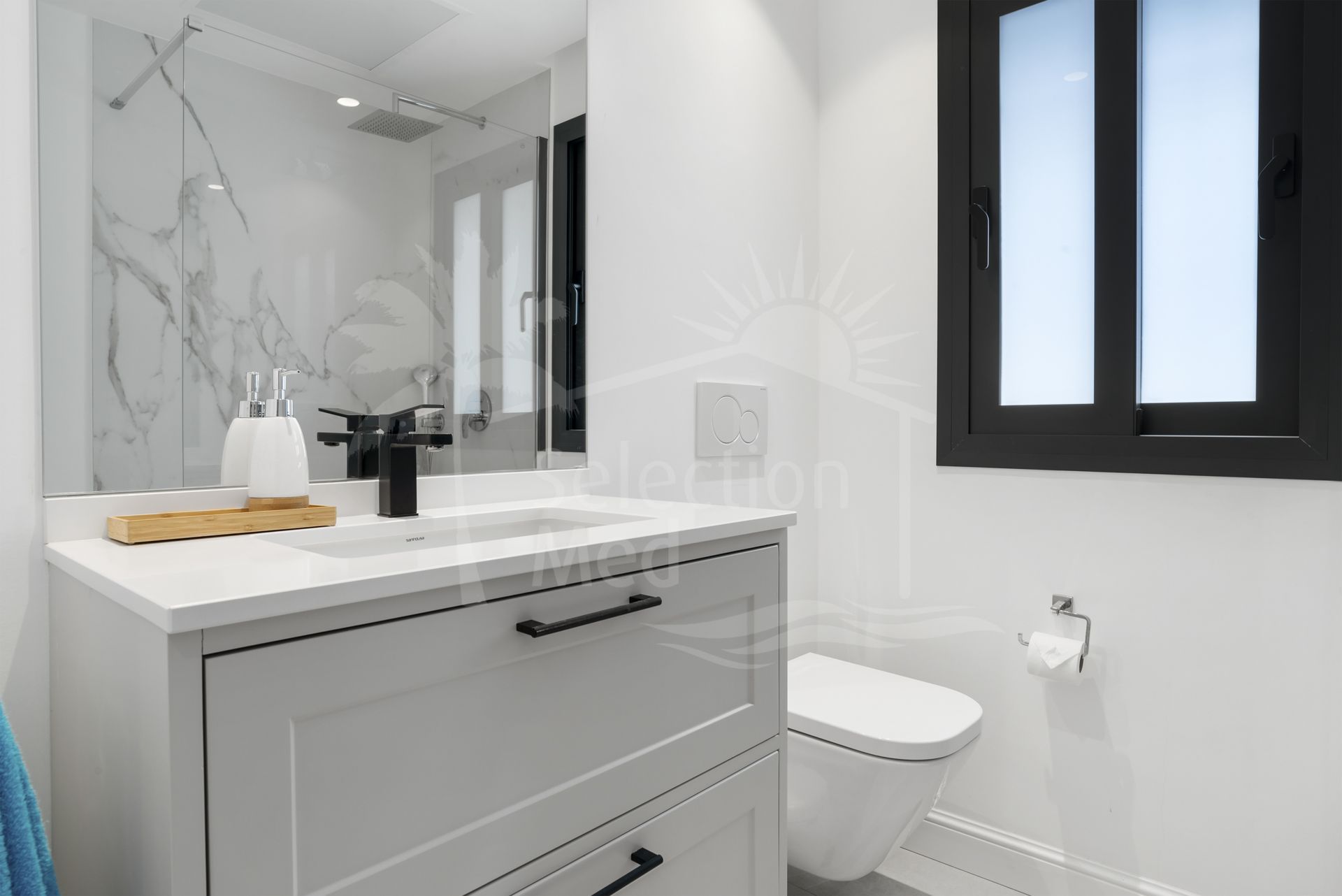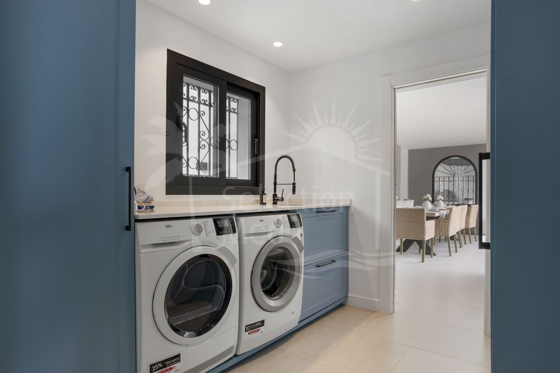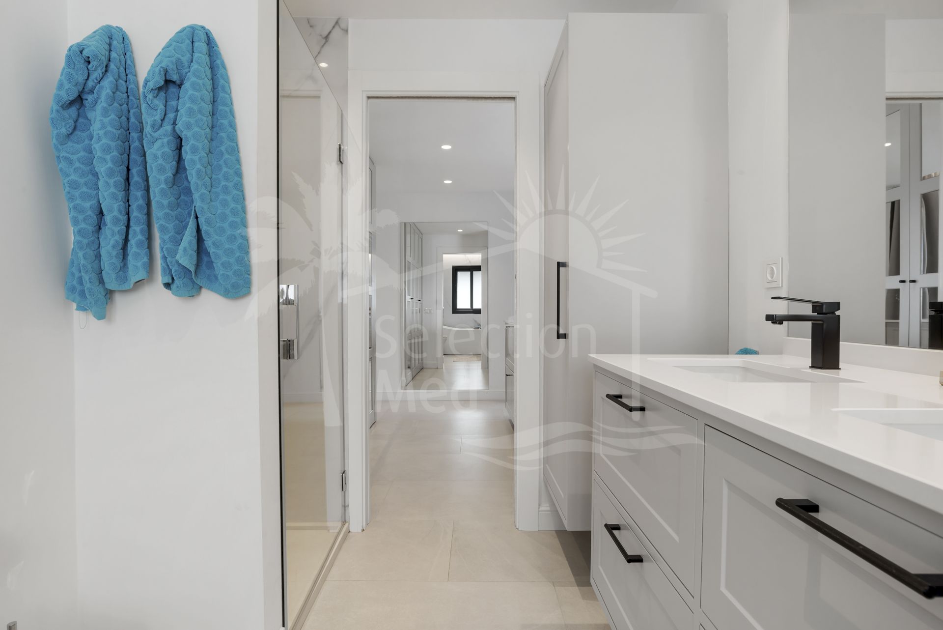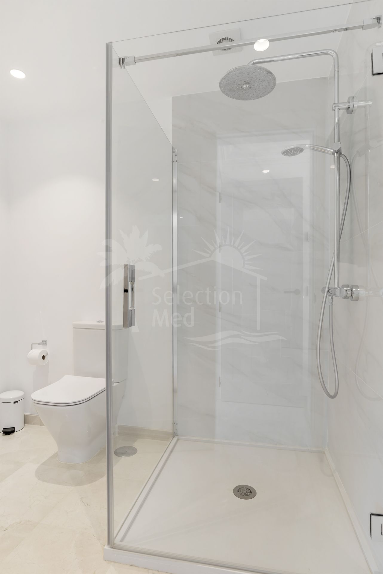 Cette propriété, orientation sud, dispose des commodités suivantes: cuisine équipée, salle de séjour, près de la ville, proche des écoles, vue mer, surveillancecameras, vue sur le golf, animaux acceptés, chauffage par le sol (partout), gasheating, buanderie, internet – wi-fi, terrasse couverte, placards, aérothermie, vue panoramique, services de proximité, climatisation, entièrement meublé, cuisine entièrement adaptée, cheminée, proche de la mer/plage, golf à proximité, closetorestaurants, cave, portes en verre, chambre d’invités, salle à manger séparée, cuisine ouverte, alarme, balcon, excellent état, salle à manger, barbecue, service de sécurité 24h et toilette d’invités.