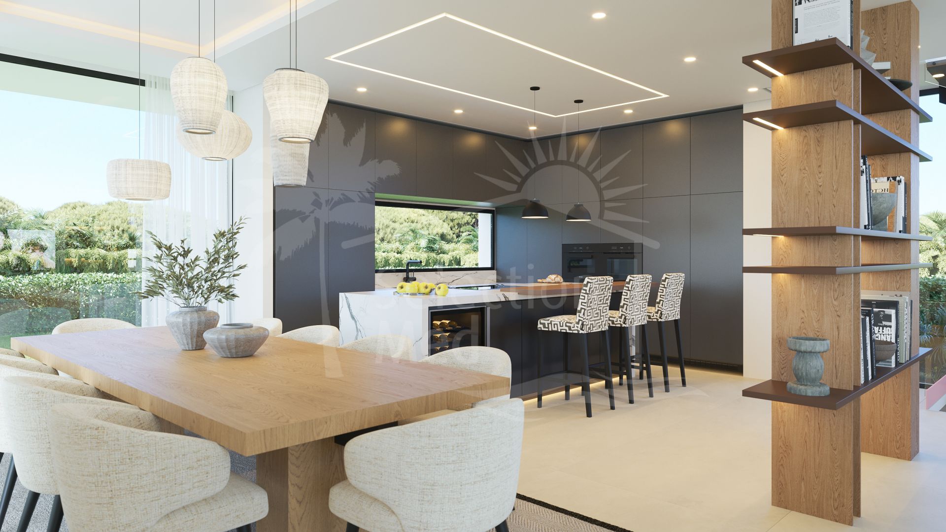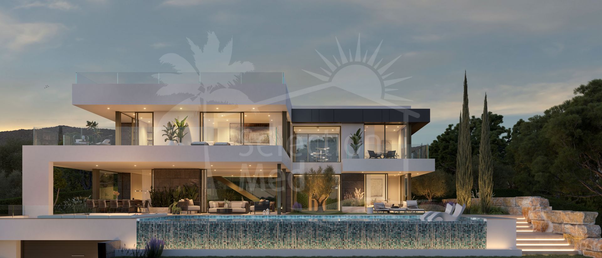 Spectaculaire villa de luxe moderne avec vue panoramique sur la mer et le golf, située dans la zone exclusive Artola Alta de Cabopino Golf, Marbella. Actuellement en construction et devant être achevée en 2027, cette élégante propriété lumineuse est répartie sur quatre niveaux et offre cinq chambres en suite, de vastes espaces de vie ouverts avec une cuisine équipée haut de gamme, un sous-sol polyvalent avec garage pour deux voitures, et un solarium avec jacuzzi et cuisine extérieure. La villa dispose de jardins paysagers, de grandes terrasses, d'une piscine d'eau salée et d'un parking couvert supplémentaire, tous conçus pour l'intimité et le plaisir de l'extérieur. Équipé d'un climat aérothermique, de chauffage au sol, de climatisation, de domotique et de systèmes de sécurité, il bénéficie d'un emplacement privilégié à quelques minutes de la plage, de la ville de Marbella, de Puerto Banús, des meilleurs terrains de golf et de l'aéroport international de Malaga, offrant un style de vie raffiné sur la Costa del Sol.