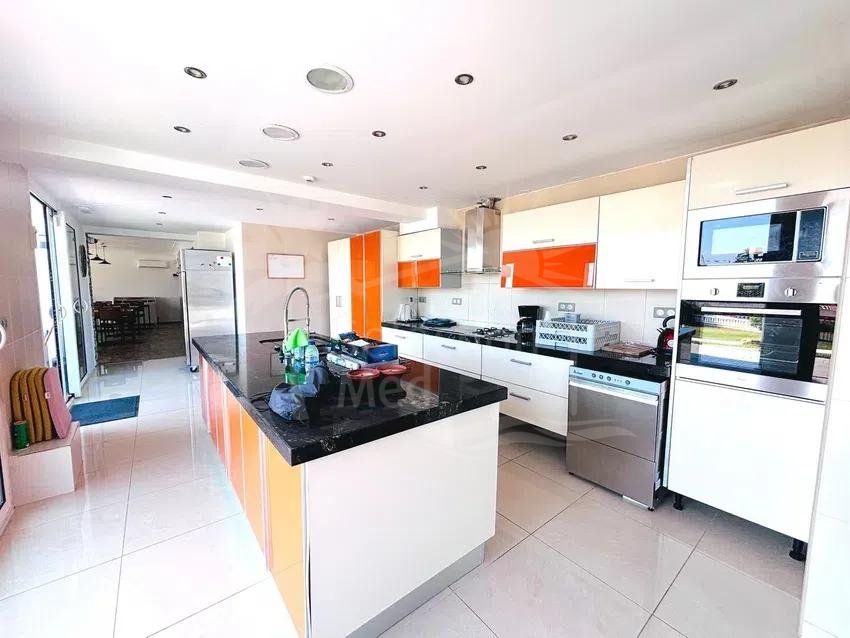 La cuisine entièrement équipée est parfaite pour préparer de délicieux repas, et la salle à manger offre une vue imprenable sur la mer. Les clients peuvent se détendre dans le salon confortable et profiter de la vue sur la piscine privée et le jardin bien entretenu.
