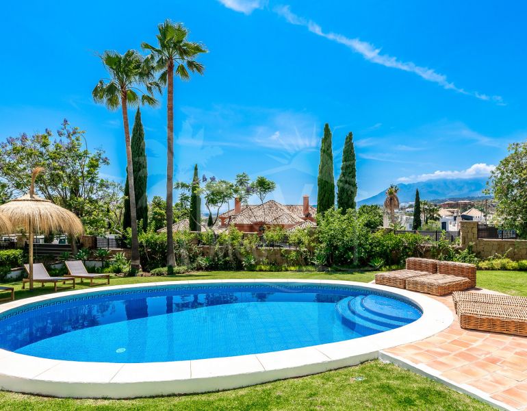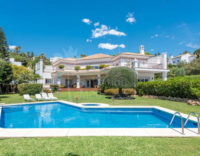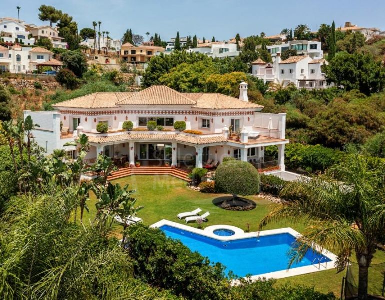 Villa à vendre à Benahavis avec 6 chambres, 6 salles de bains, construit à 2002 et a piscine (privé), garage (privé) et jardin (privé). Dimensions: 679m² construit, 1618m² parcelle, 629m² intérieur et 150m² terrasse. Cette propriété, orientation sud, dispose des commodités...