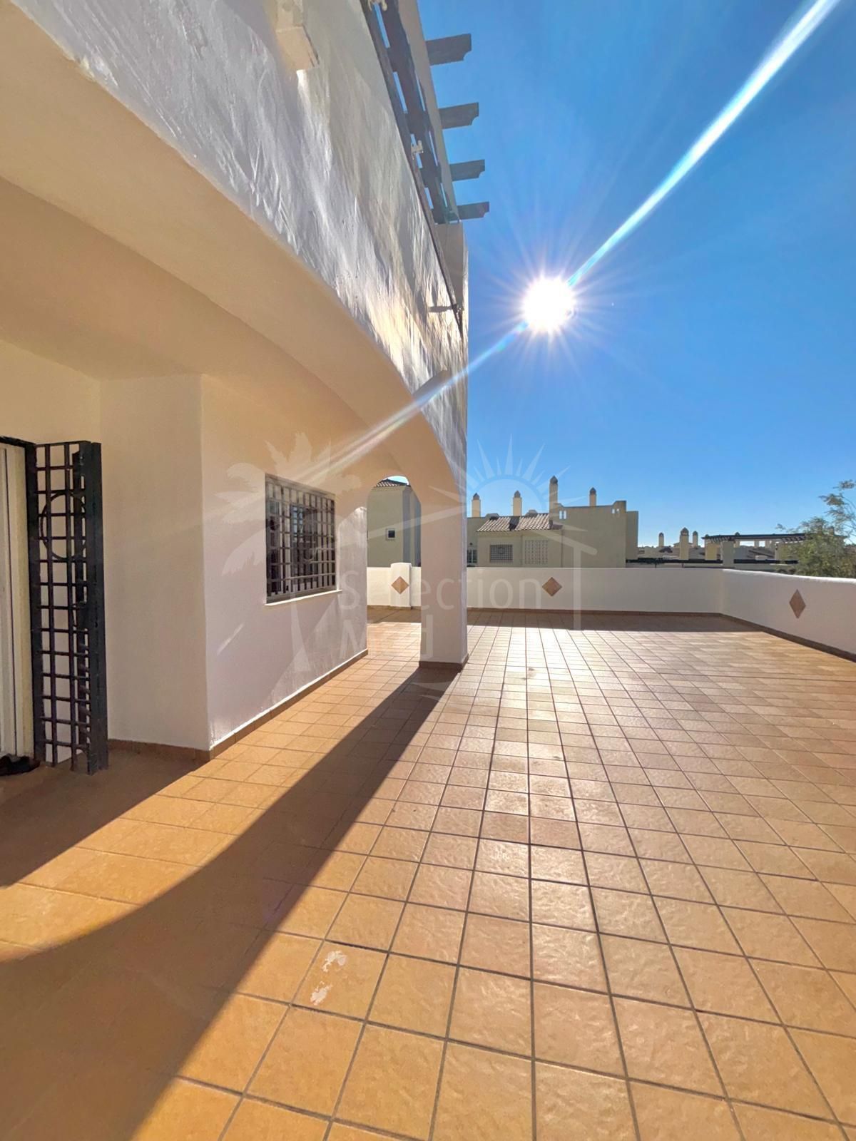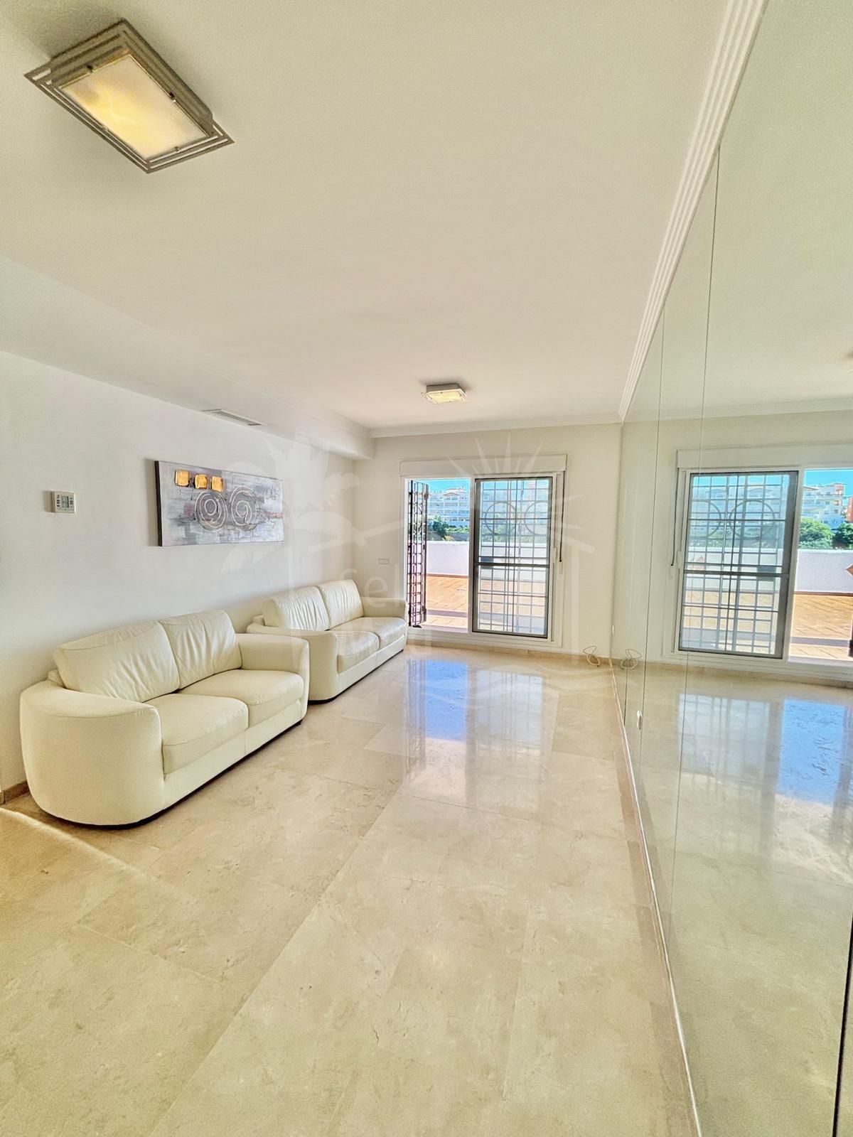 Cet appartement impressionnant de 170m2 offre une vie spacieuse et lumineuse dans un endroit très recherché entre la côte et le village. Conçu pour le confort et la commodité, il dispose de deux chambres doubles avec placards entièrement équipés, une salle de bains entièrement équipée et une cuisine moderne.