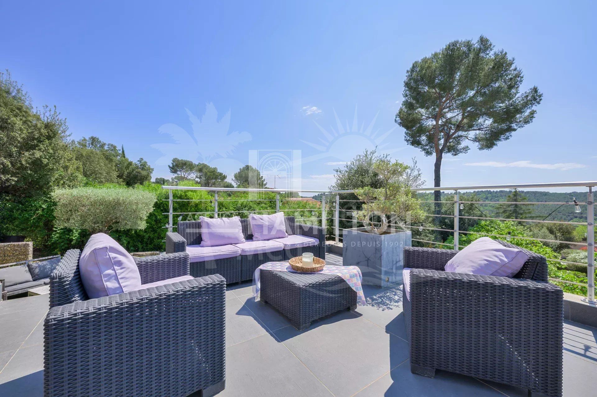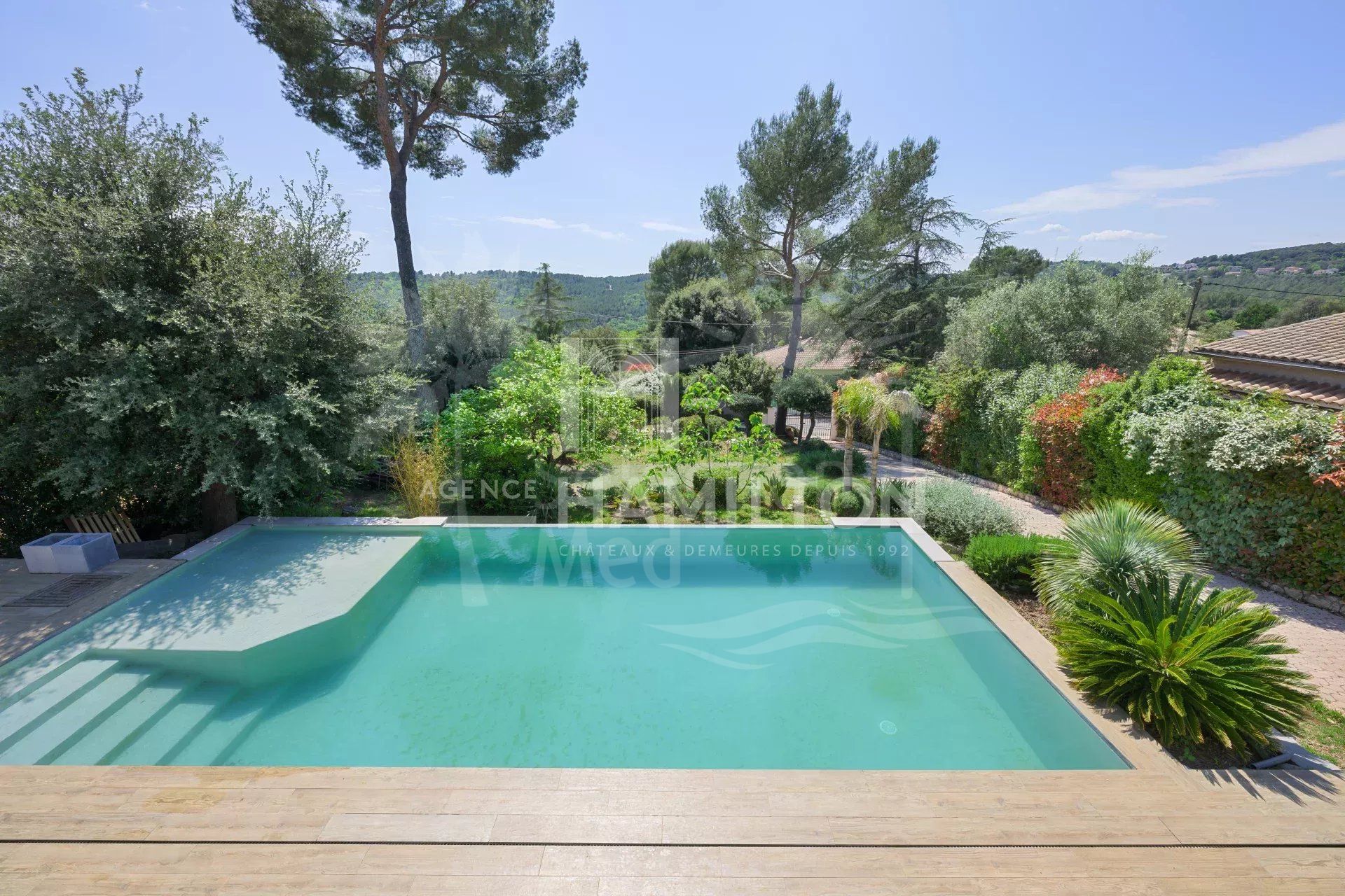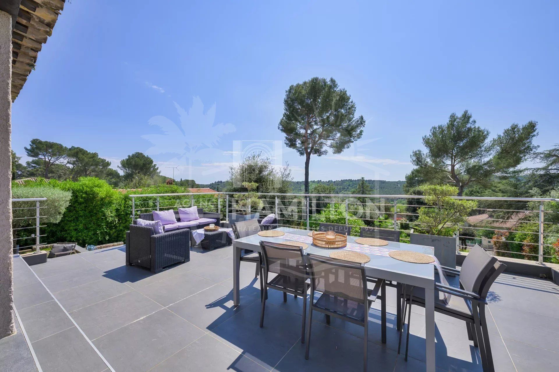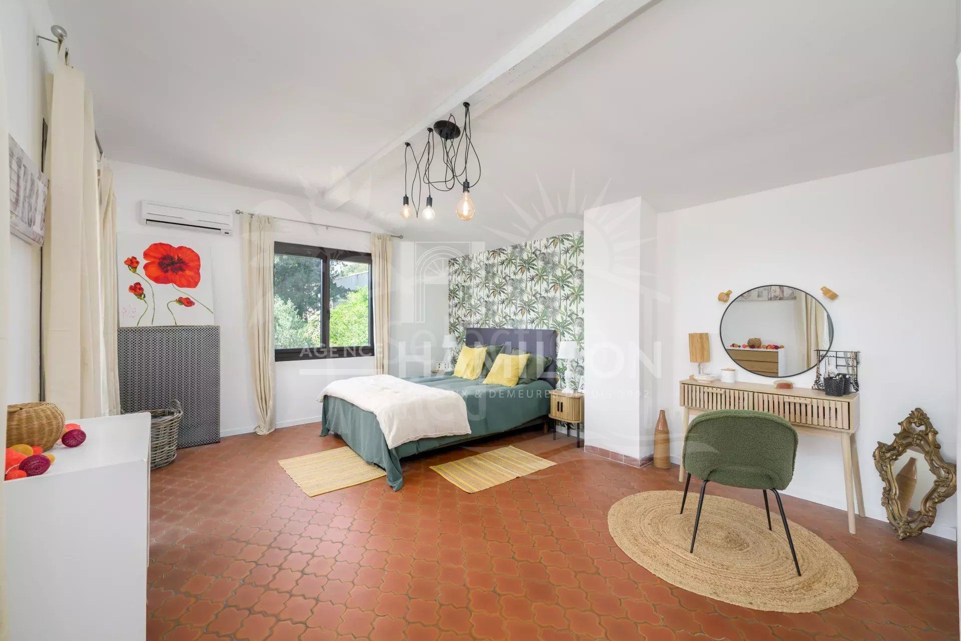 Maison à vendre à Biot avec 3 chambres, 2 salles de bains, 1 toilettes et a piscine. Dimensions: 198m² construit, 1321m² parcelle et 166m² intérieur.