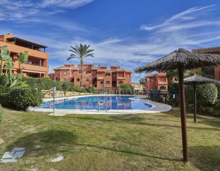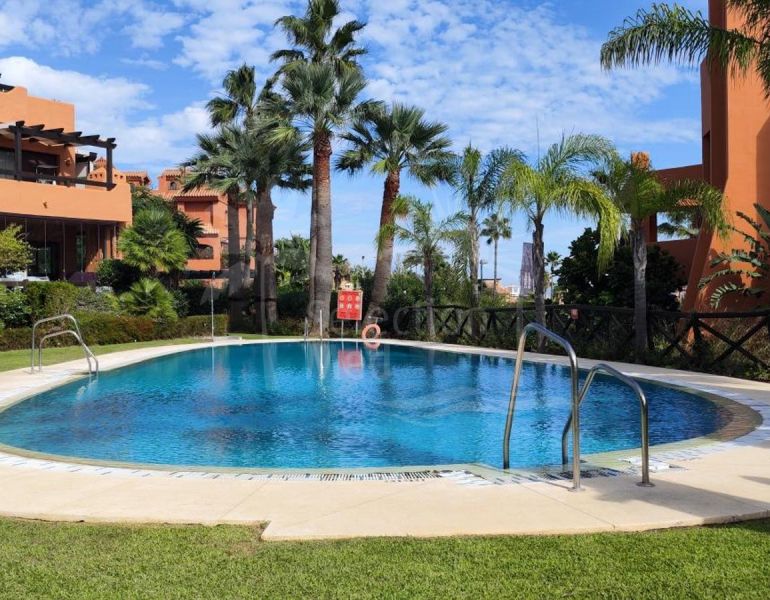Appartement rez de chaussée à vendre à Buenas Noches, Estepona Ouest avec 2 chambres, 2 salles de bains, 1 salles de bain en-suite, construit à 2006 et a piscine (communautaire), garage (privé) et jardin (privé). Dimensions: 133m² construit, 18m² parcelle,...