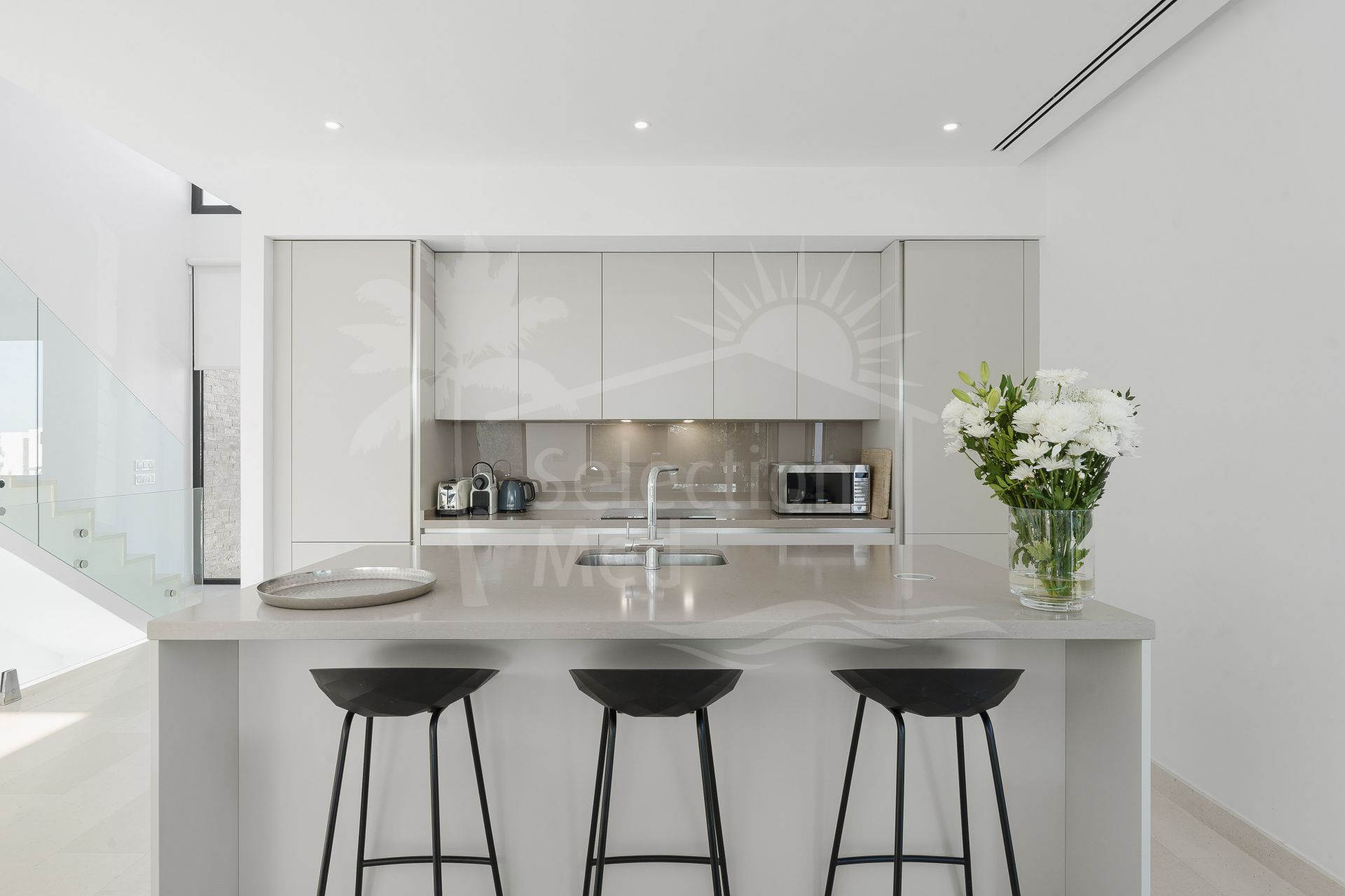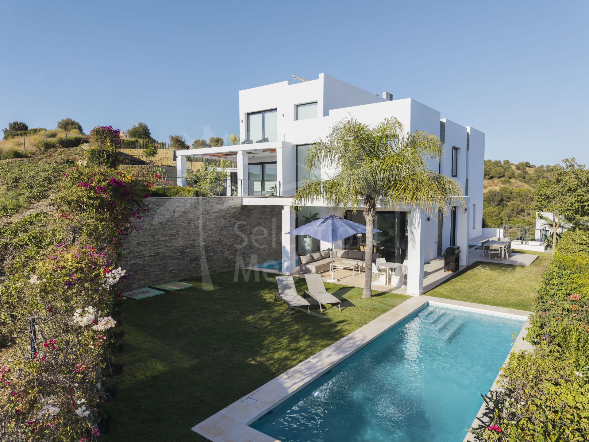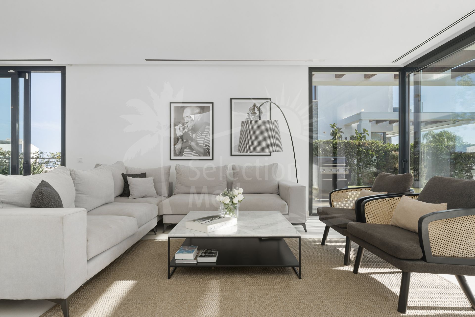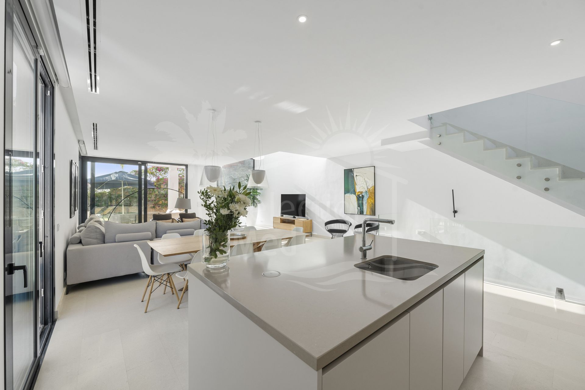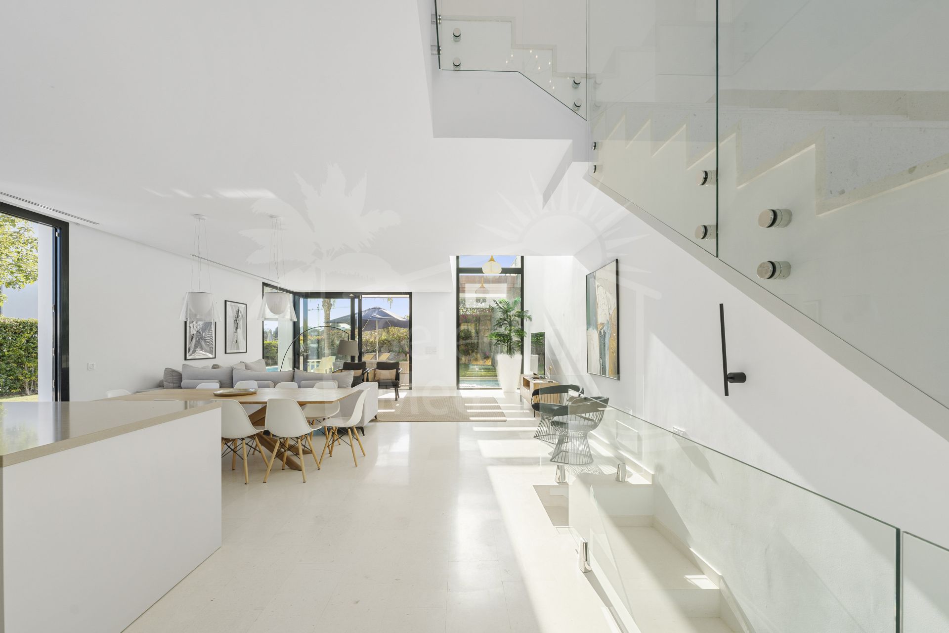 Villa à vendre à Cabopino, Marbella Est avec 5 chambres, 3 salles de bains, 4 toilets, construit à 2020 et a piscine (privé), garage (privé) et jardin (privé). Dimensions: 310m² construit et 360m² parcelle.