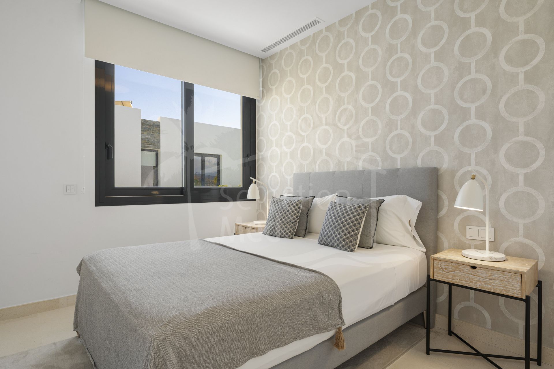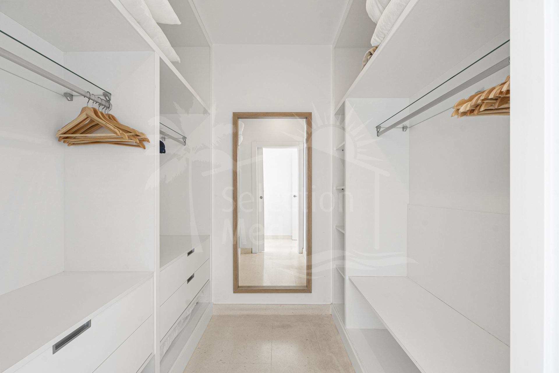 Cette propriété dispose des commodités suivantes: chambre d'invités, salle de séjour, salle de cinéma, services de proximité, entièrement meublé, résidence fermée, excellent état, vue sur le golf, proche de la mer/plage, dressing, vue sur la piscine et golf à proximité.
