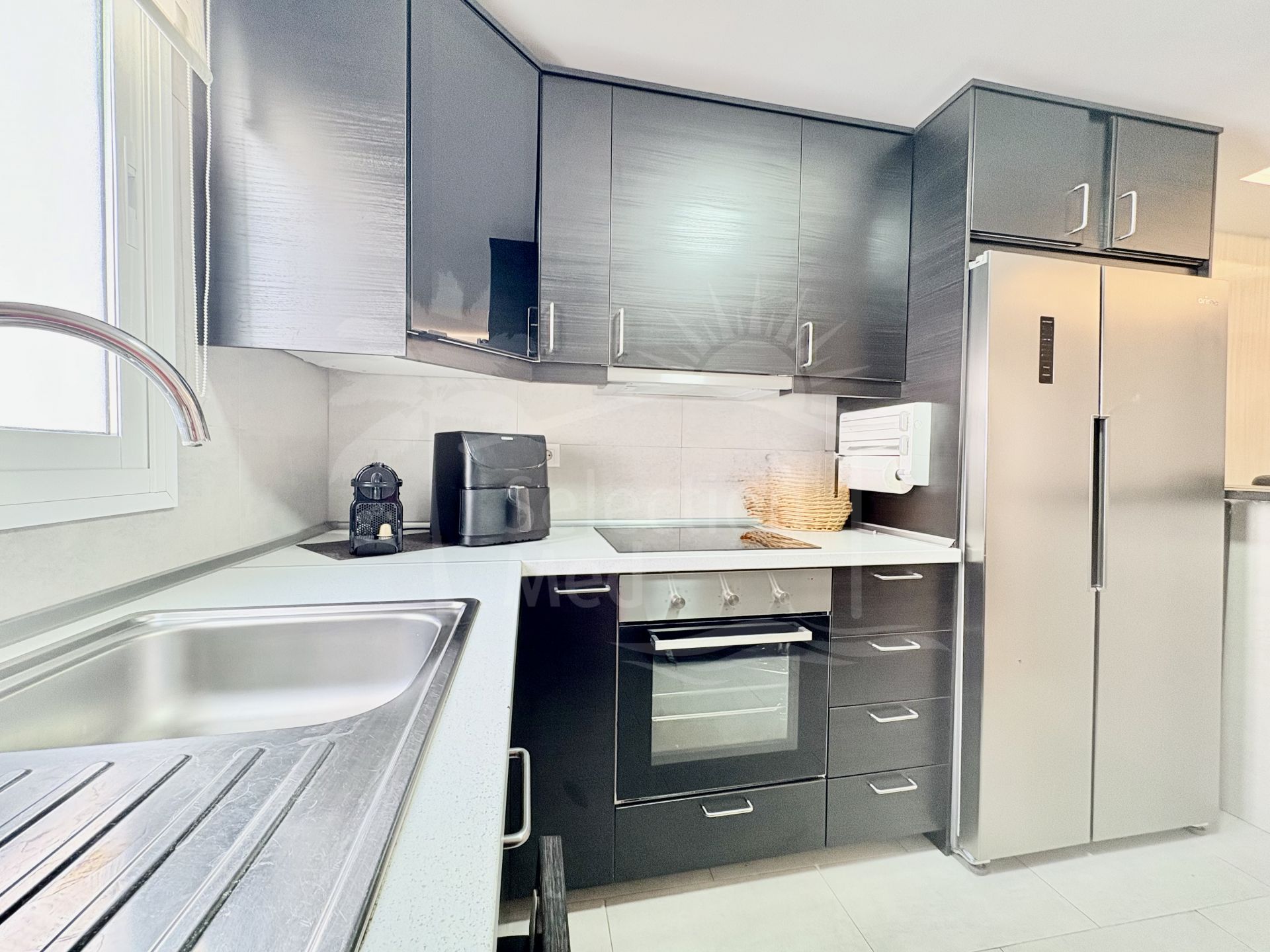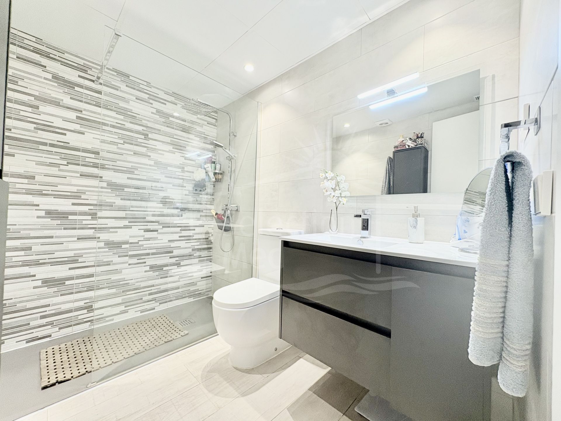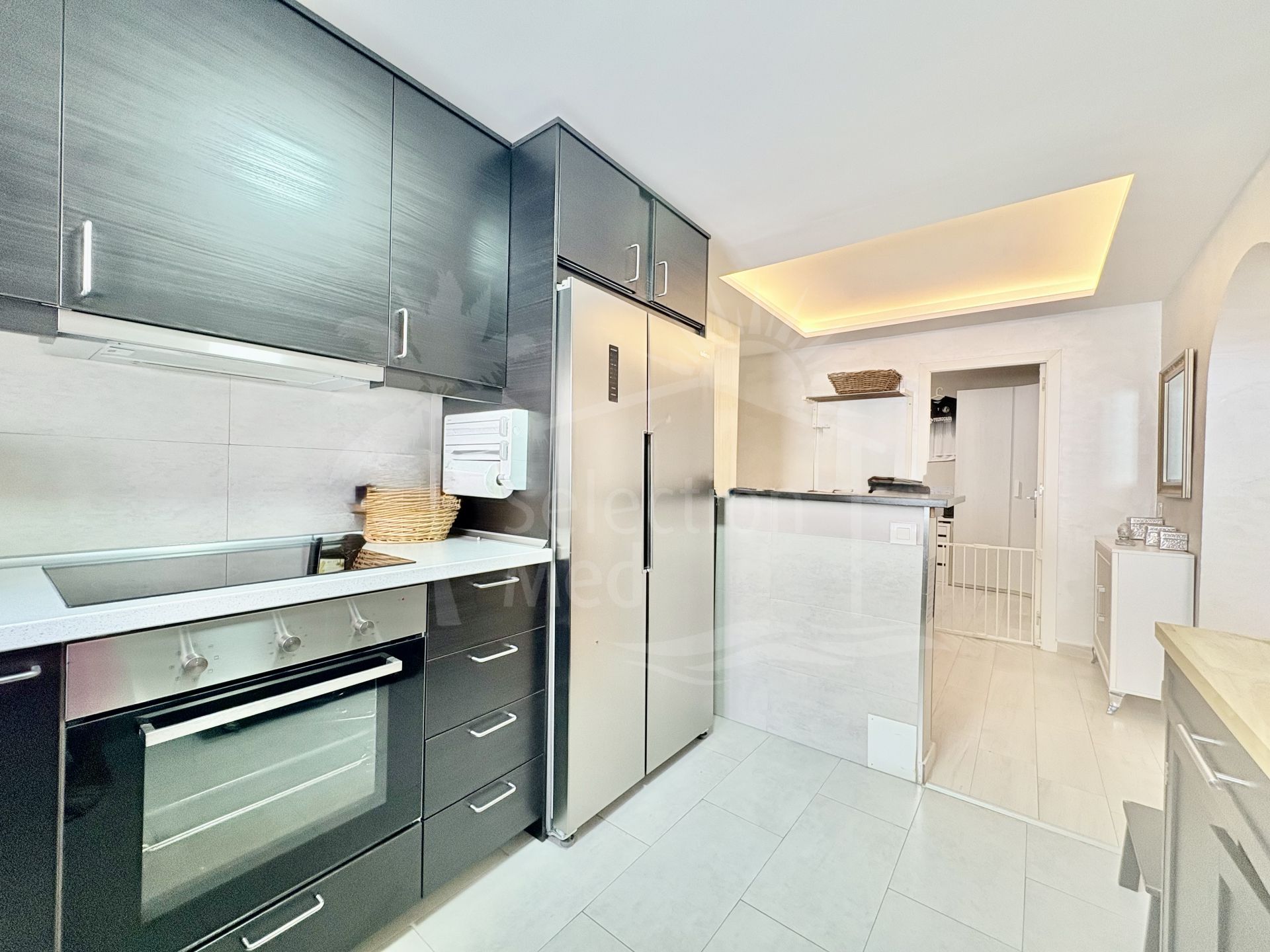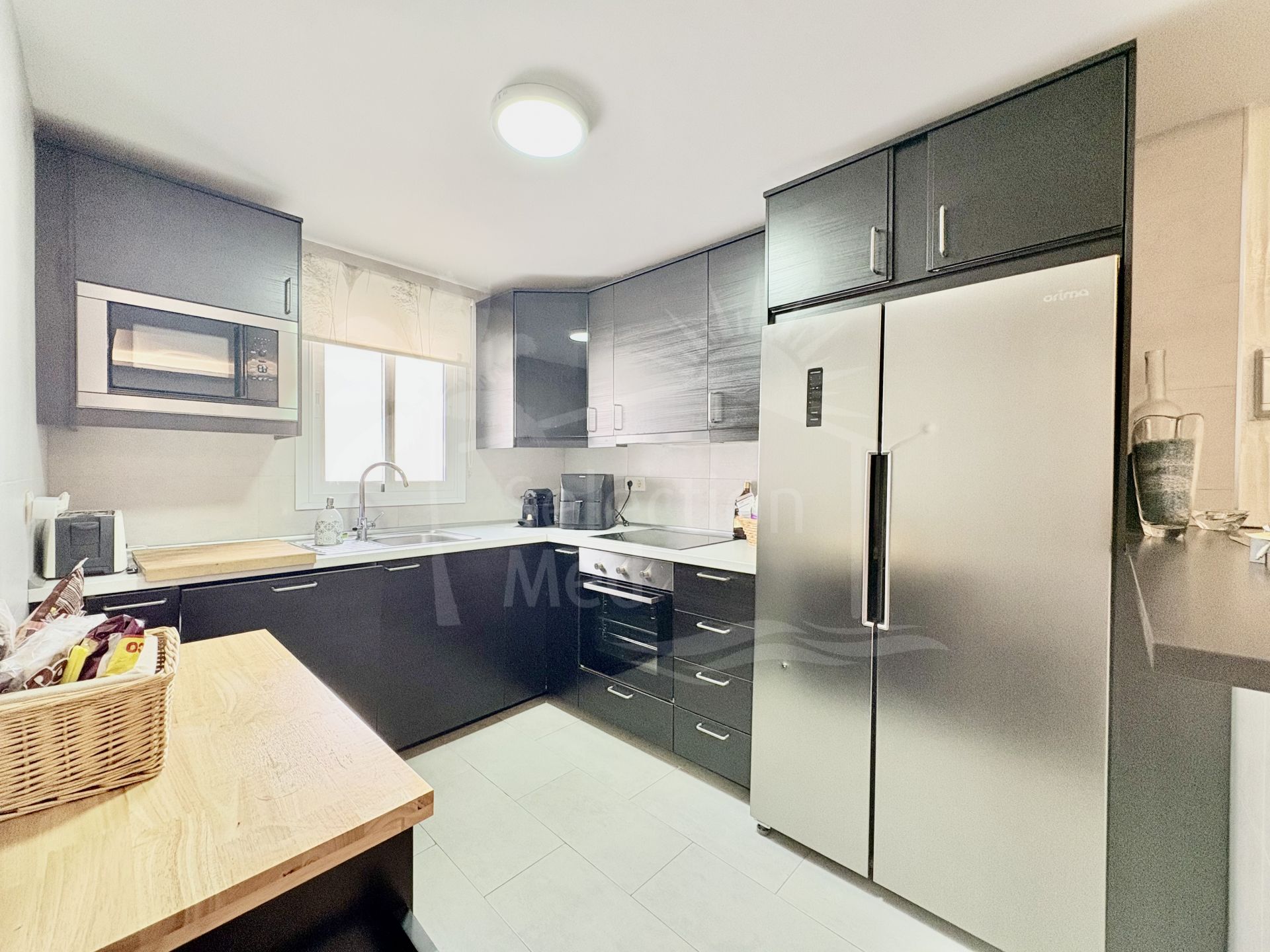 Appartement duplex au premier étage avec un vaste salon-salle à manger, une cuisine moderne, 3 chambres et 2 salles de bains, ainsi qu’un accès direct à un solarium privé de près de 90 m² avec cuisine d’été, espace barbecue et vue dégagée sur la ville et les montagnes de Mijas.