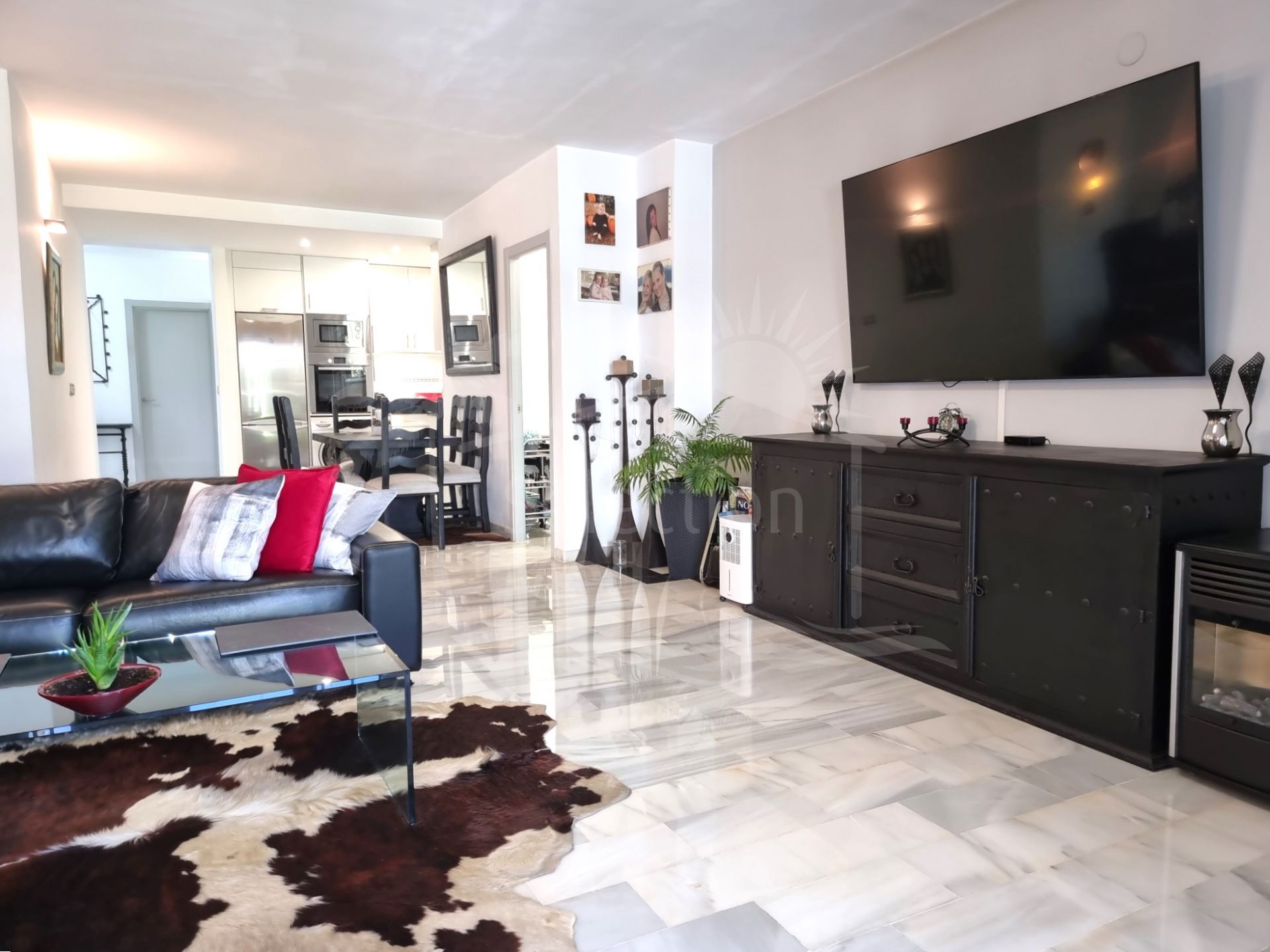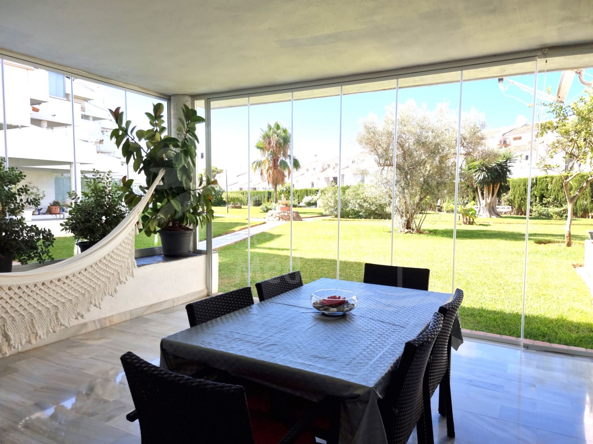 Appartement à vendre à Calahonda, Mijas Costa avec 3 chambres, 2 salles de bains, construit à 1983 et a piscine (communautaire), garage et jardin (communautaire). Dimensions: 127m² construit, 157m² parcelle, 107m² intérieur et 30m² terrasse.