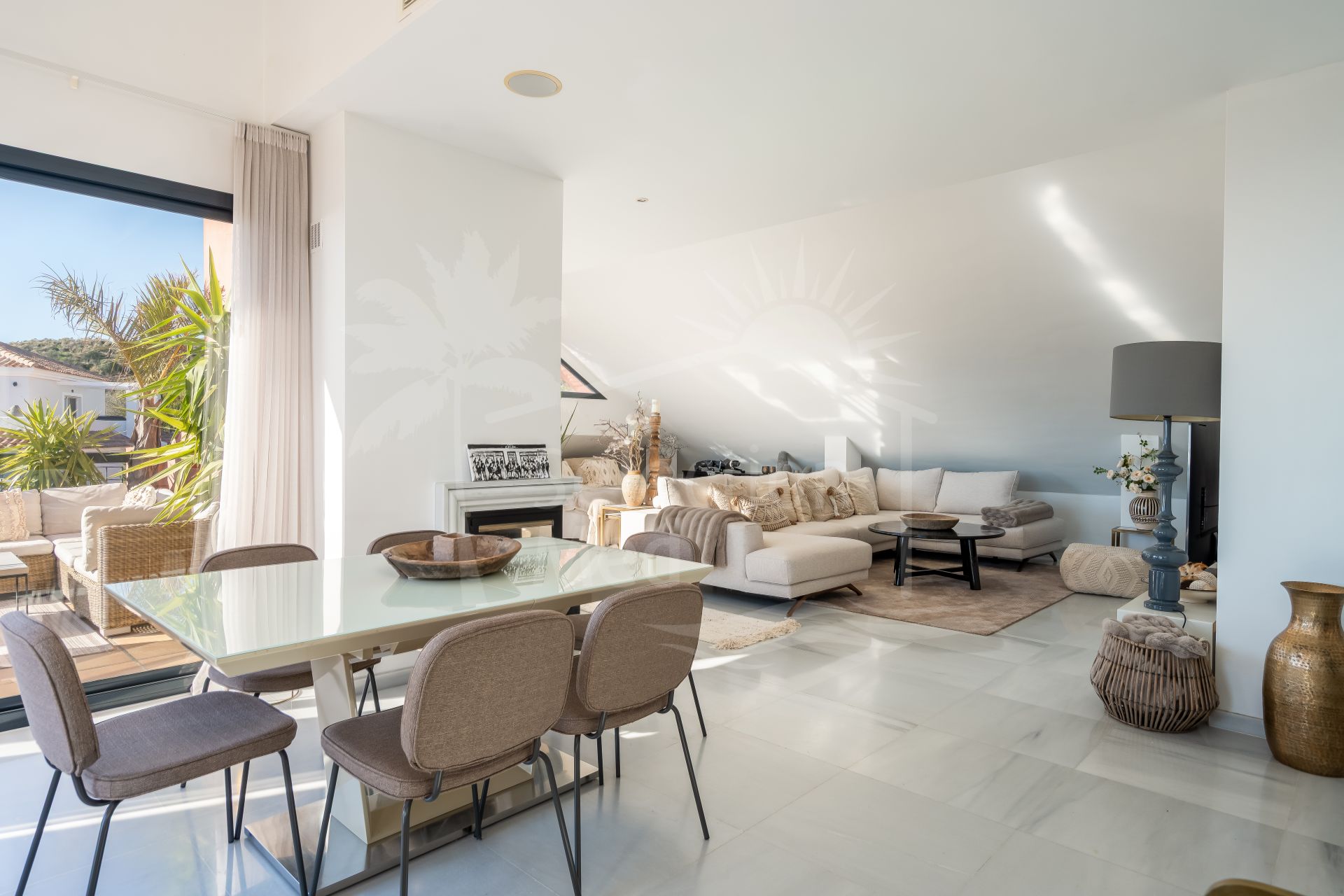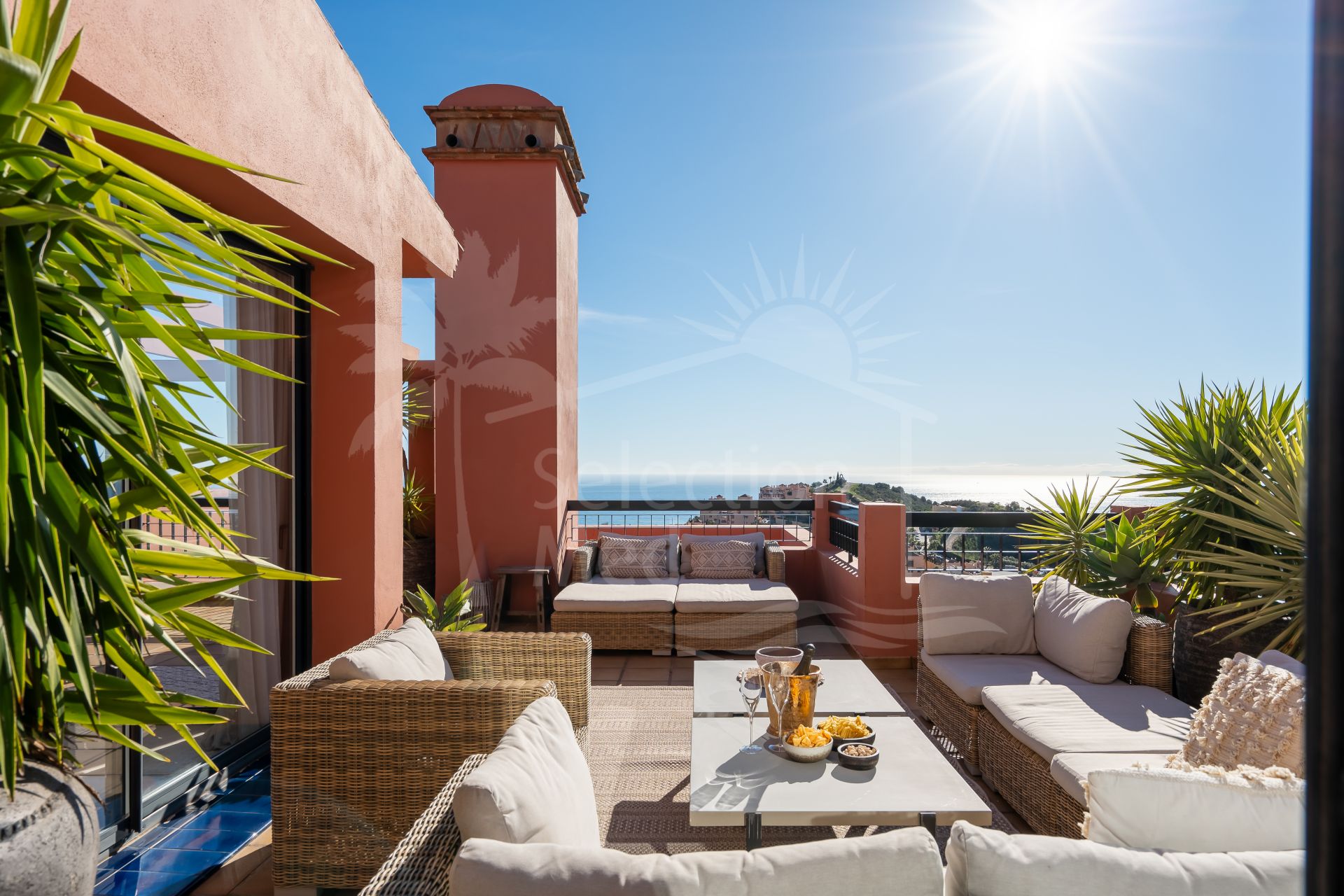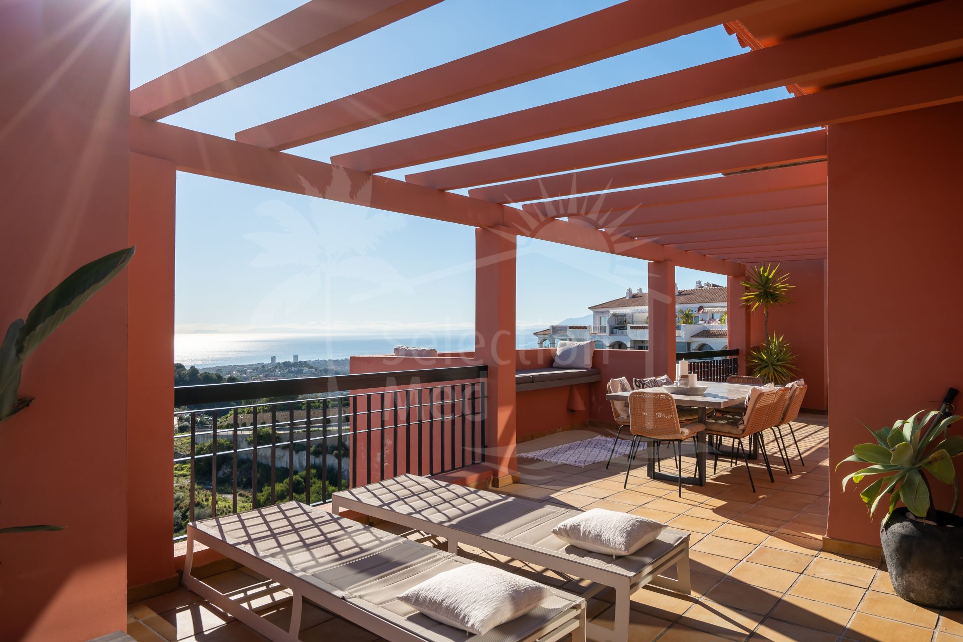 Duplex Penthouse à vendre à Calahonda, Mijas Costa avec 4 chambres, 4 salles de bains, 1 toilettes, construit à 2006 et a piscine (communautaire), garage (privé) et jardin (communautaire). Dimensions: 250m² construit et 220m² terrasse.