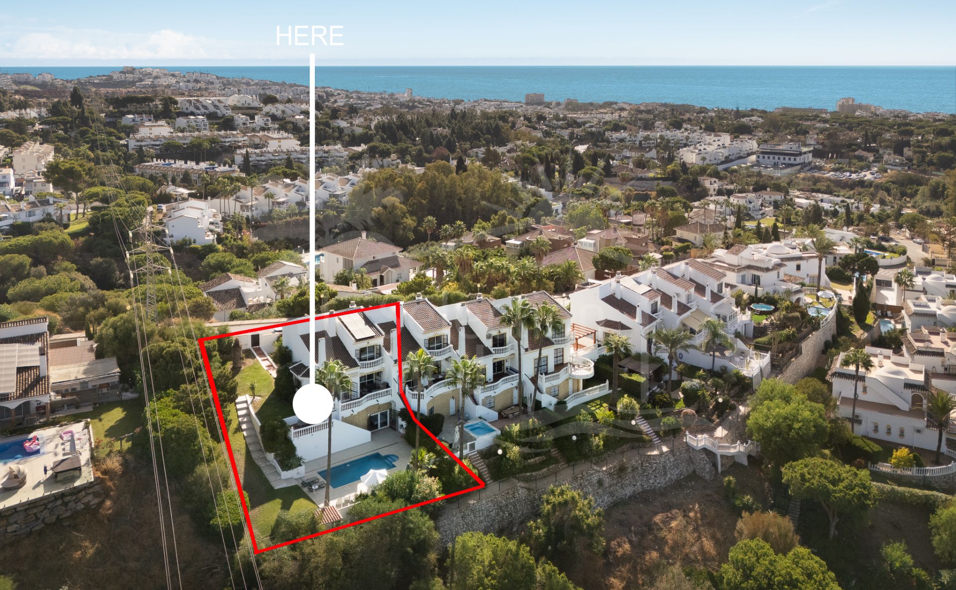 Maison de Ville à vendre à Calahonda, Mijas Costa avec 4 chambres, 3 salles de bains, 1 toilettes, construit à 2001 et a piscine (privé), garage (privé) et jardin (privé). Dimensions: 290m² construit et 596m² parcelle.