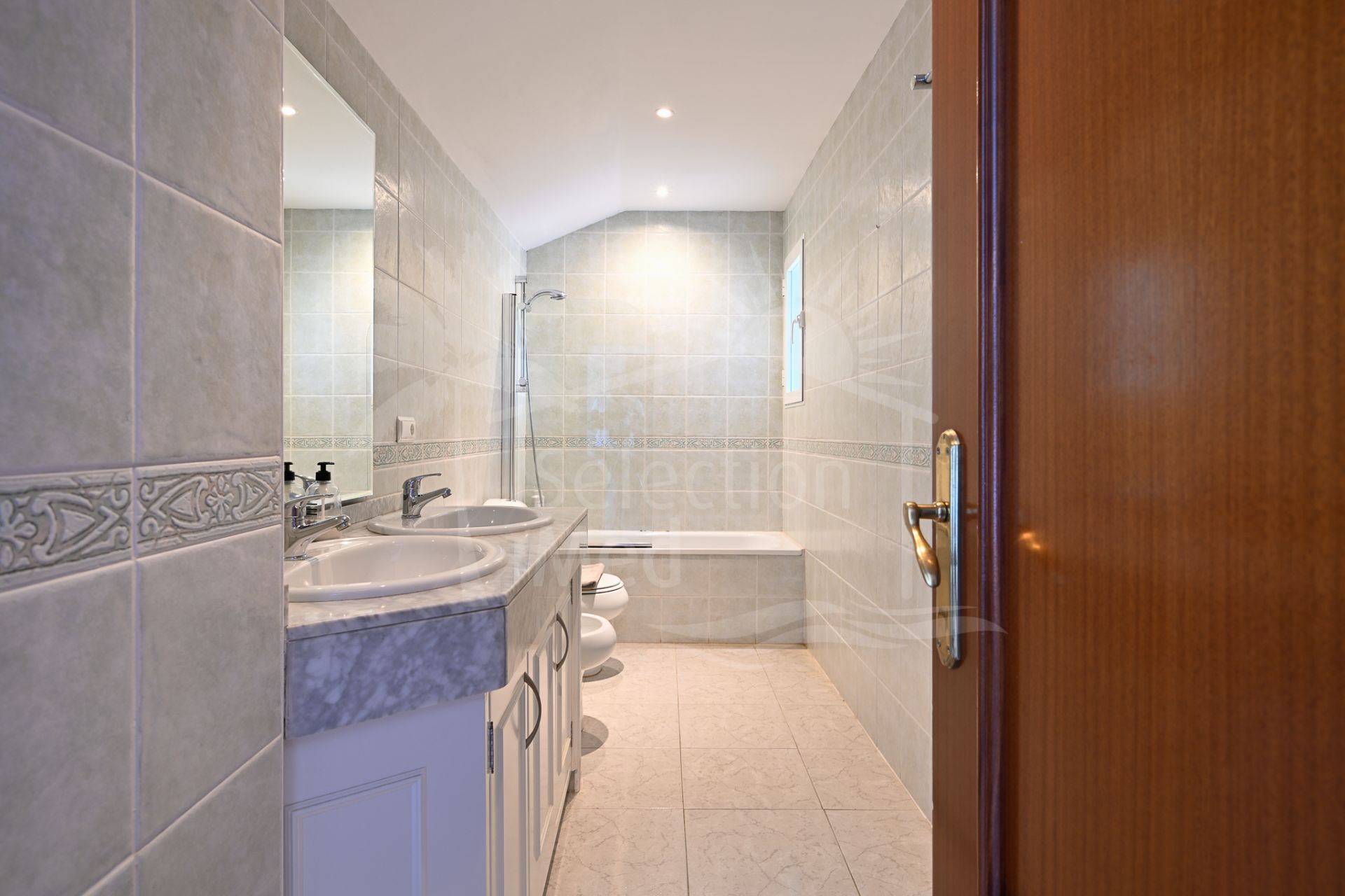 Cette propriété, orientation sud-ouest, dispose des commodités suivantes: cuisine équipée, salle de séjour, services de proximité, transport proche, À proximité des commerces, climatisation, près de la ville, proche des écoles, vue mer, vue montagne, proche de la mer/plage, golf à proximité, panneaux solaires, chambre d'invités, internet – wi-fi, balcon, placards, excellent état, salle à manger, vue sur le jardin, vue sur la piscine et toilette d'invités.