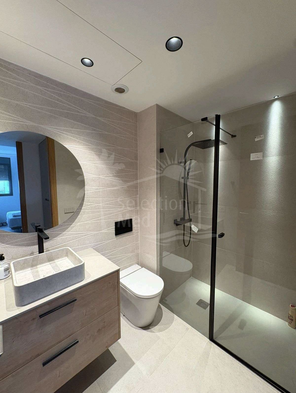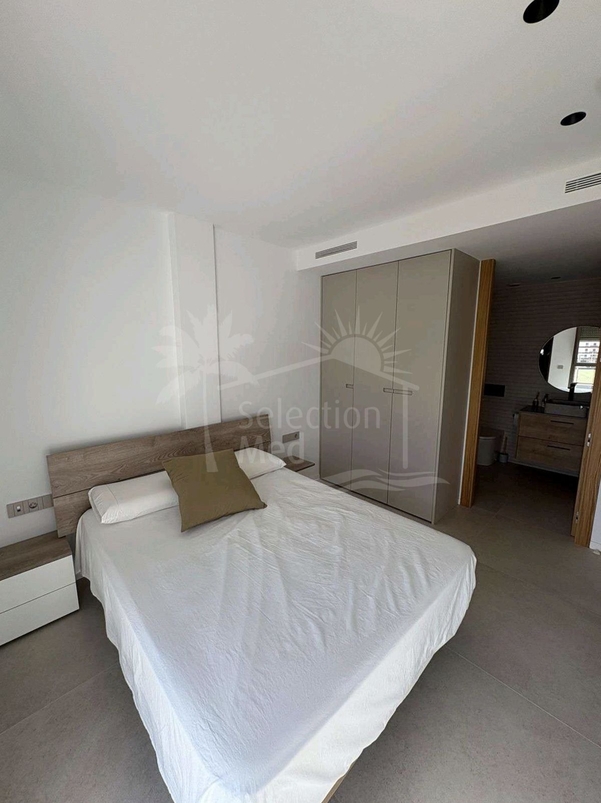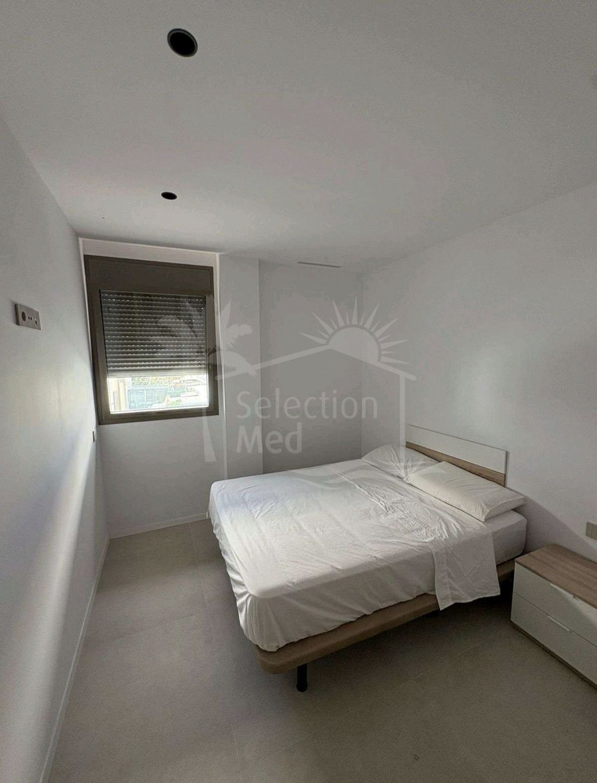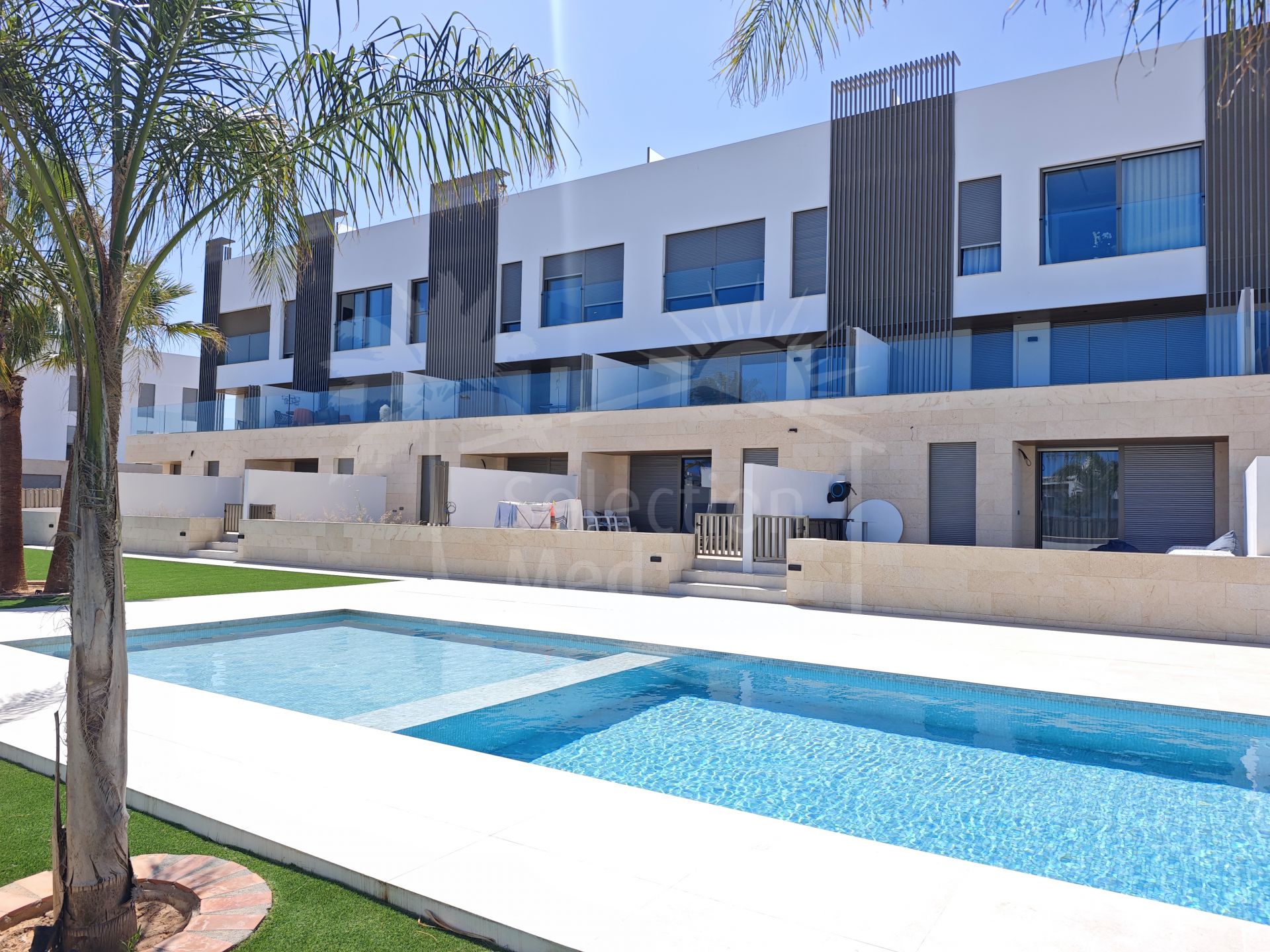 Le logement a une surface construite de 124 m2, dont 84,84 m2 correspondent à l'intérieur et 49,05 m2 à une grande terrasse privée, idéale pour profiter du climat méditerranéen et vue sur le jardin, la piscine et la ville. L'appartement dispose de trois chambres avec placards, deux salles de bains complètes (l'une en suite) et une cuisine entièrement équipée, ainsi qu'un lavabo pratique. Il est livré entièrement mobilisé et avec des finitions de haute qualité.