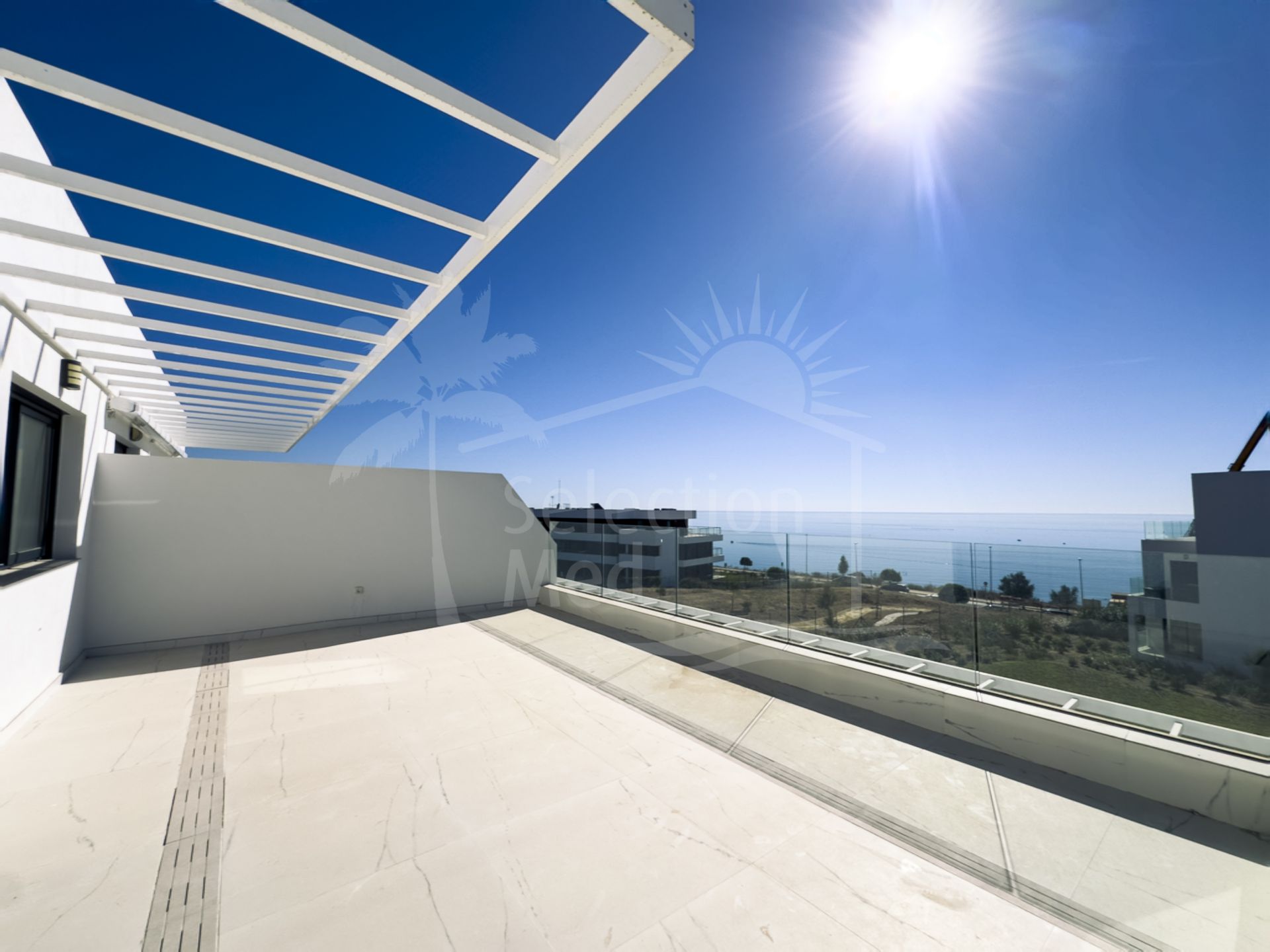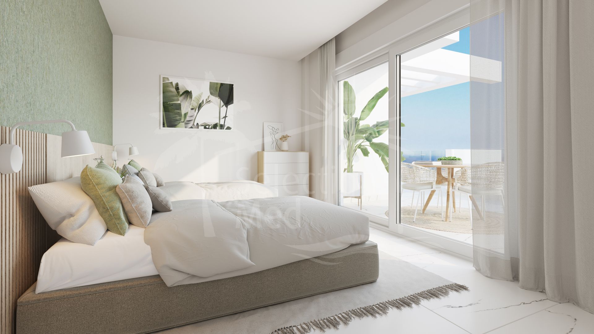 Appartement Terrasse à vendre à Casares Playa, Bahia de Casares avec 2 chambres, 2 salles de bains, 1 salles de bain en-suite, construit à 2024 et a piscine (communautaire), garage (communautaire) et jardin (communautaire). Dimensions: 91.42m² construit, 78.56m² intérieur et 95.6m² terrasse.