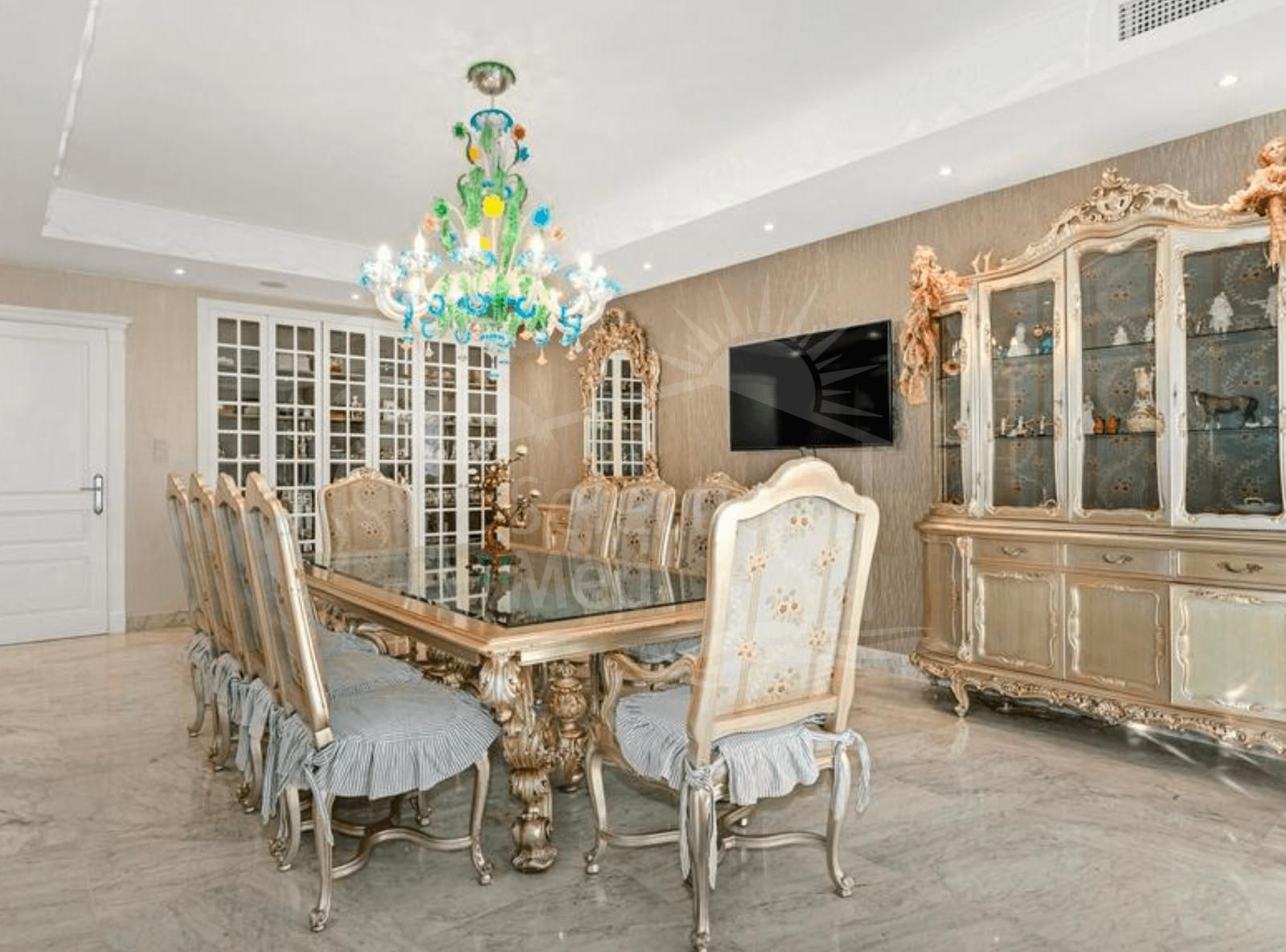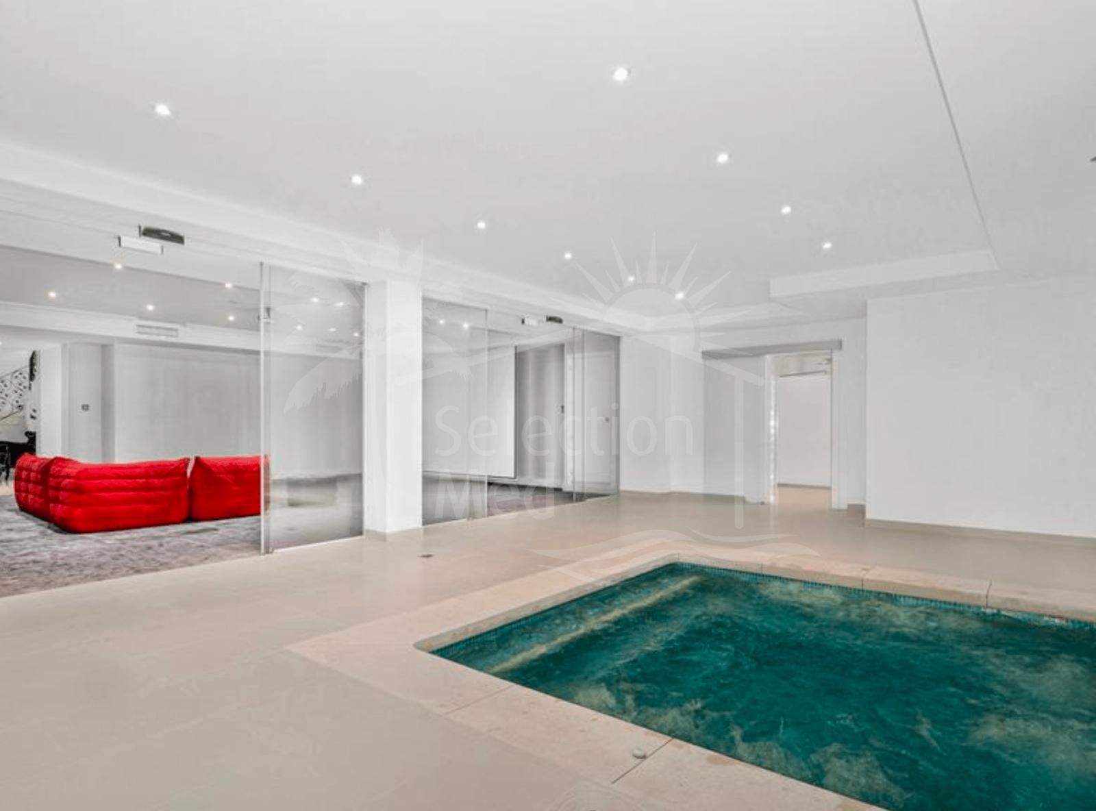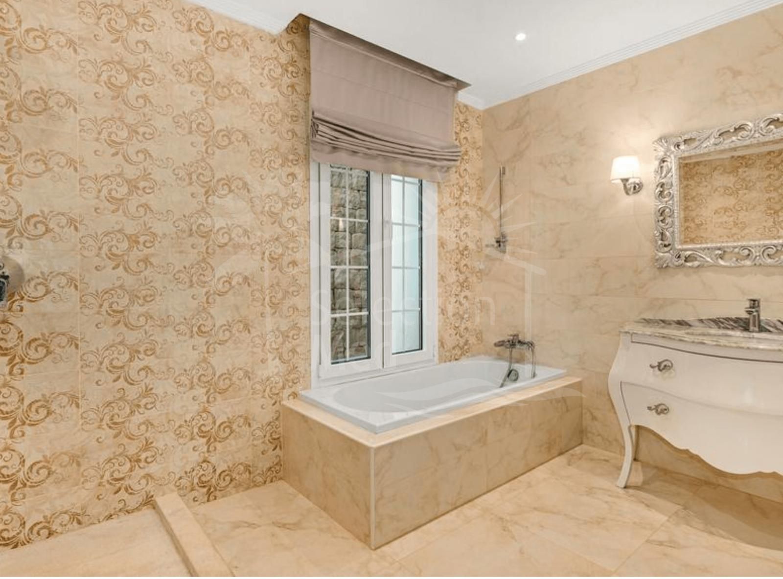 8 chambres et 8 salles de bains, toilettes séparées pour les invités au rez-de-chaussée de la maison, cuisine équipée moderne, système de domotique, sols en marbre chauffés dans toute la maison y compris les salles de bains, bureau-bibliothèque, salle de cinéma confortable. Pour le repos et la détente, spa avec jacuzzi et hammam, piscine intérieure, ainsi que dans la maison, il y a un garage pour 6 voitures.