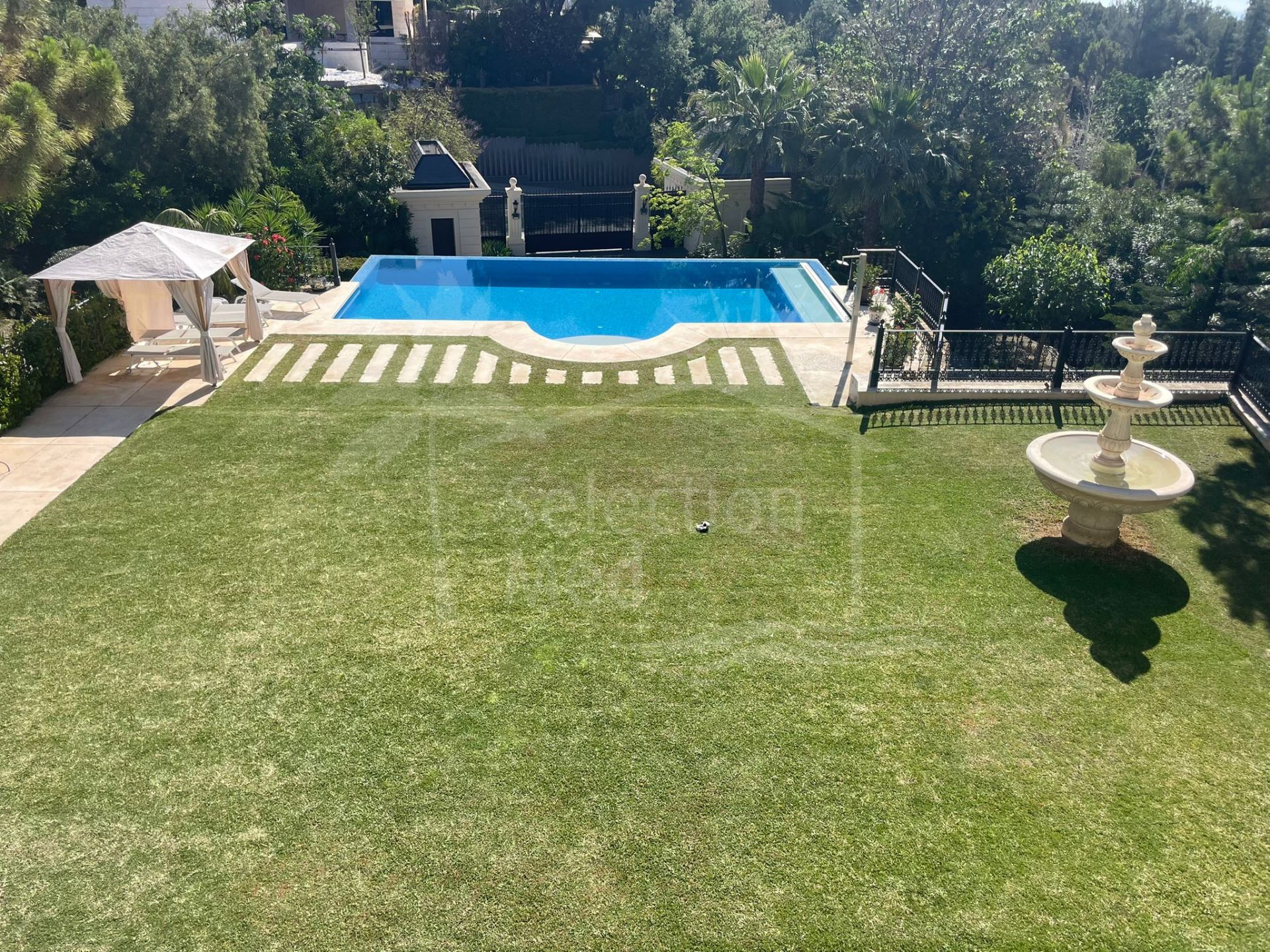 Cette maison a tout ce qu'il faut pour une vie bien équipée : une rénovation de qualité avec des matériaux modernes vous impressionnera par sa beauté et sa fiabilité. L'intérieur de la maison est décoré dans un style classique et crée un incroyable confort de vie. De magnifiques vues sur la mer et les montagnes vous impressionneront de tous les coins de la maison. La maison est située dans la communauté fermée de Cascade de Camojan, un quartier exclusif du Golden Mile de Marbella. Il s'agit d'une propriété privée de 3627 mètres carrés, construite en 2018 et orientée sud-est.