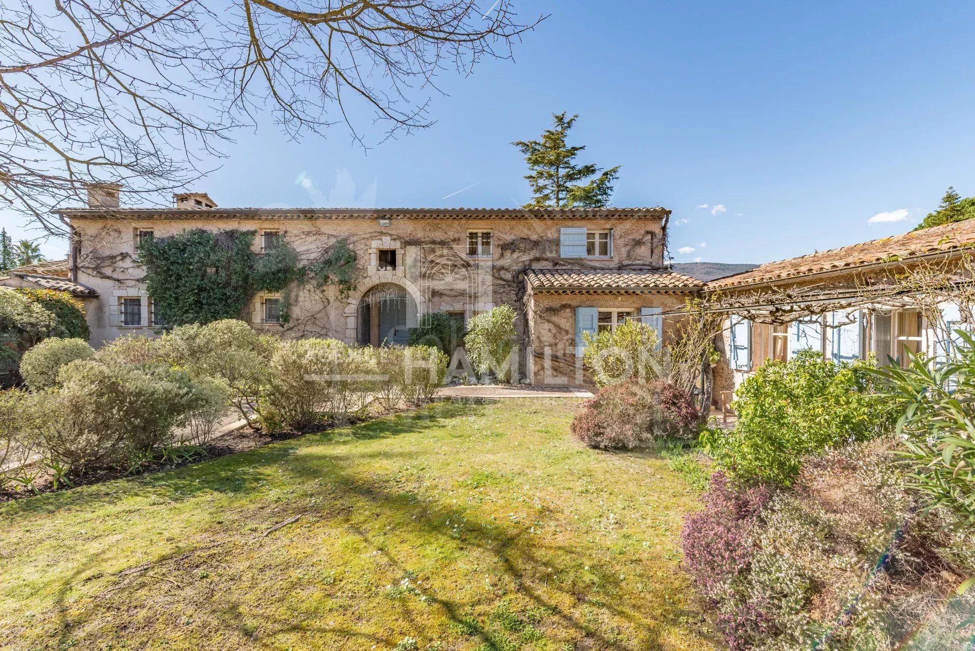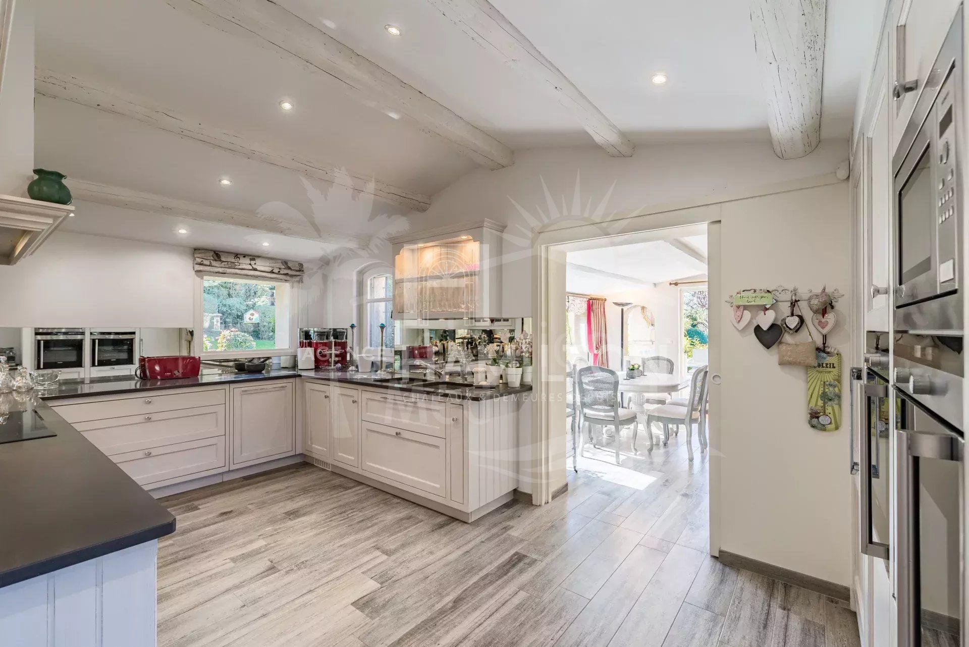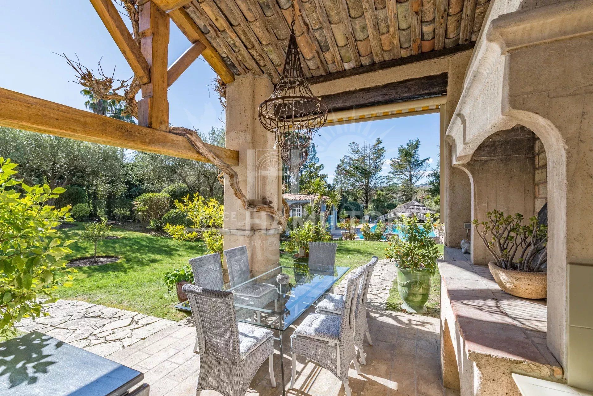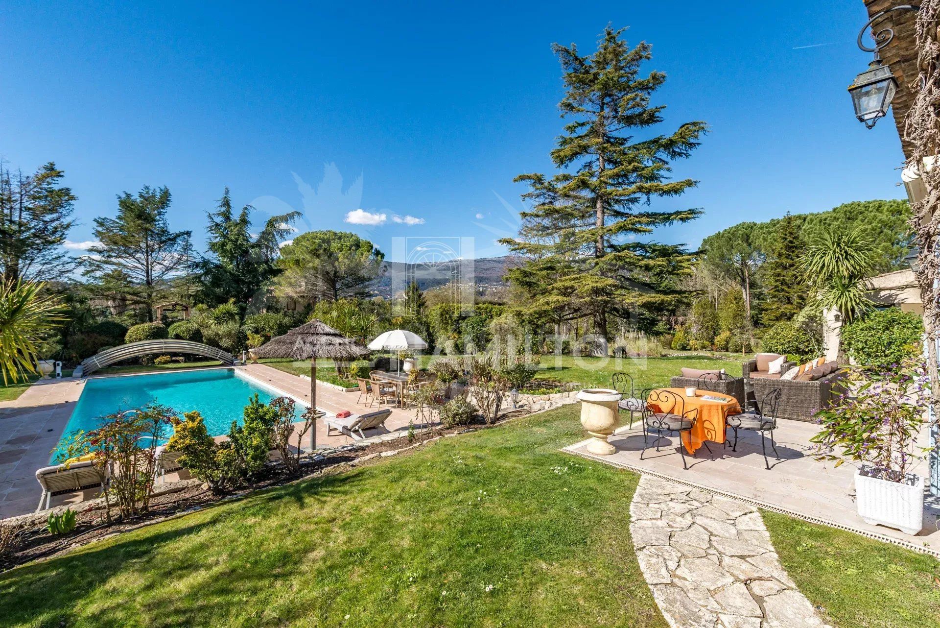 Maison à vendre à Châteauneuf-Grasse avec 5 chambres, 3 salles de bains, 1 toilettes et a piscine et garage (abri voiture). Dimensions: 5333m² parcelle et 330m² intérieur.