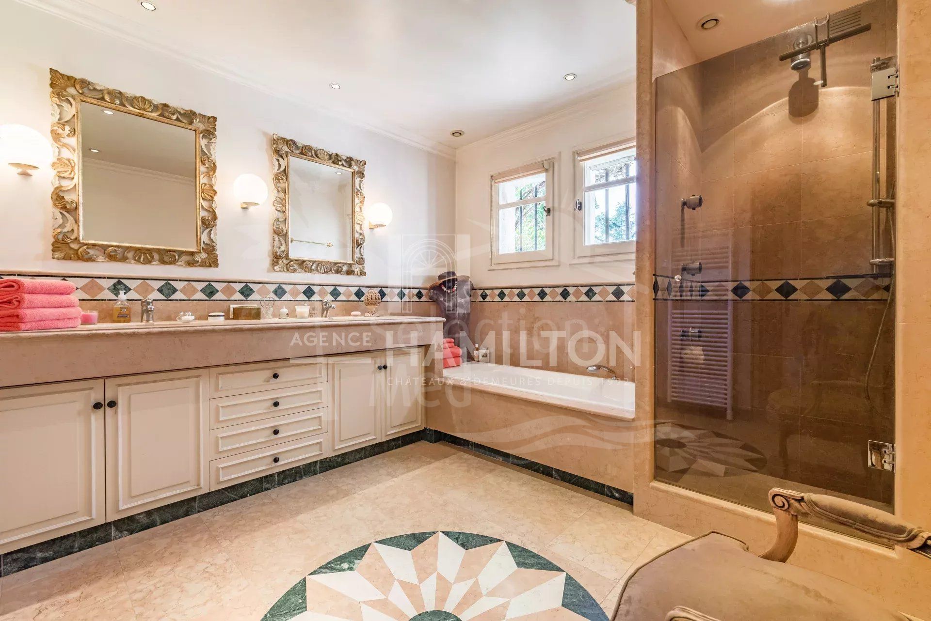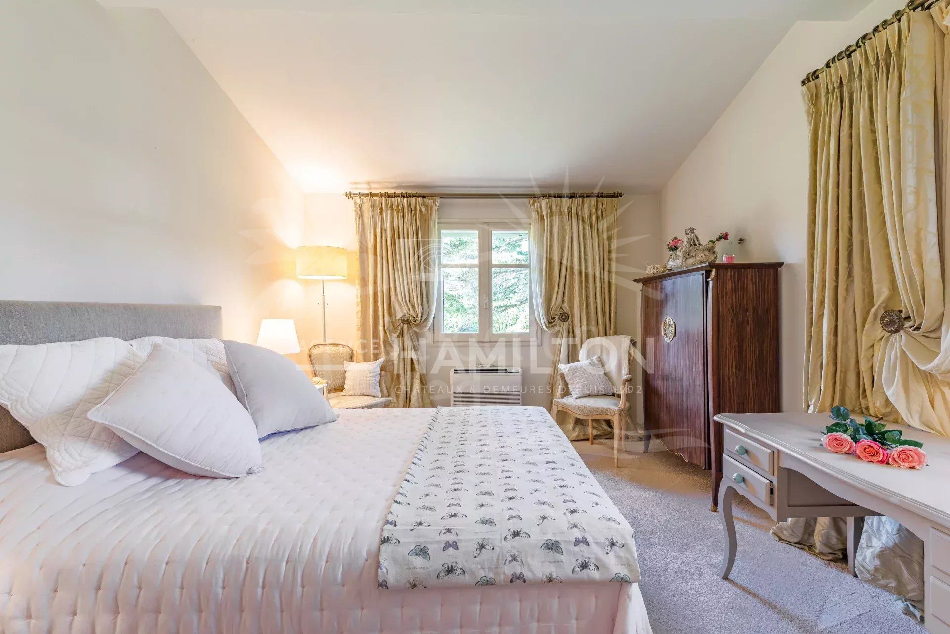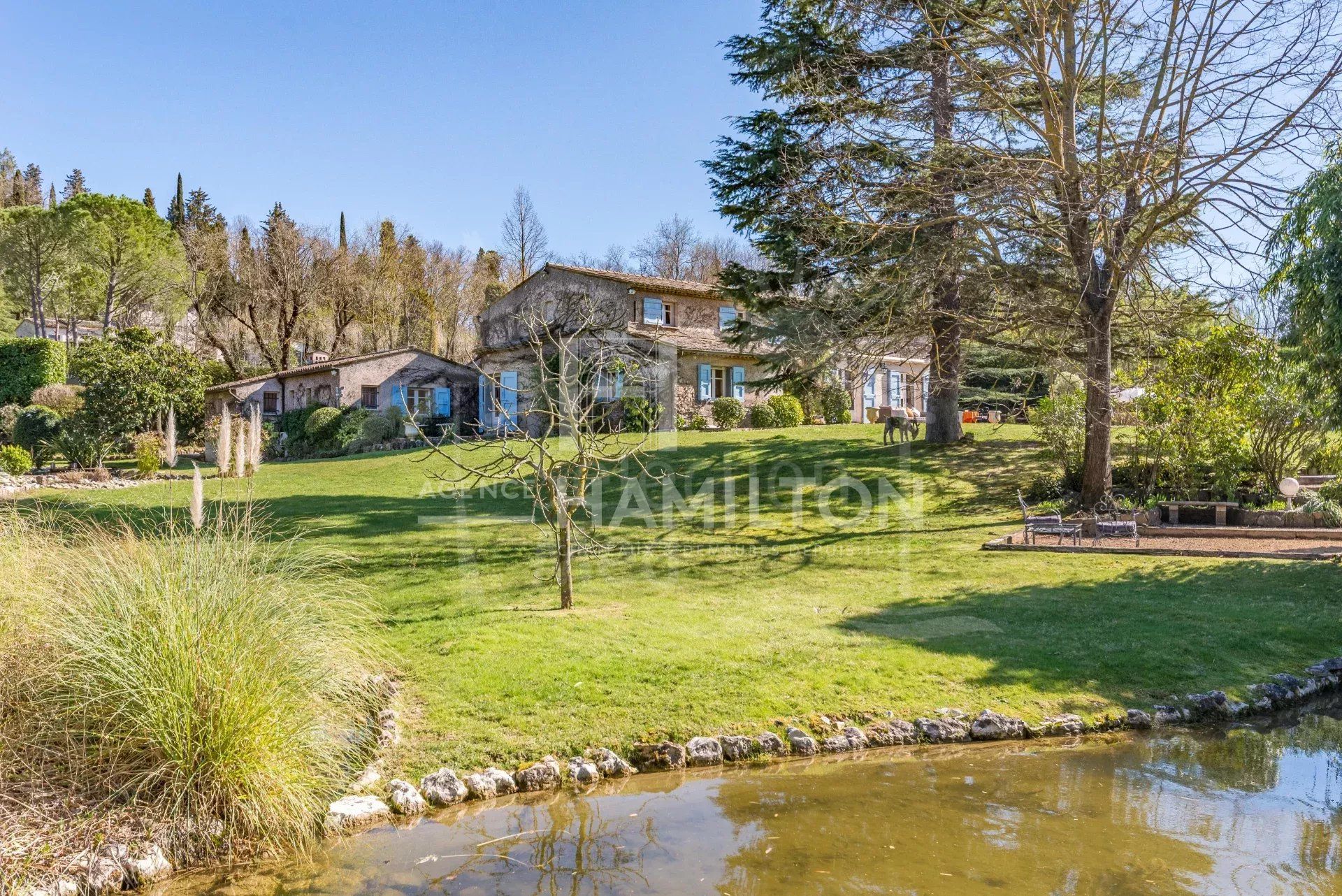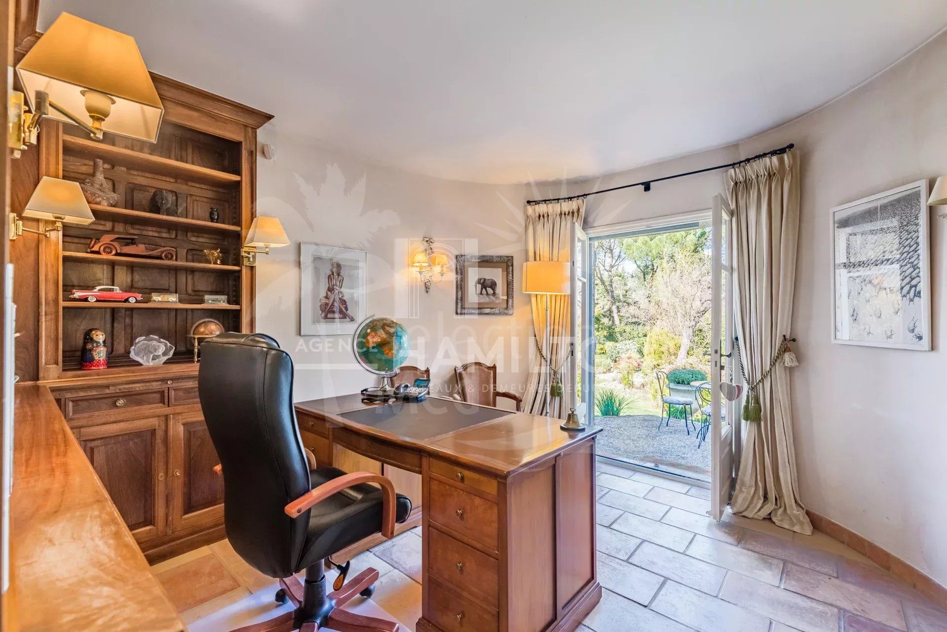 Maison à vendre à Châteauneuf-Grasse avec 5 chambres, 3 salles de bains, 1 toilettes et a piscine et garage (abri voiture). Dimensions: 5333m² parcelle et 330m² intérieur.