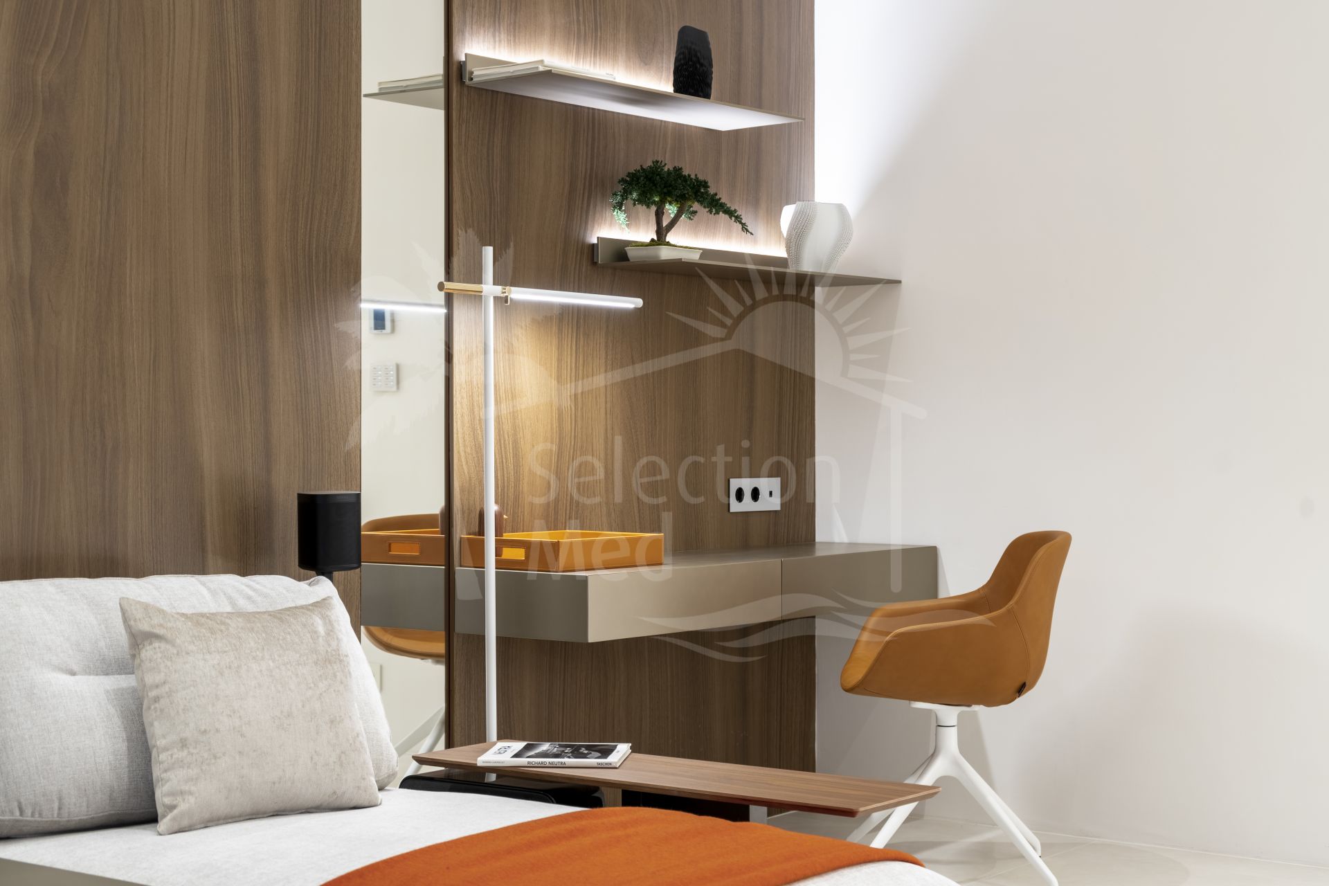 Pour garantir un confort en toute saison, la maison est équipée de la climatisation réversible. Les fenêtres à double vitrage assurent efficacité énergétique et isolation phonique, tandis que le système d’éclairage LED sophistiqué permet de créer une ambiance personnalisée. Elle dispose également d’un système domotique, d’un sauna à vapeur, d’une cheminée à bois et à vapeur, ainsi que d’un chauffage au sol hydraulique. Les marques utilisées pour la rénovation sont de prestige : Modulnova, Rimadesio, B&B Italia, Flexform, Vibia, Porcelanosa, Tempur, NEFF et Gaggenau.