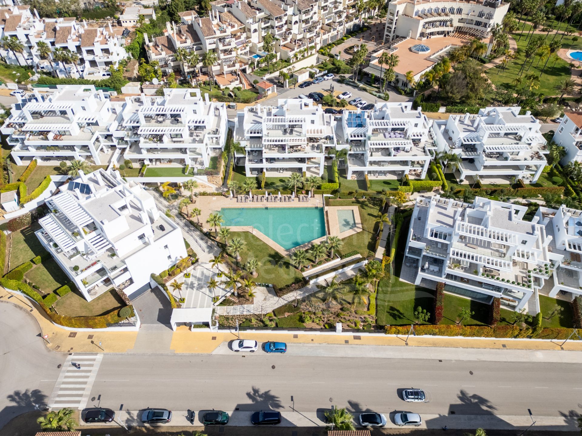 Situé dans un environnement paisible et pratique, le bien se trouve à distance de marche de deux centres commerciaux, et à seulement quelques minutes en voiture de San Pedro, Estepona et Marbella — offrant ainsi un parfait équilibre entre tranquillité et accessibilité.