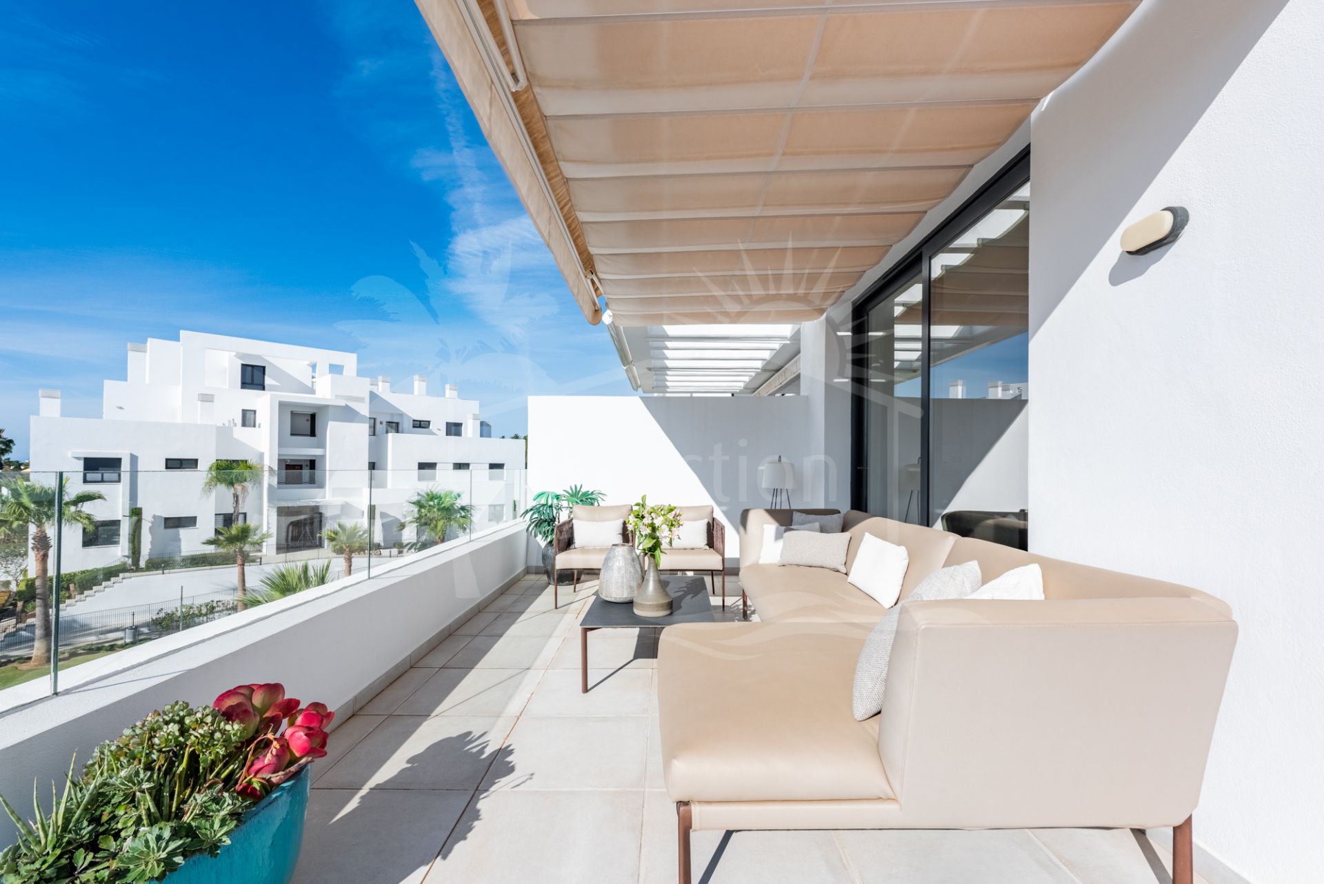 Ce magnifique penthouse duplex est situé dans le complexe récemment construit de Cortijo del Golf, à deux pas du El Campanario Golf & Country House, sur la très prisée New Golden Mile d’Estepona.
