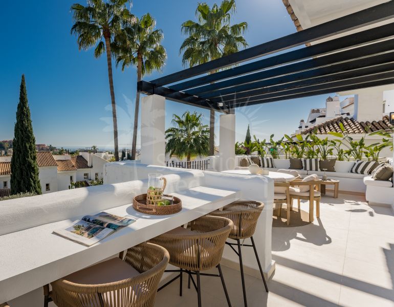 Duplex Penthouse à vendre à Los Naranjos Golf, Nueva Andalucia avec 3 chambres, 4 salles de bains, construit à 2002 et a piscine (communautaire) et garage (privé). Dimensions: 245m² construit et 80m² terrasse. Cette propriété, orientation sud, dispose des commodités suivantes:...