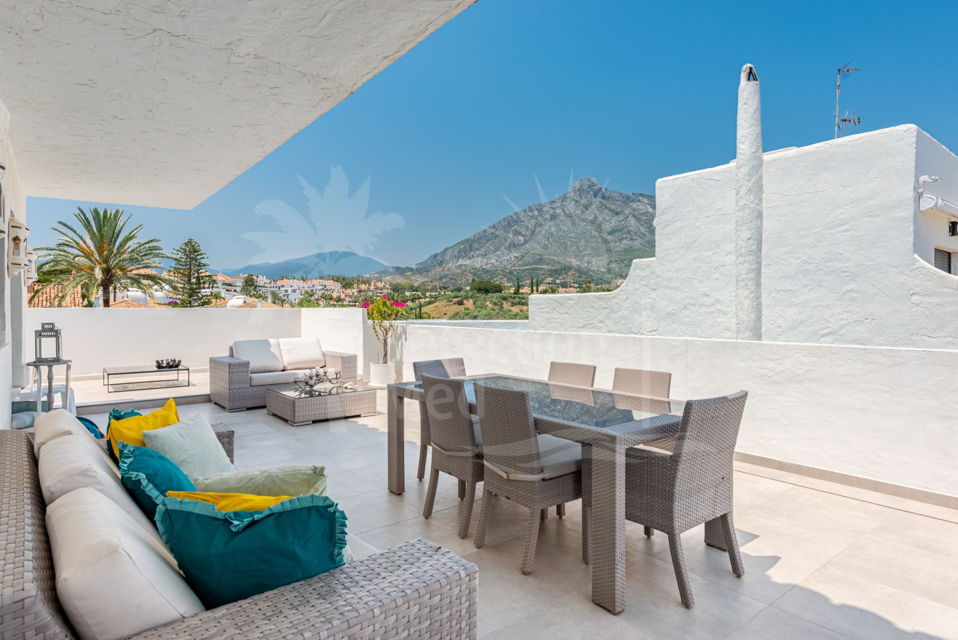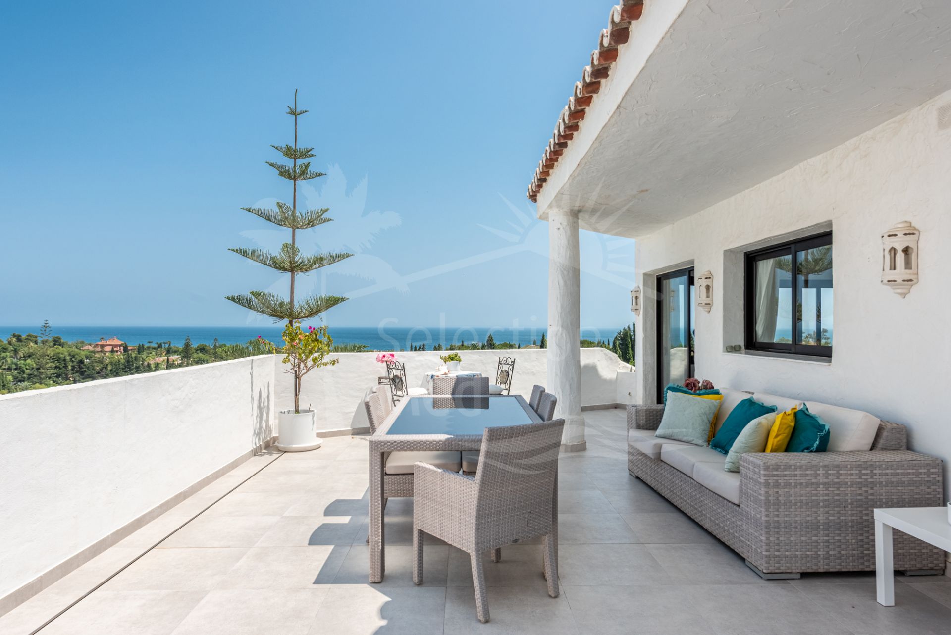 L’une des caractéristiques les plus uniques de cette résidence est sa vaste suite parentale, qui dispose d’un magnifique dressing — un espace qui ferait pâlir d’envie même Carrie Bradshaw ! En complément de la suite parentale, de généreux espaces de vie suivent un agencement ouvert, fusionnant cuisine, salle à manger et salon dans un environnement lumineux et spacieux. L’intérieur s’ouvre harmonieusement sur une terrasse enveloppante de 84 m², baignée de soleil dès le matin et profitant encore des rayons de l’après-midi dans certaines zones — idéale pour des repas en plein air ou simplement se détendre tout en admirant la vue époustouflante.