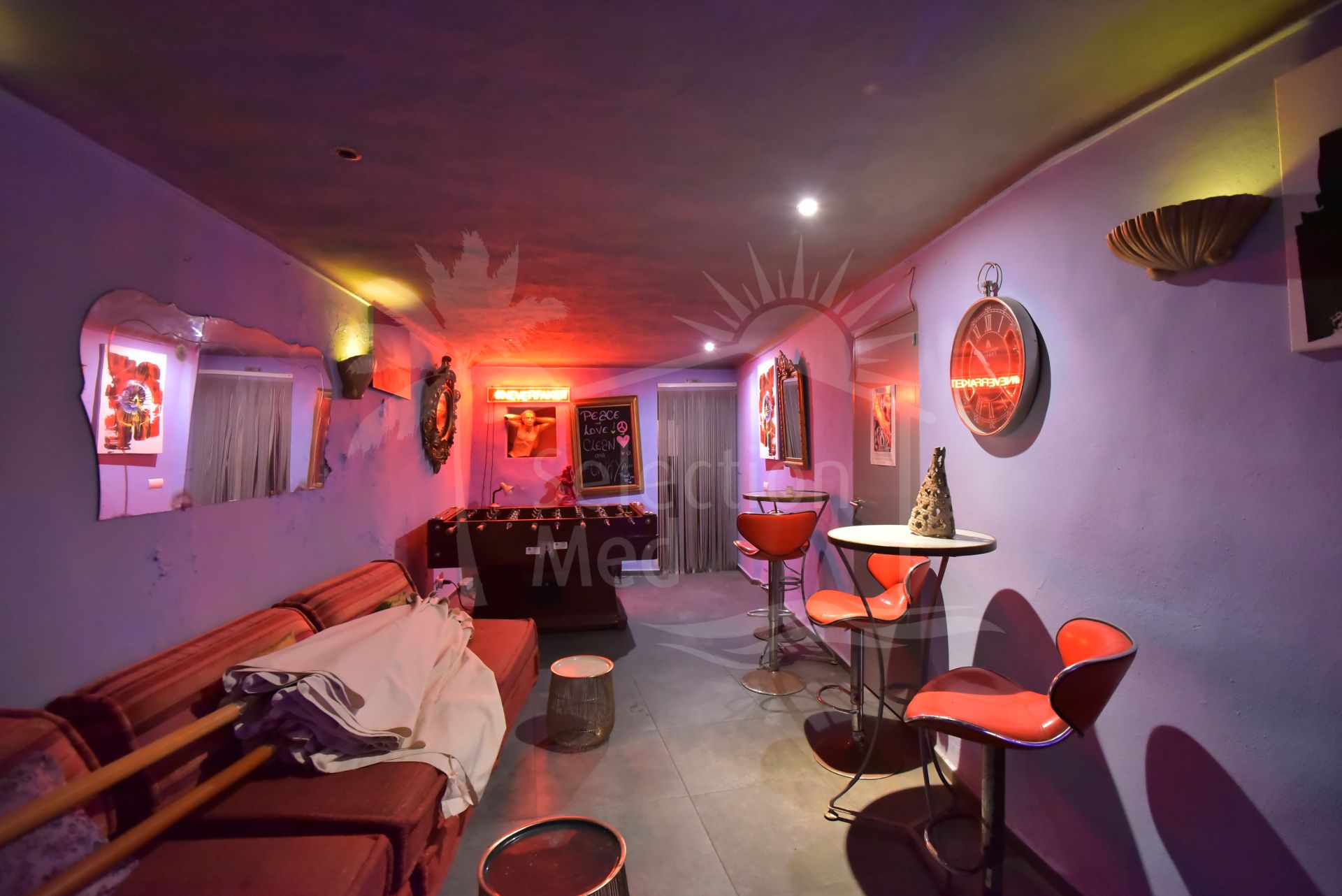 L’intérieur du bar est soigneusement conçu et entièrement équipé, avec un comptoir complet, un mobilier moderne, une table de DJ, un limiteur de musique, des réfrigérateurs et un lave-vaisselle. La cuisine est totalement équipée et prête à l’emploi immédiat, ce qui la rend adaptée à une variété d’activités de restauration. La rénovation récente garantit que tous les accessoires et équipements sont à jour, offrant une atmosphère contemporaine et accueillante pour la clientèle.