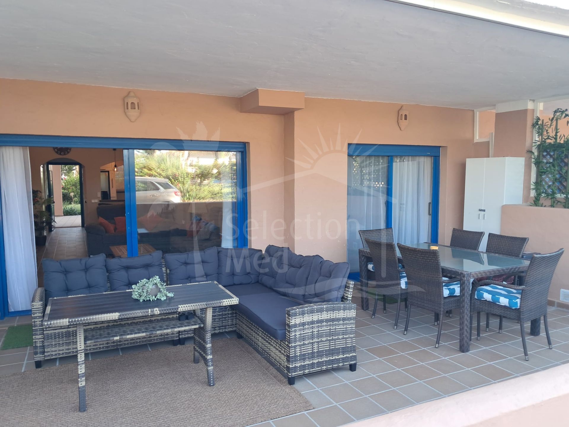 Appartement rez de chaussée à vendre à Duquesa Suites, Manilva avec 2 chambres, 2 salles de bains, construit à 2004 et a piscine (communautaire) et garage (privé). Dimensions: 116m² construit, 100m² parcelle, 80m² intérieur et 30m² terrasse.