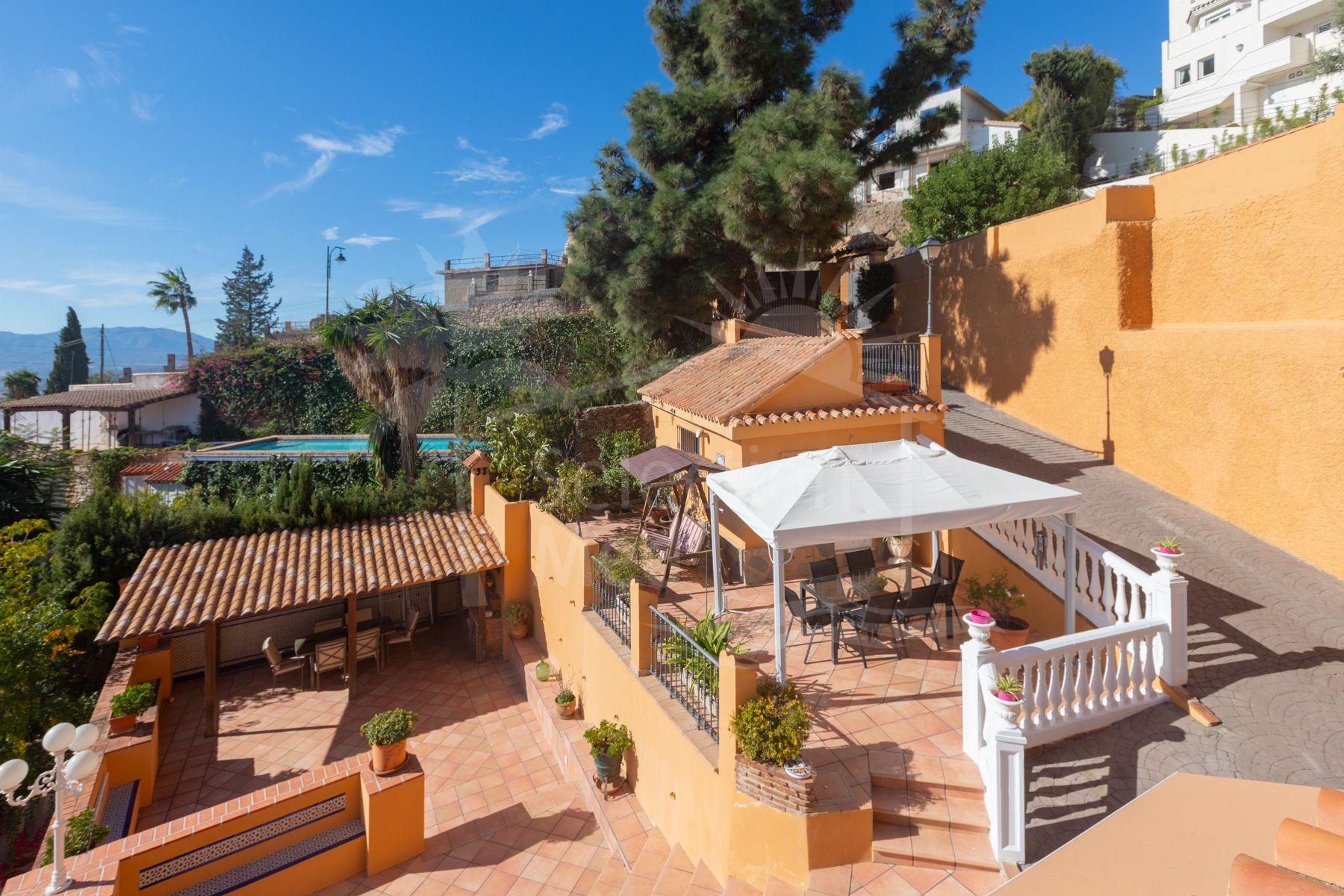 Cette propriété, orientation sud, dispose des commodités suivantes: terrasse privée, salle de séjour, À proximité des commerces, près de la ville, appartement séparé, proche des écoles, vue mer, appartement d'invités, vue montagne, bureau, climatisation individuelle, bars, buanderie, terrasse couverte, placards, vue panoramique, près de la montagne, services de proximité, maturejardens, transport proche, climatisation, mainselectricitysupply, mainswatersupply, cuisine entièrement adaptée, pièce de service, parc pour enfants proche, cheminée, plancher en marbre, jacuzzi, closetorestaurants, terrasse découverte, cityviews, cave, salle de jeux, coworkingspace, panneaux solaires, chambre d'invités, salle à manger séparée, entrepôt, alarme, solarium, cocktailbar, garageincludedinprice, salle à manger, bon état et barbecue.