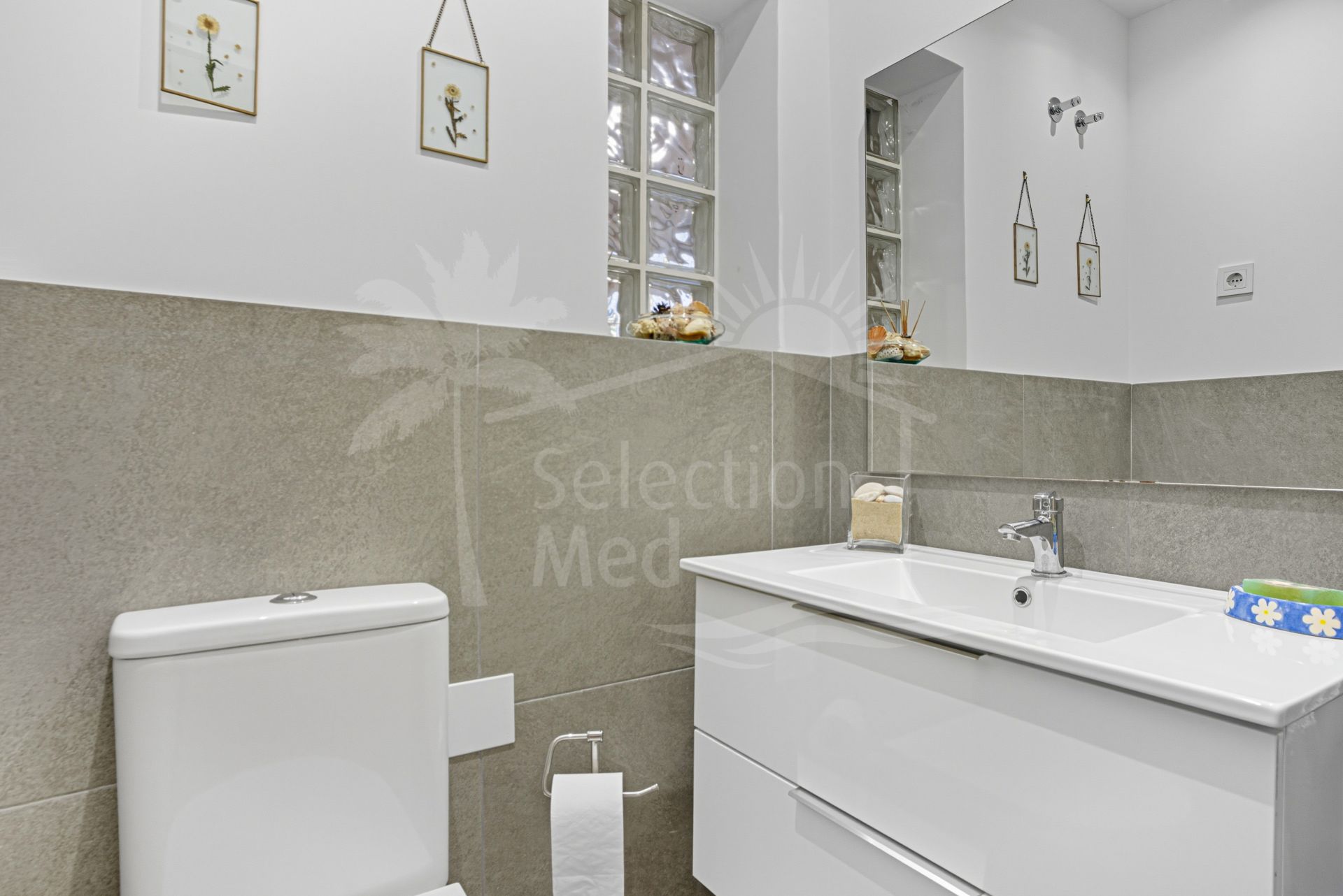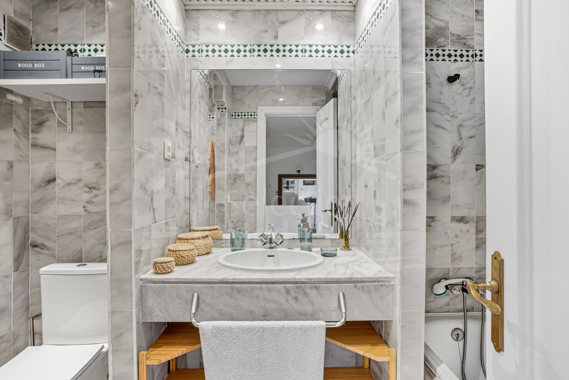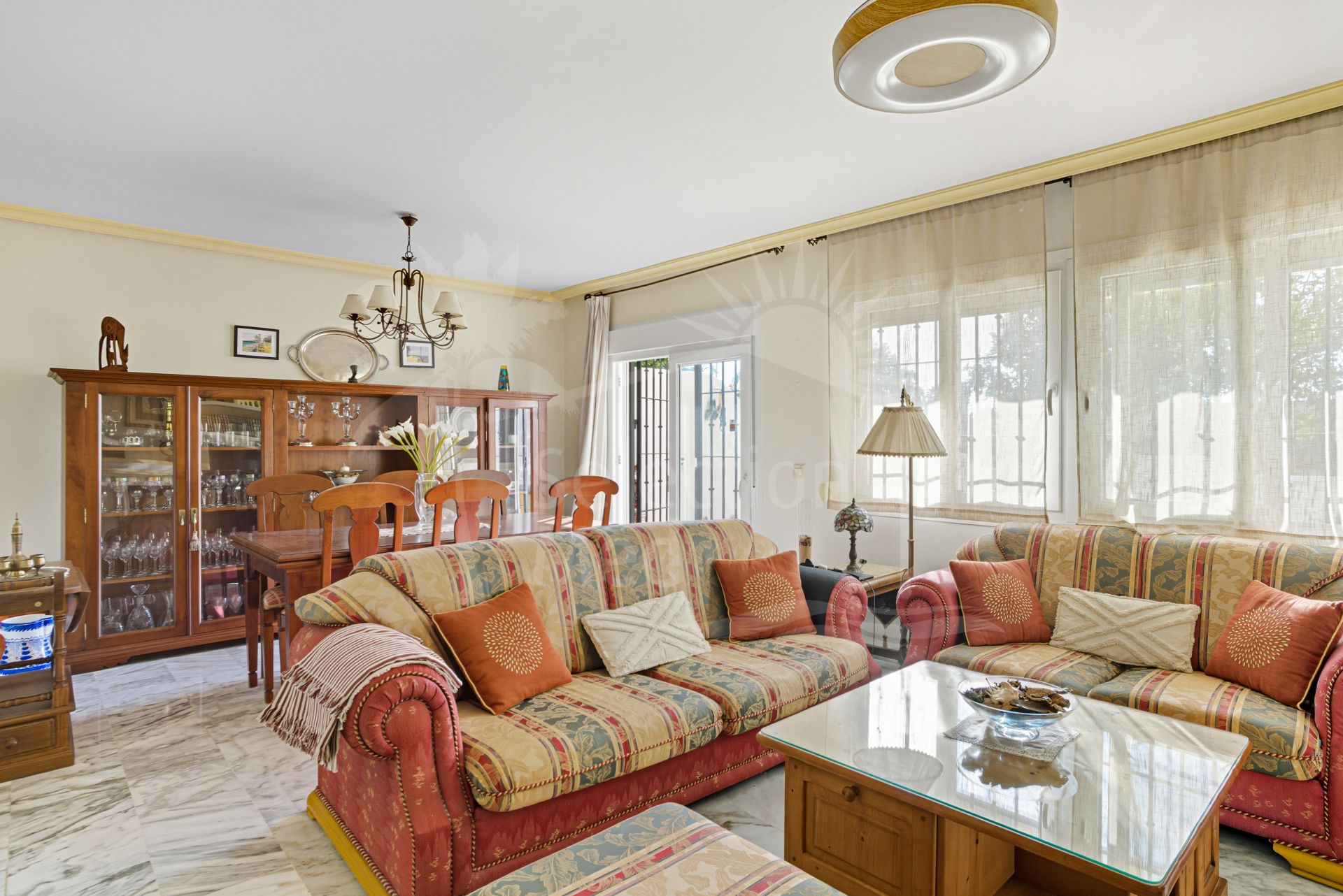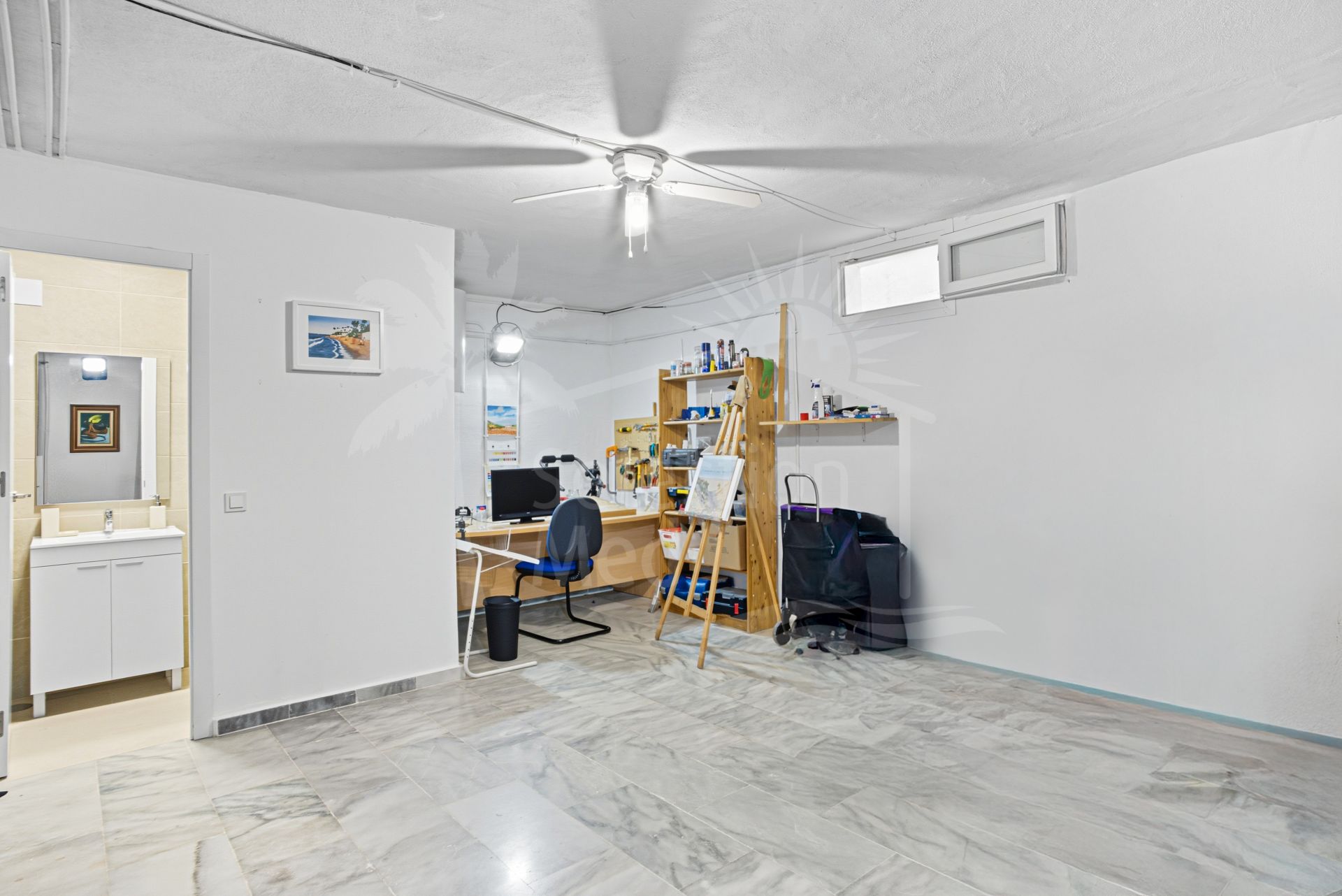 Cette charmante maison de ville de trois chambres, orientée sud, est située dans la célèbre communauté fermée d'El Capricho sur le Golden Mile de Marbella, offrant de vastes jardins tropicaux et deux piscines communes. Idéalement situé à distance de marche de la plage, des bars et des restaurants, et à quelques minutes en voiture de Marbella Center et Puerto Banús, l'établissement allie confort et charme. Le rez-de-chaussée dispose d'un salon et d'un coin repas lumineux avec cheminée et accès à une terrasse généreuse parfaite pour les repas en plein air, une cuisine séparée récemment rénovée, et une toilette invités. Les escaliers mènent à un grand sous-sol actuellement utilisé comme chambre et studio d'art avec sa propre salle de bains. A l'étage, la suite parentale est accompagnée de deux chambres d'hôtes et d'une salle de bains familiale. Les autres points forts comprennent des placards, des sols en marbre et un parking privé pour une voiture.