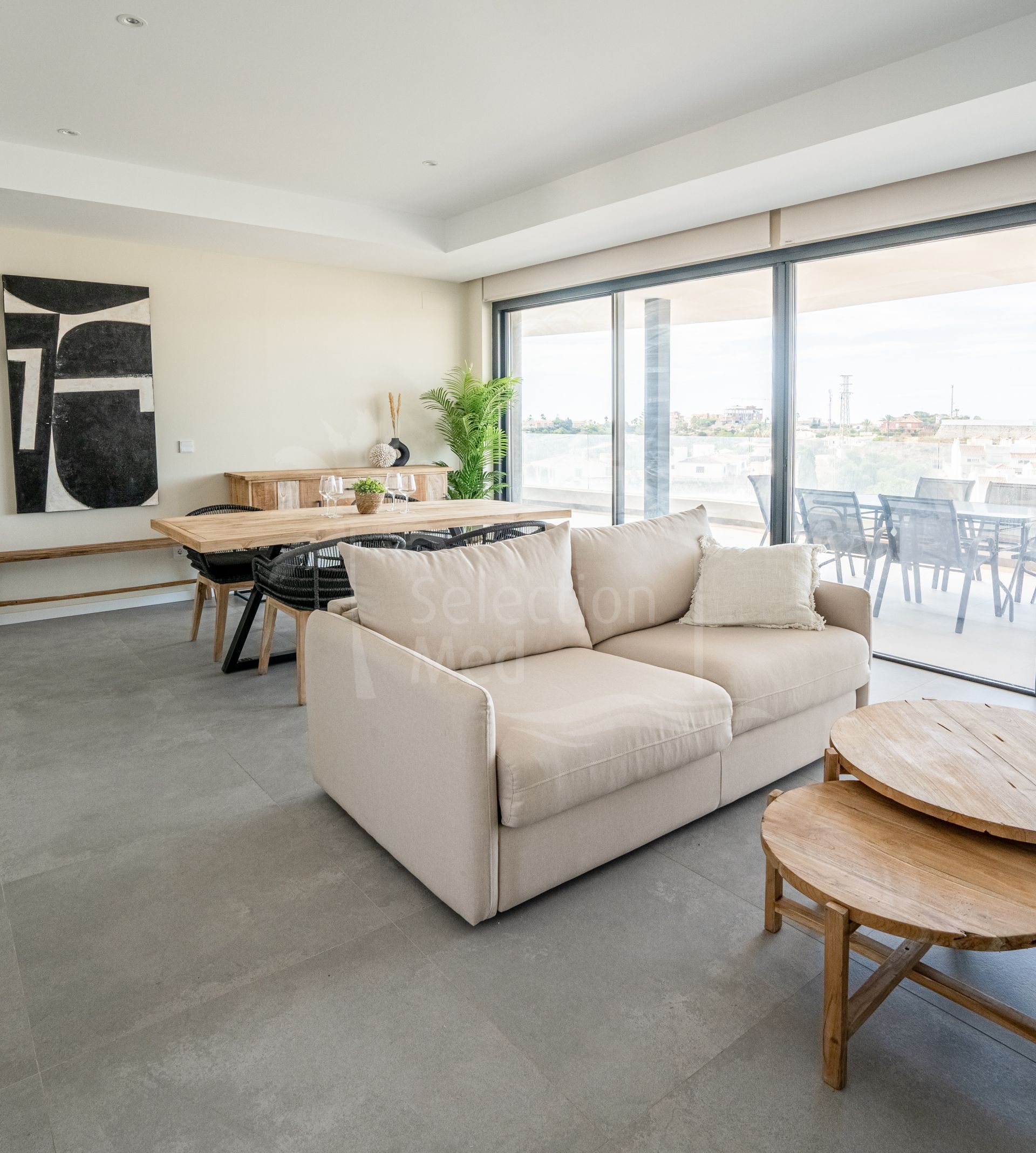 L'appartement dispose de 2 chambres, 2 salles de bains spacieuses et dotées de placards entièrement équipés. Dans l'espace de vie principal, vous trouverez un espace de vie ouvert fini à un niveau de qualité élevé et conçu pour fournir un grand espace ouvert, pour tirer le meilleur parti de la vie intérieure sans couture à l'extérieur et complété par des appareils haut de gamme. L'appartement a été conçu avec un aménagement qui vous donne la possibilité de profiter de vues exceptionnelles à tout moment de la journée que vous vous détendiez sur la terrasse, cuisiner, passer du temps en famille ou dîner. L'appartement a une finition de très haute qualité ainsi que des fonctionnalités telles que la climatisation par zone et le chauffage par le sol. L'appartement est livré avec 2 parkings souterrains et stockage.