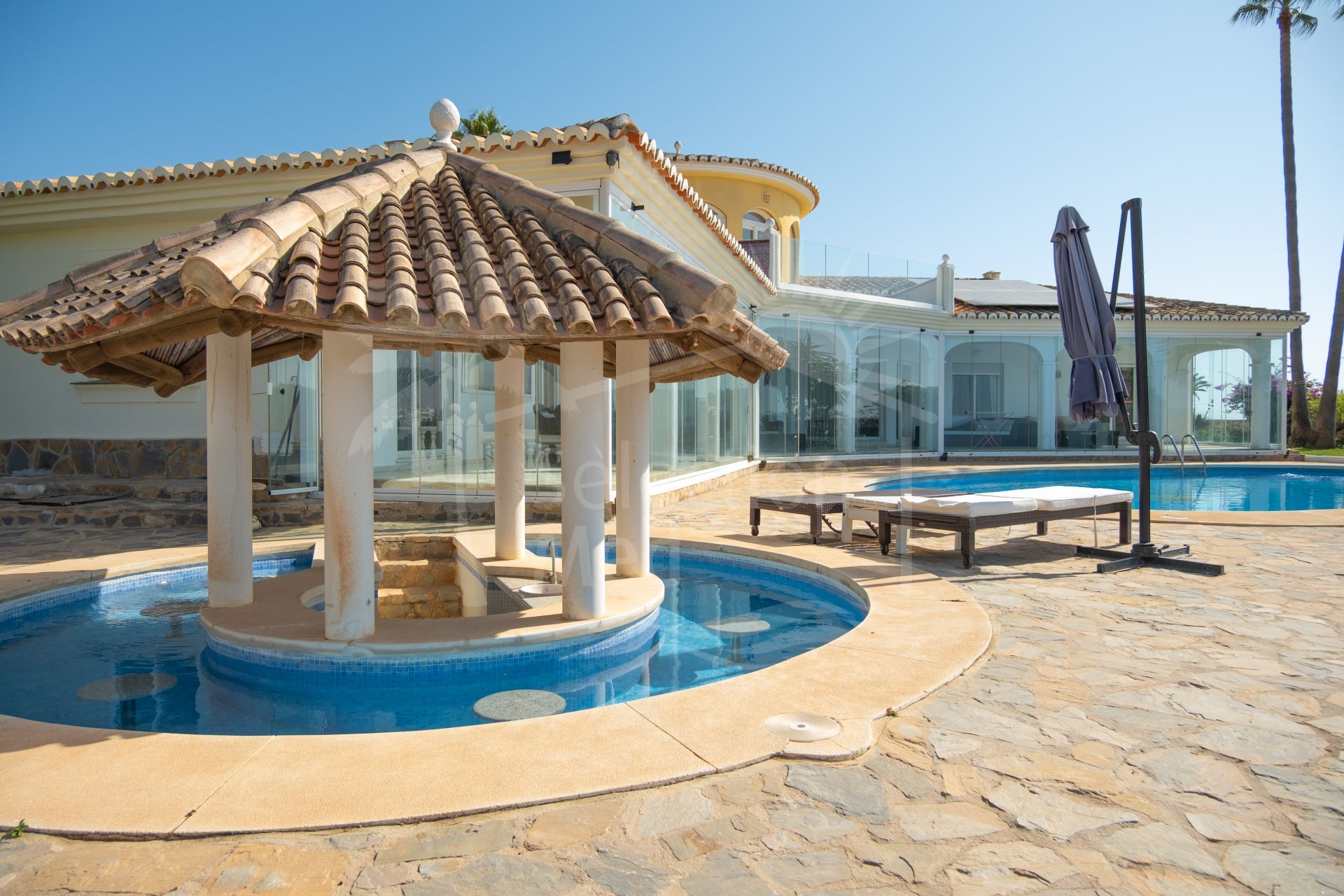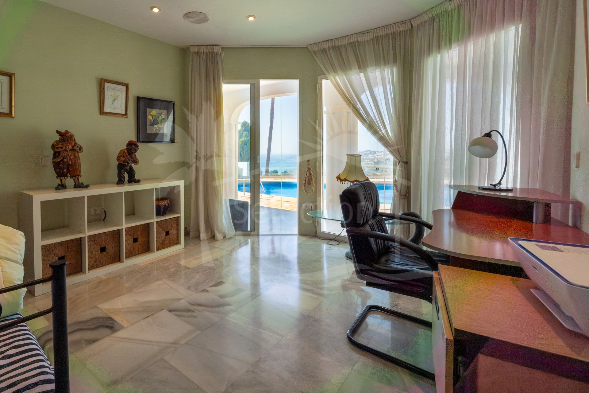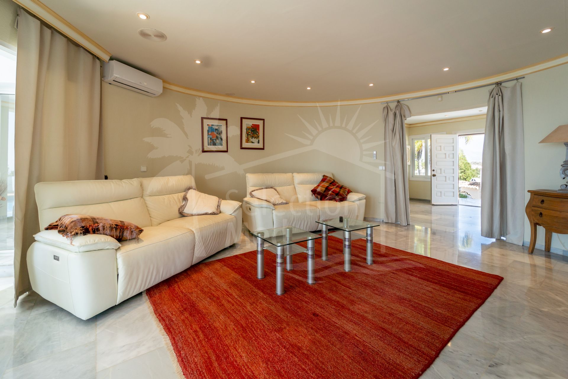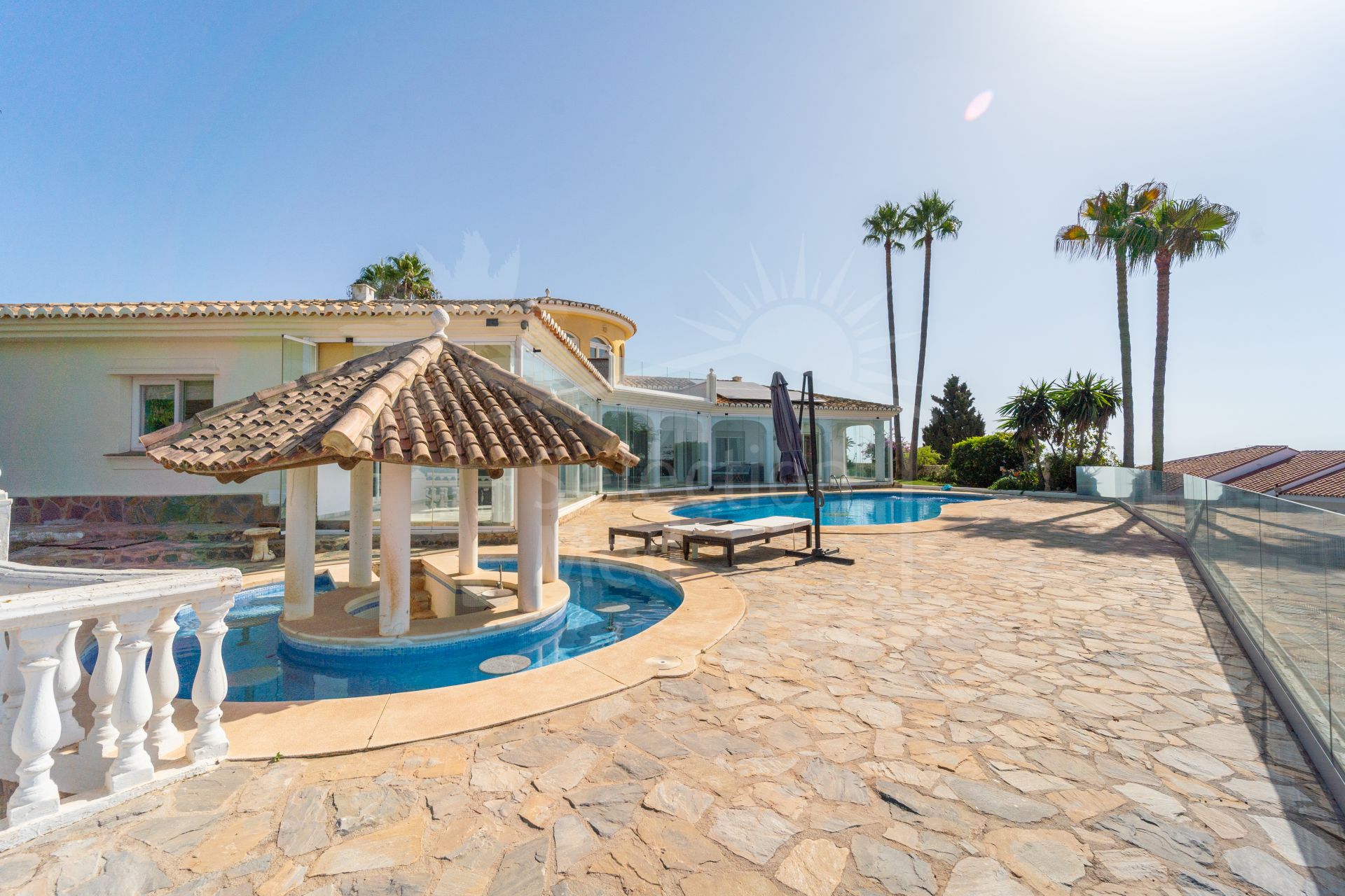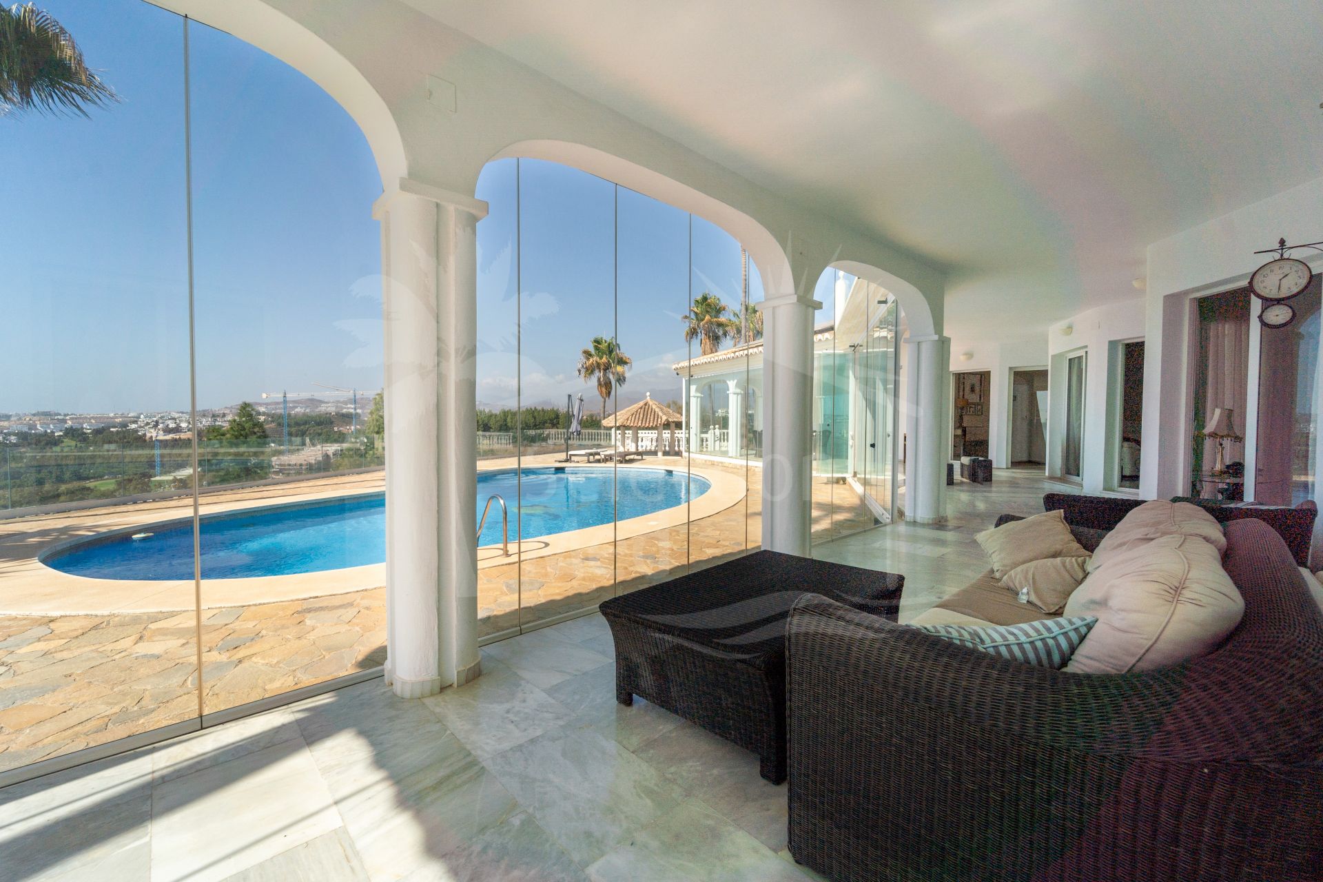 Villa à vendre à El Chaparral, Mijas Costa avec 5 chambres, 4 salles de bains, construit à 1995 et a piscine (privé), garage (privé) et jardin (privé). Dimensions: 534m² construit, 1700m² parcelle et 147m² terrasse.