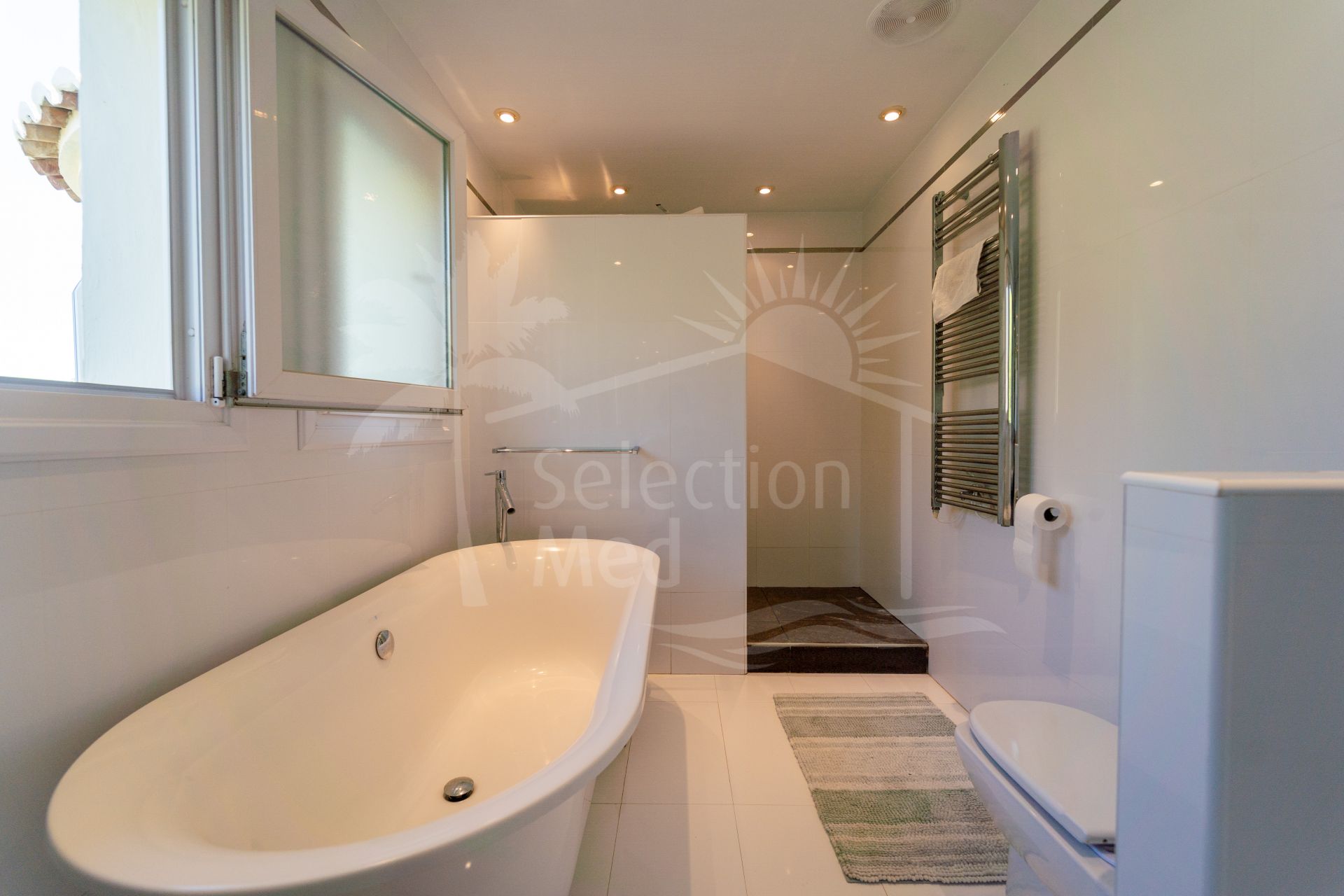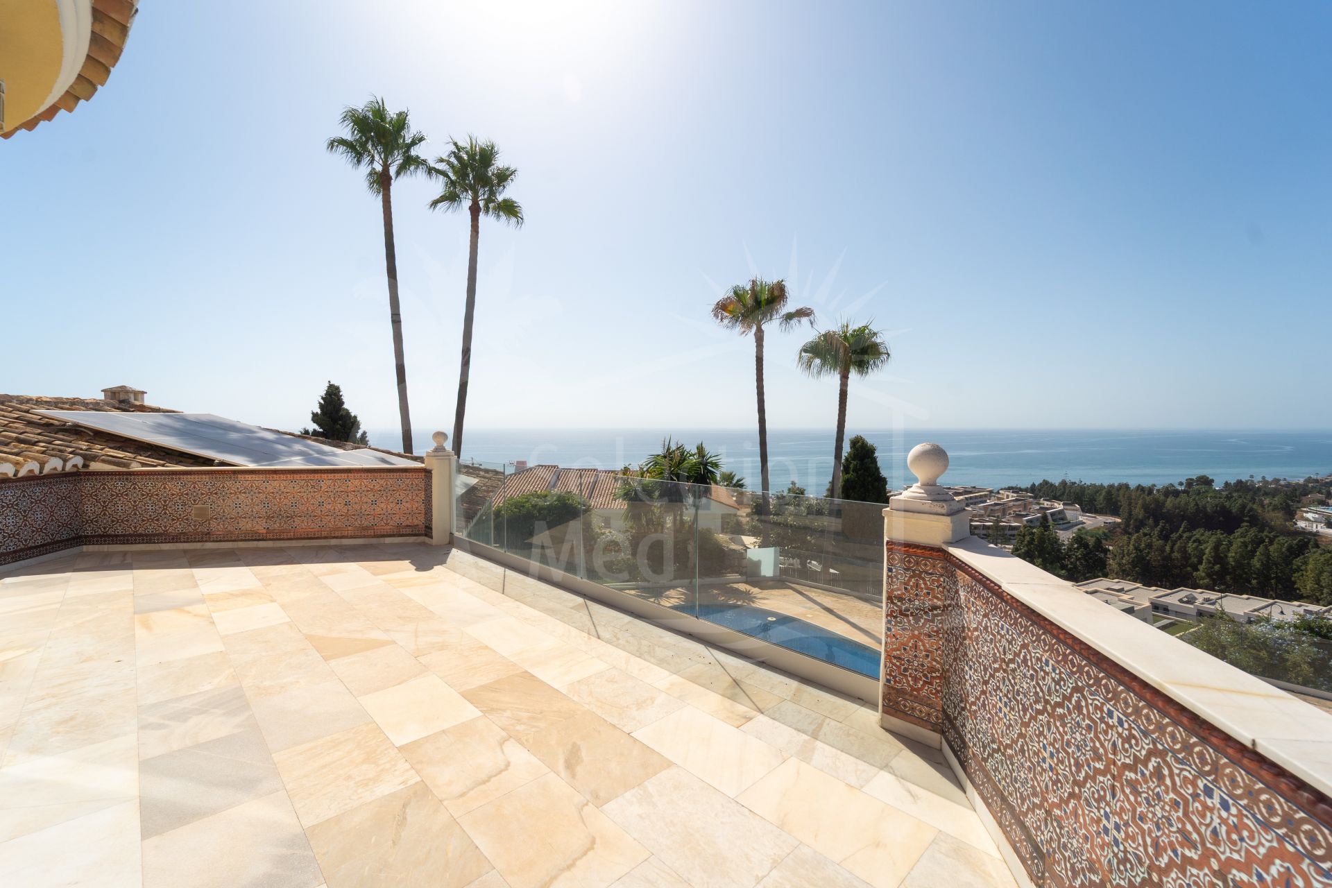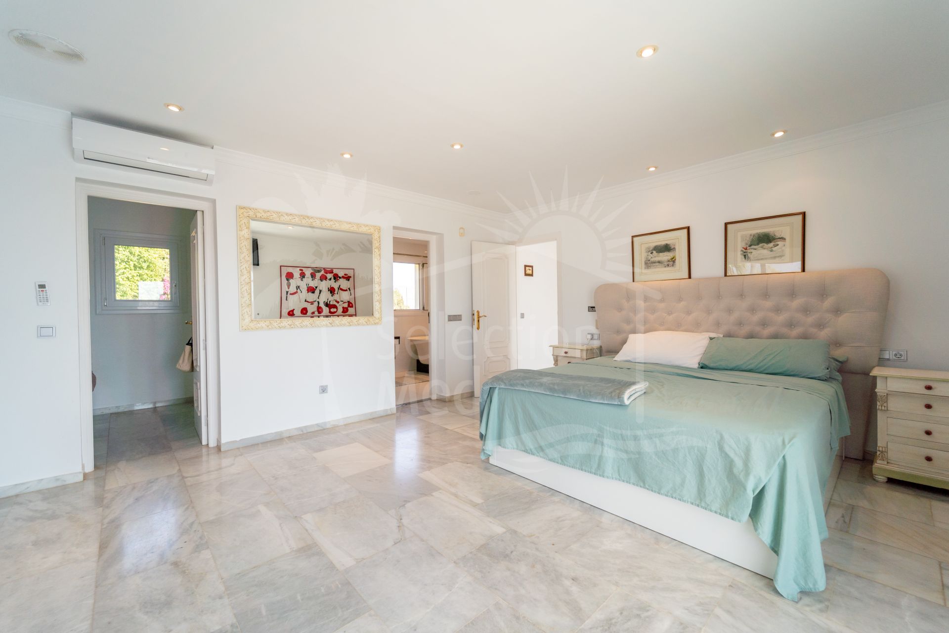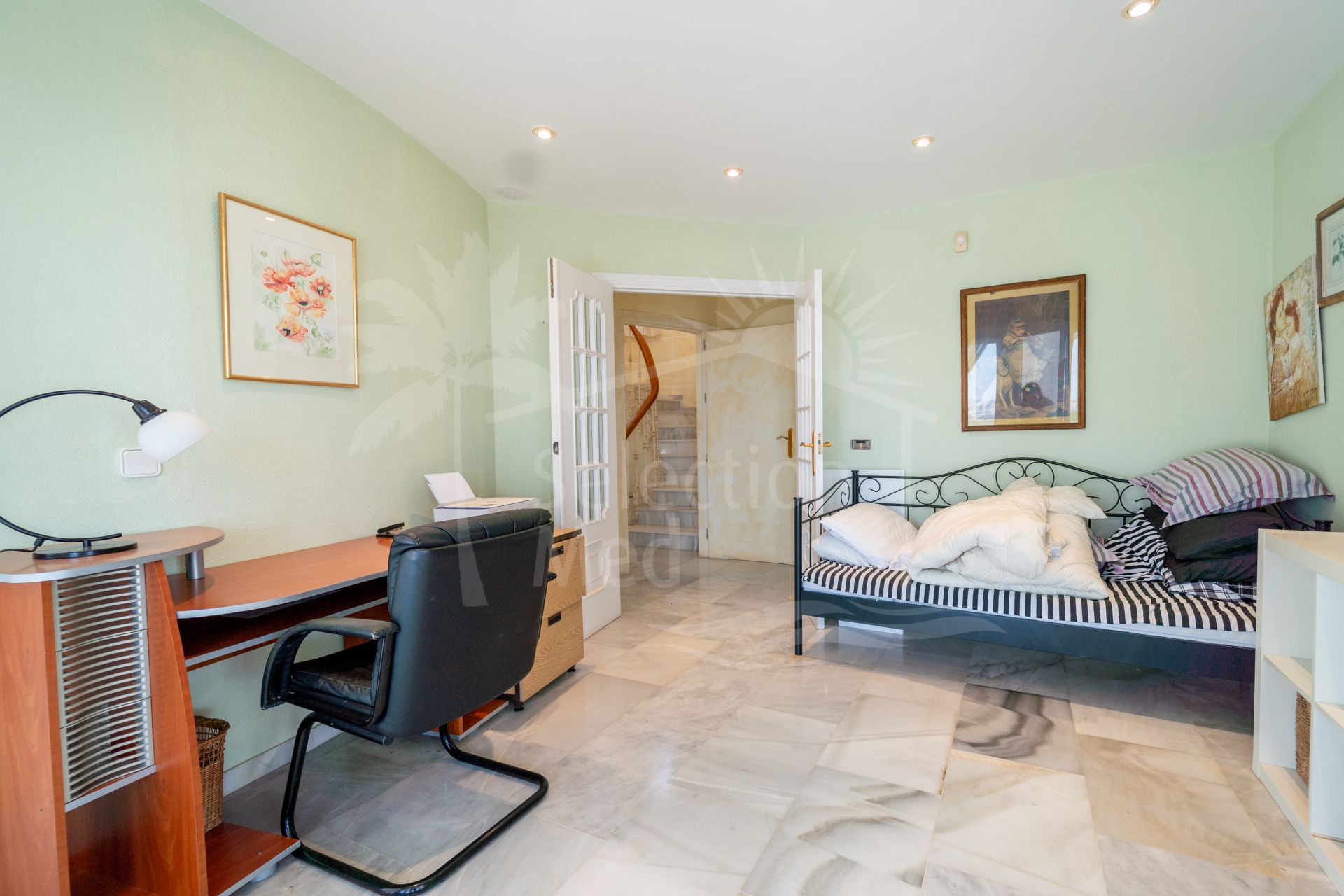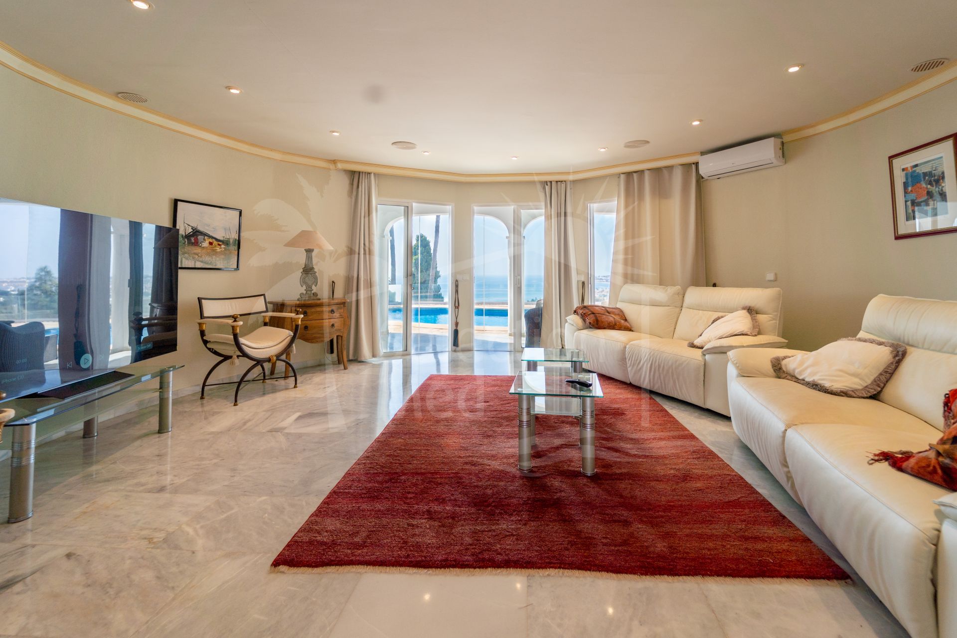 Villa à vendre à El Chaparral, Mijas Costa avec 5 chambres, 4 salles de bains, construit à 1995 et a piscine (privé), garage (privé) et jardin (privé). Dimensions: 534m² construit, 1700m² parcelle et 147m² terrasse.