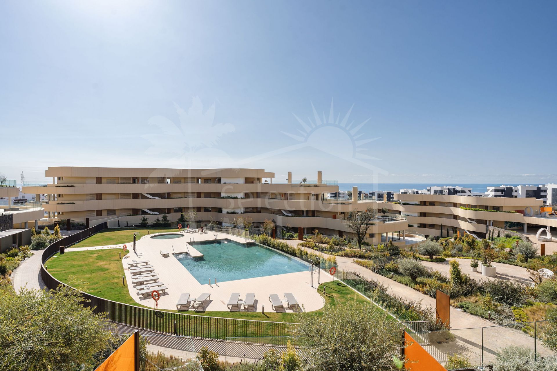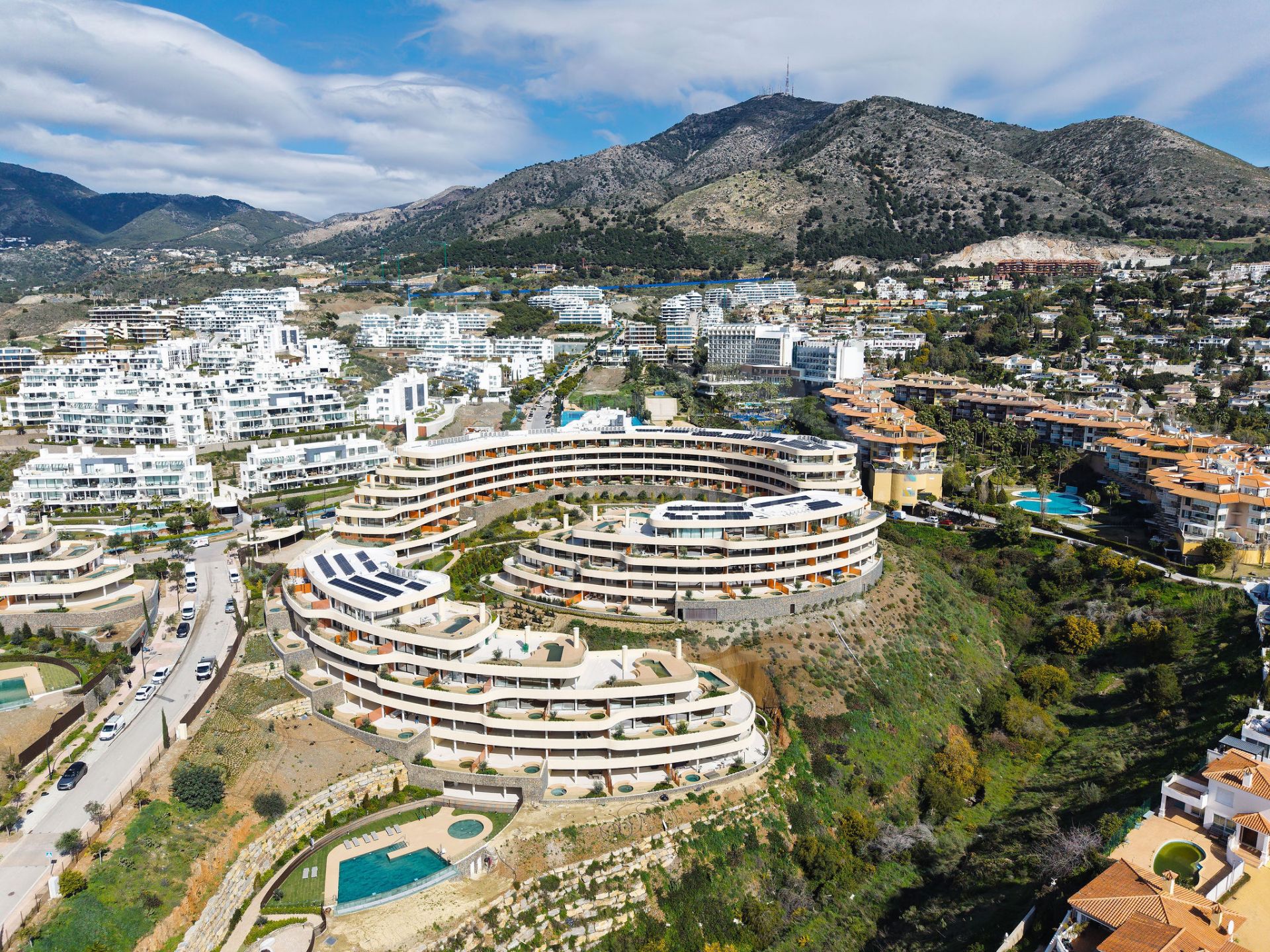 Appartement à vendre à El Higueron, Fuengirola avec 2 chambres, 2 salles de bains, 1 salles de bain en-suite, construit à 2025 et a piscine (communautaire), garage (privé) et jardin (communautaire). Dimensions: 117m² construit et 28m² terrasse.