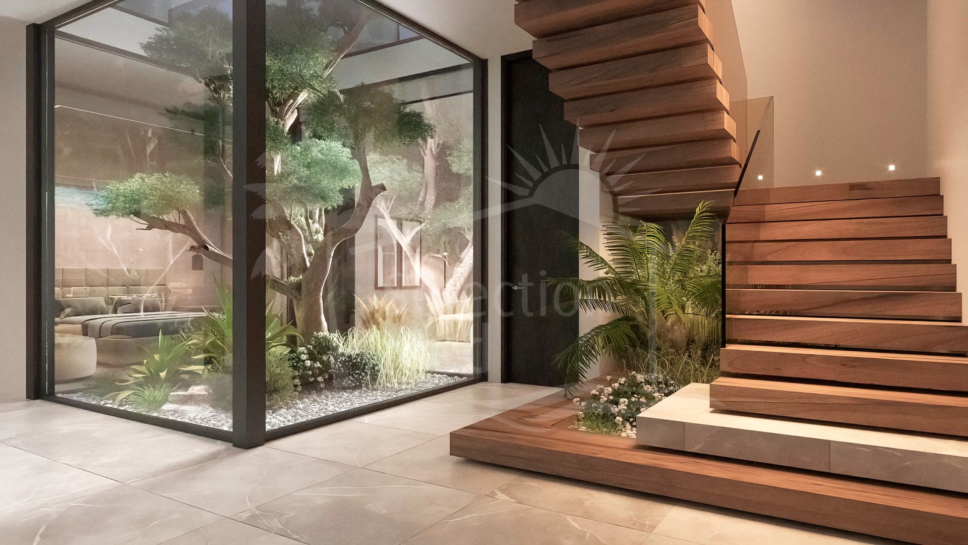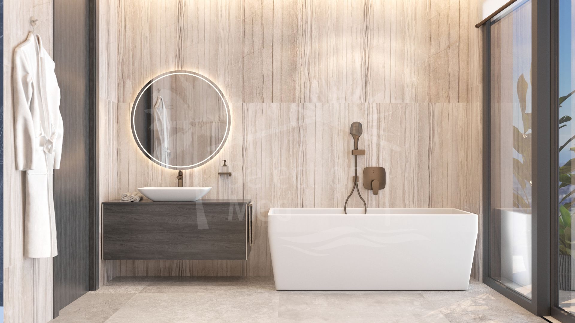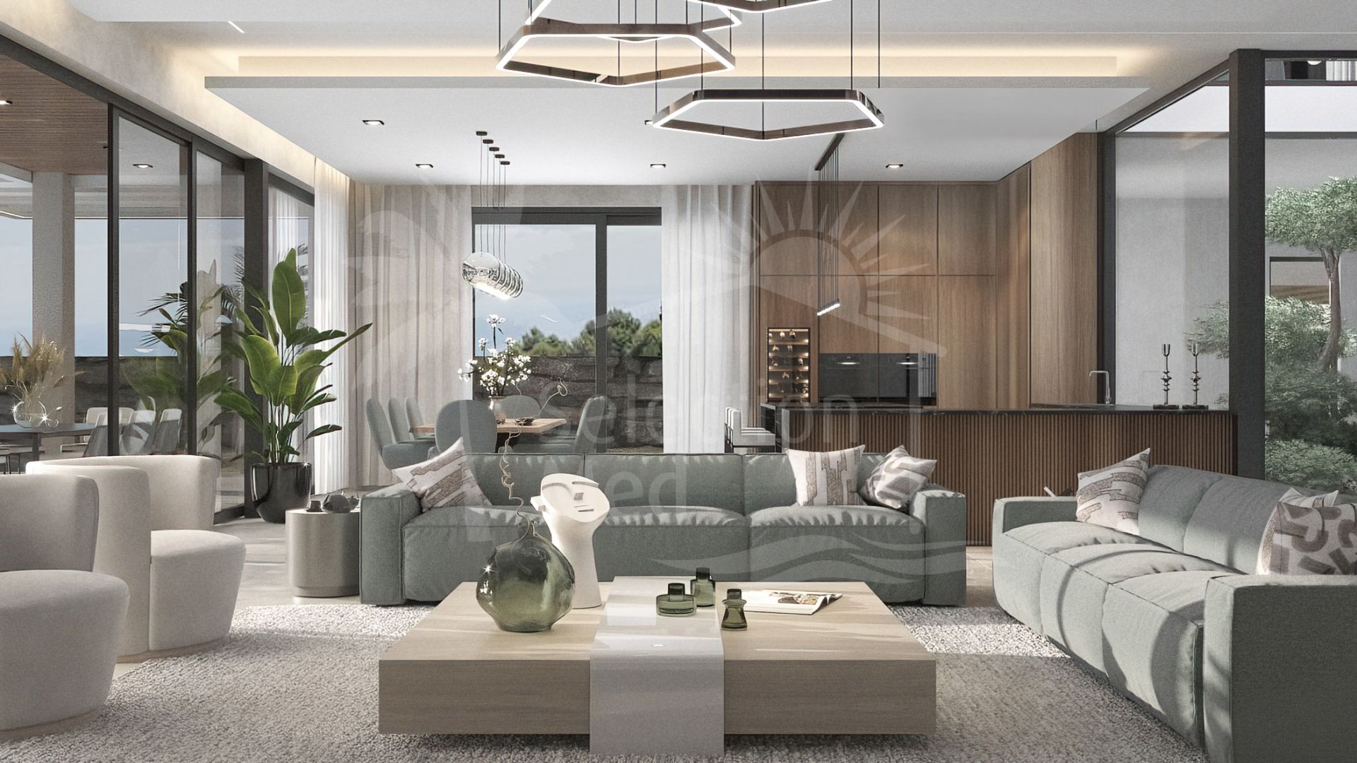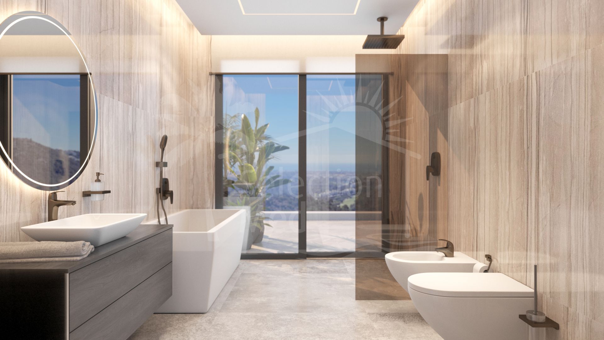 Villa à vendre à El Madroñal, Benahavis avec 6 chambres, 7 salles de bains, 2 toilets, construit à 2025 et a piscine (privé), garage (privé) et jardin (privé). Dimensions: 868.86m² construit, 3035m² parcelle, 754.14m² intérieur et 129.84m² terrasse.